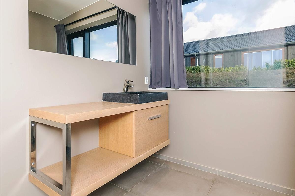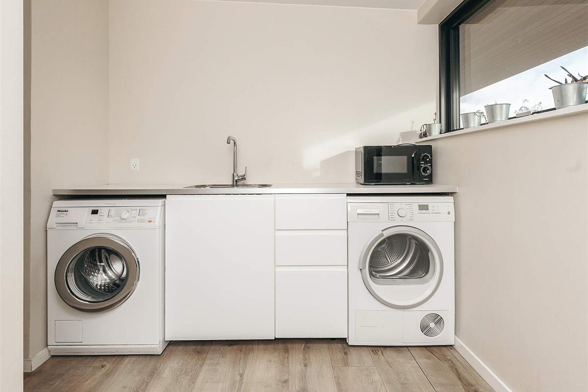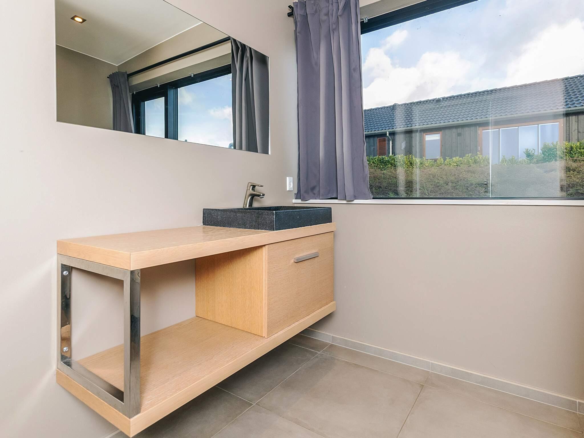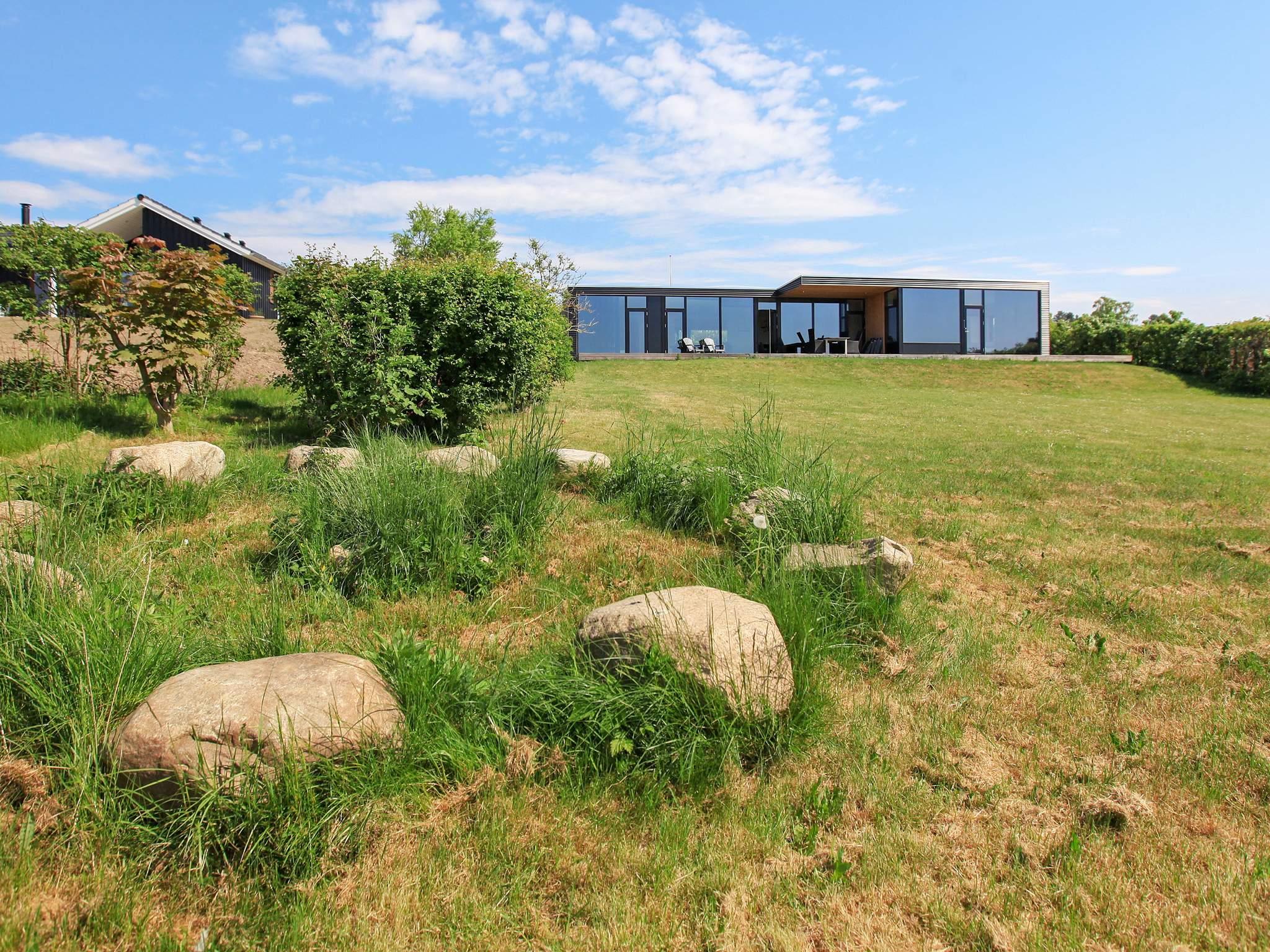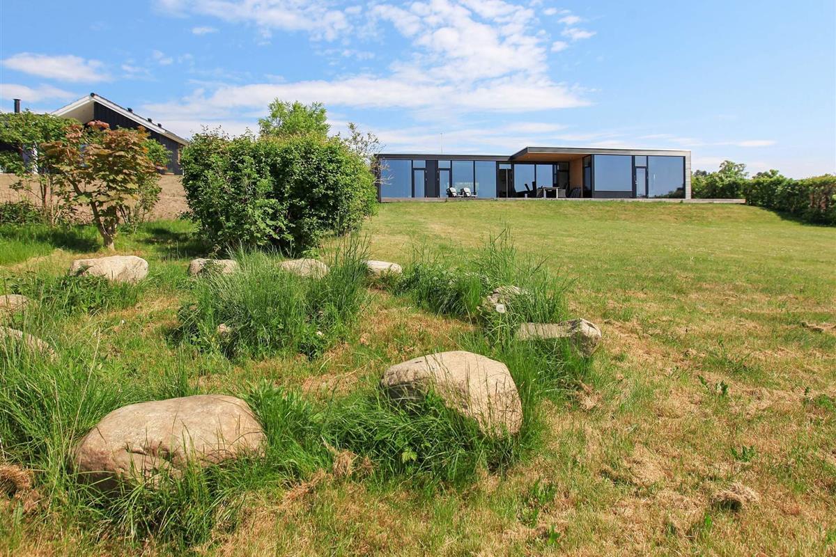Die Raumverteilung eignet sich mit den zwei Schlafbereichen mit jeweils zugehörigem Bad auch gut für zwei befreundete Familien oder Generationen. Die Liege in einem der Zimmer ist 170 cm lang. In der Mitte befindet sich der geräumige Küchen-/Wohnbereich für die gemeinsamen Stunden. Die großen Fenster lassen viel Tageslicht ins Haus und bieten zusammen mit der erhöhten Lage eine schöne Panoramaaussicht über das Wasser im Fjord und zur Halbinsel Hornsherred.