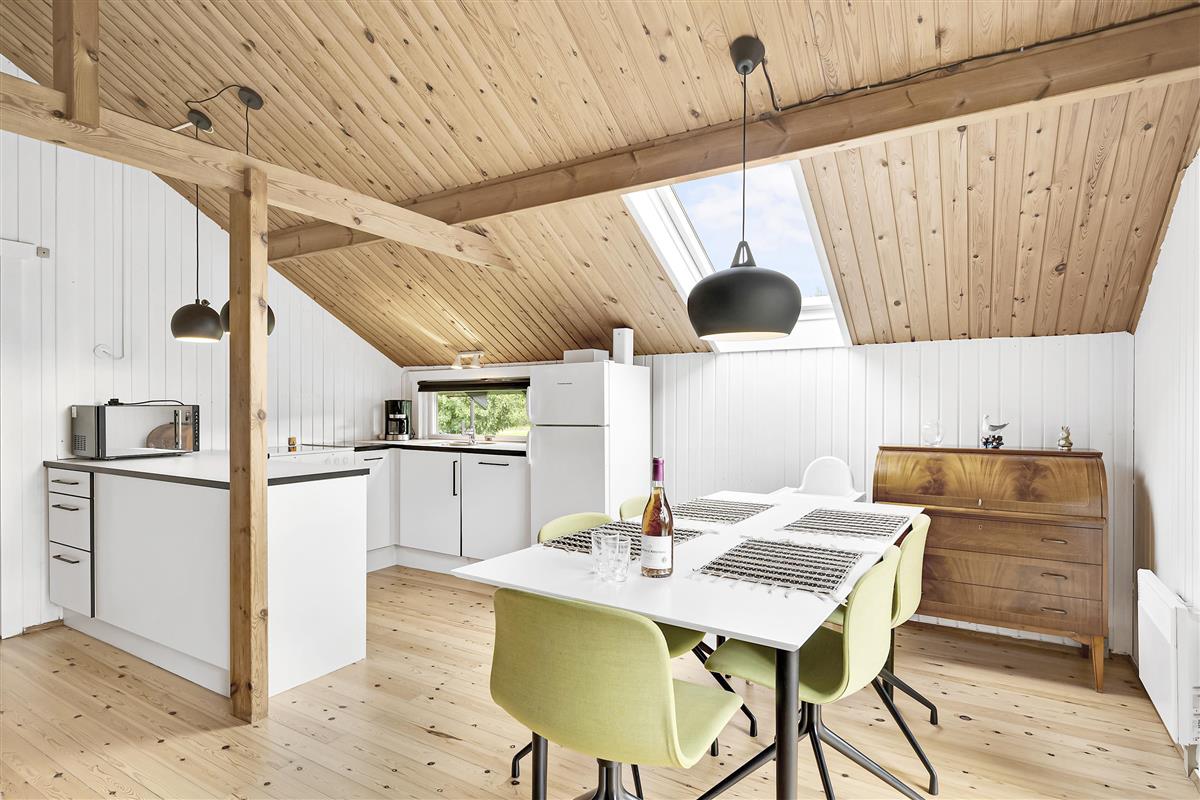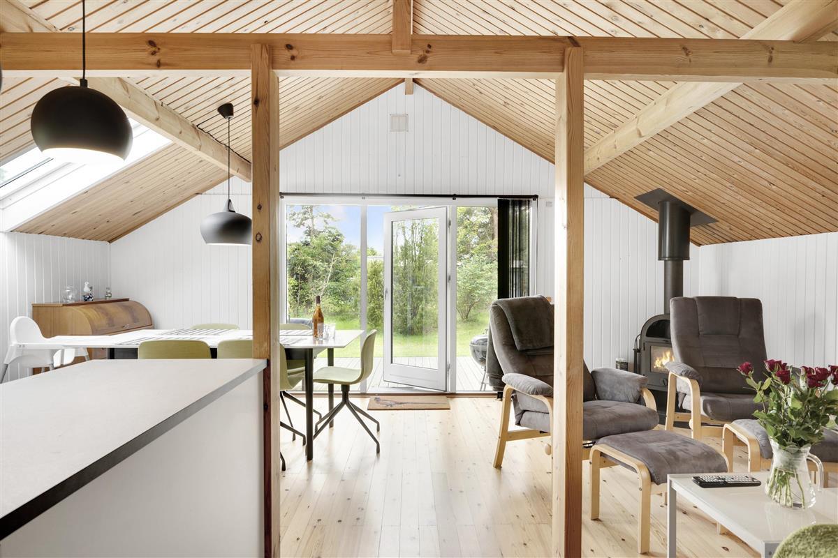 In the beautiful area of Northern Djursland near St. Sjørup, you will find this cozy and renovated holiday home. The house includes a living room with a heat pump and a wood-burning stove, with access to a covered terrace with garden furniture and a barbecue. Adjacent to the living room is the modern kitchen, which includes a dishwasher. There is also a new bathroom with a good shower niche. The house has sleeping accommodations spread across 3 bedrooms with double beds. For the little holiday guests, there is a high chair available. The house has internet. It is situated on a lovely plot with a large lawn, perfect for playing and outdoor relaxation. There is also a sandbox for small guests. The house is located close to 64010 and next door to 64029.