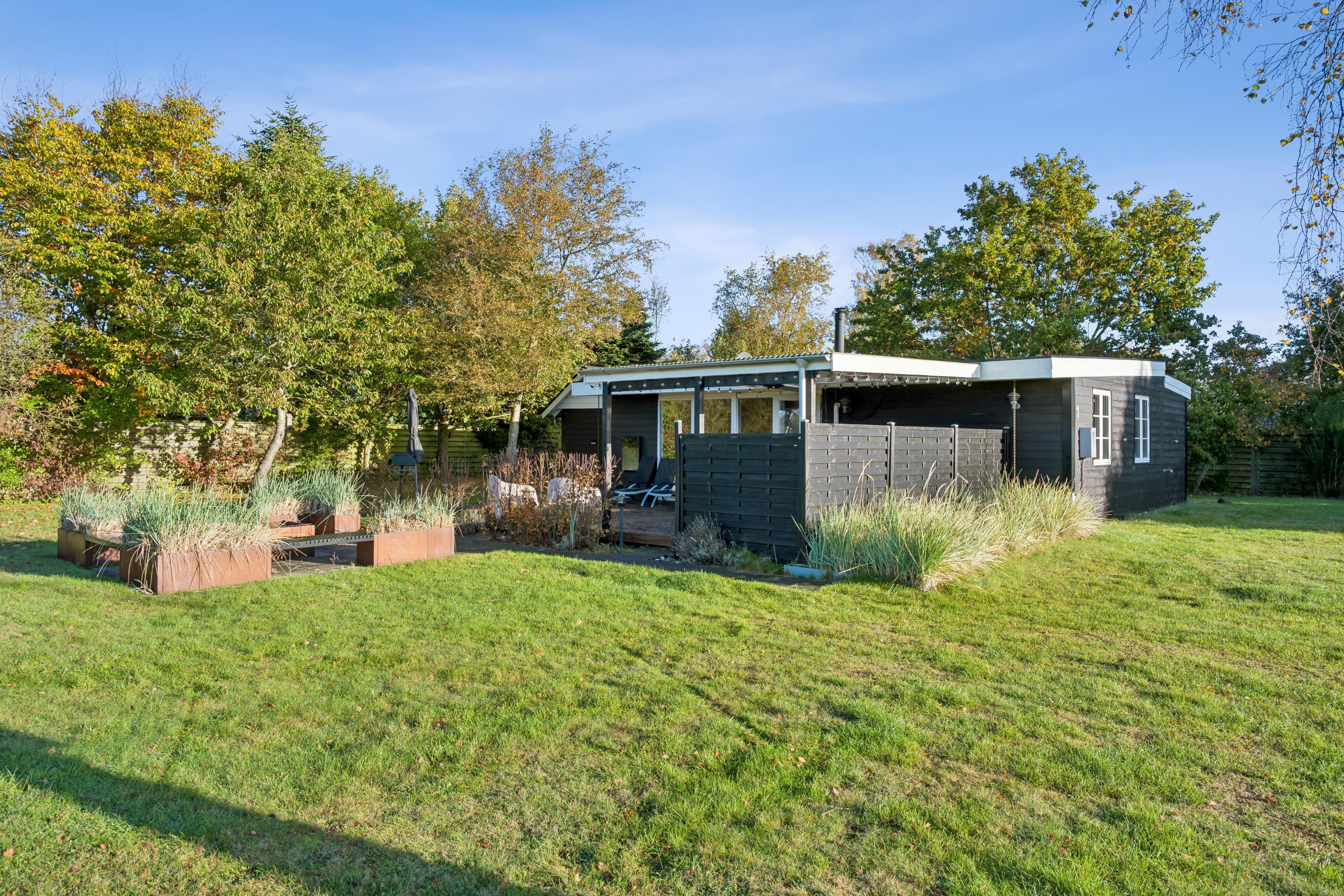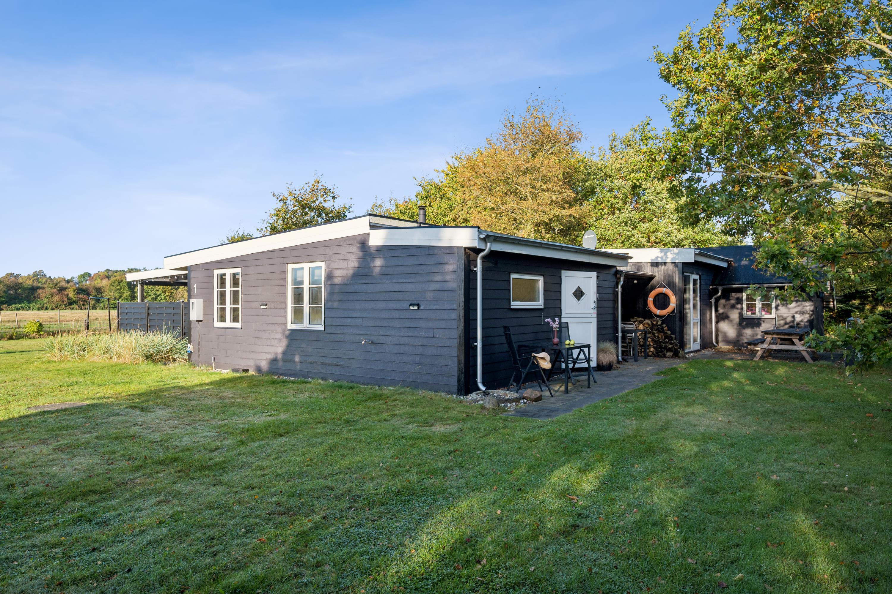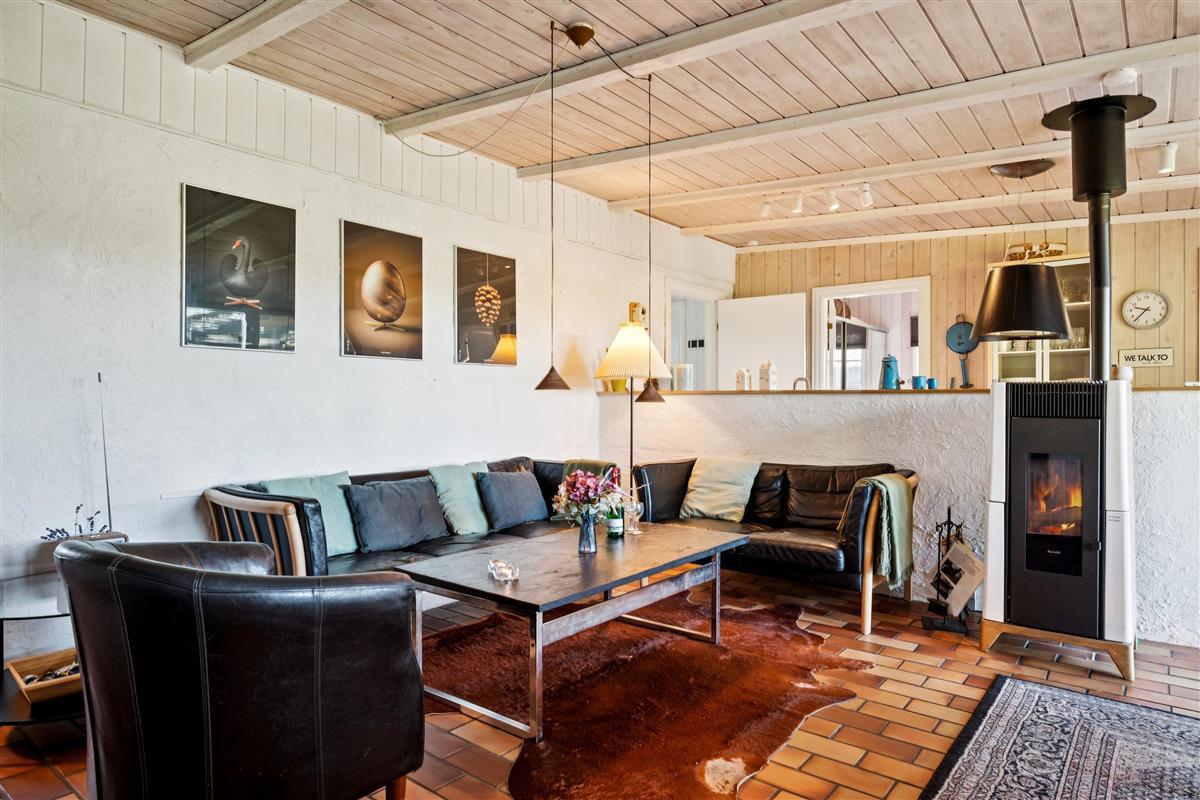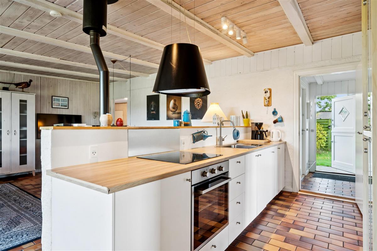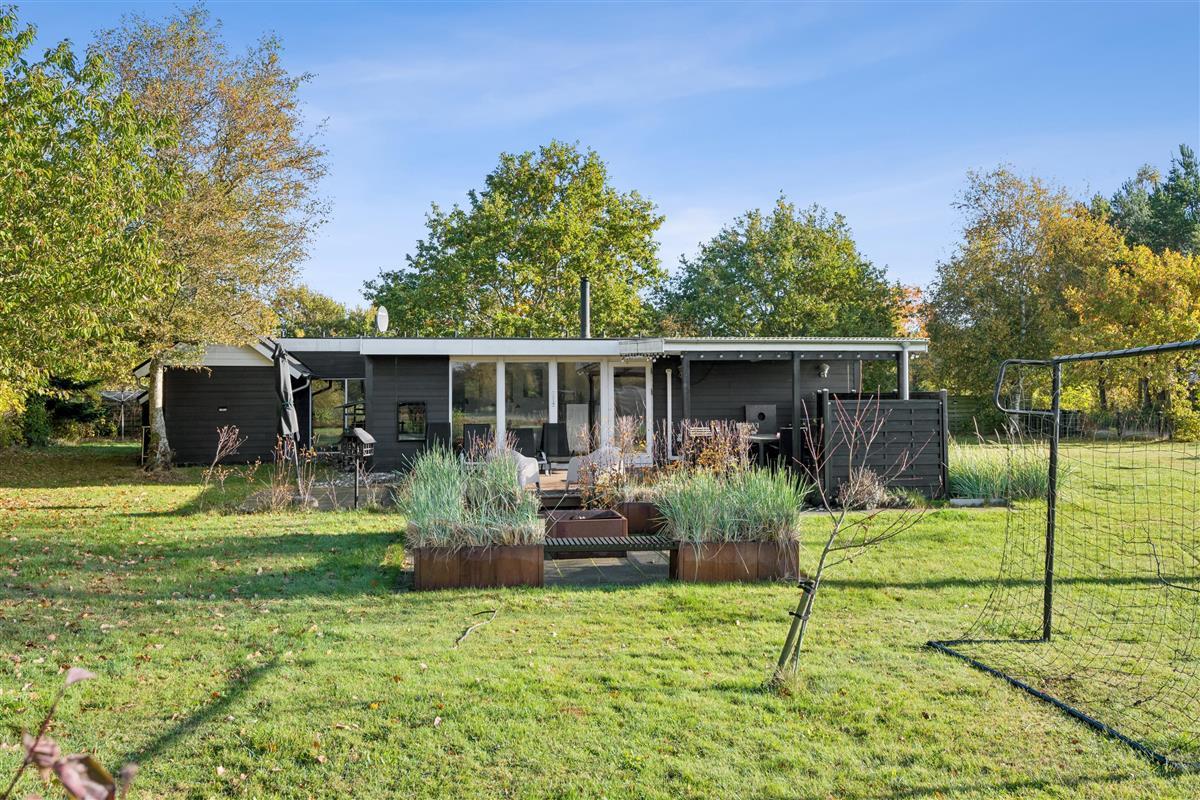 In the beautiful natural surroundings of St. Sjørup, you will find this charming holiday home. The bright and comfortably furnished living room includes a wood-burning stove and a heat pump. Adjacent to the living area is a well-equipped and functional kitchen featuring, among other things, a dishwasher. From the kitchen, there is direct access to a lovely covered terrace with garden furniture and a barbecue.
