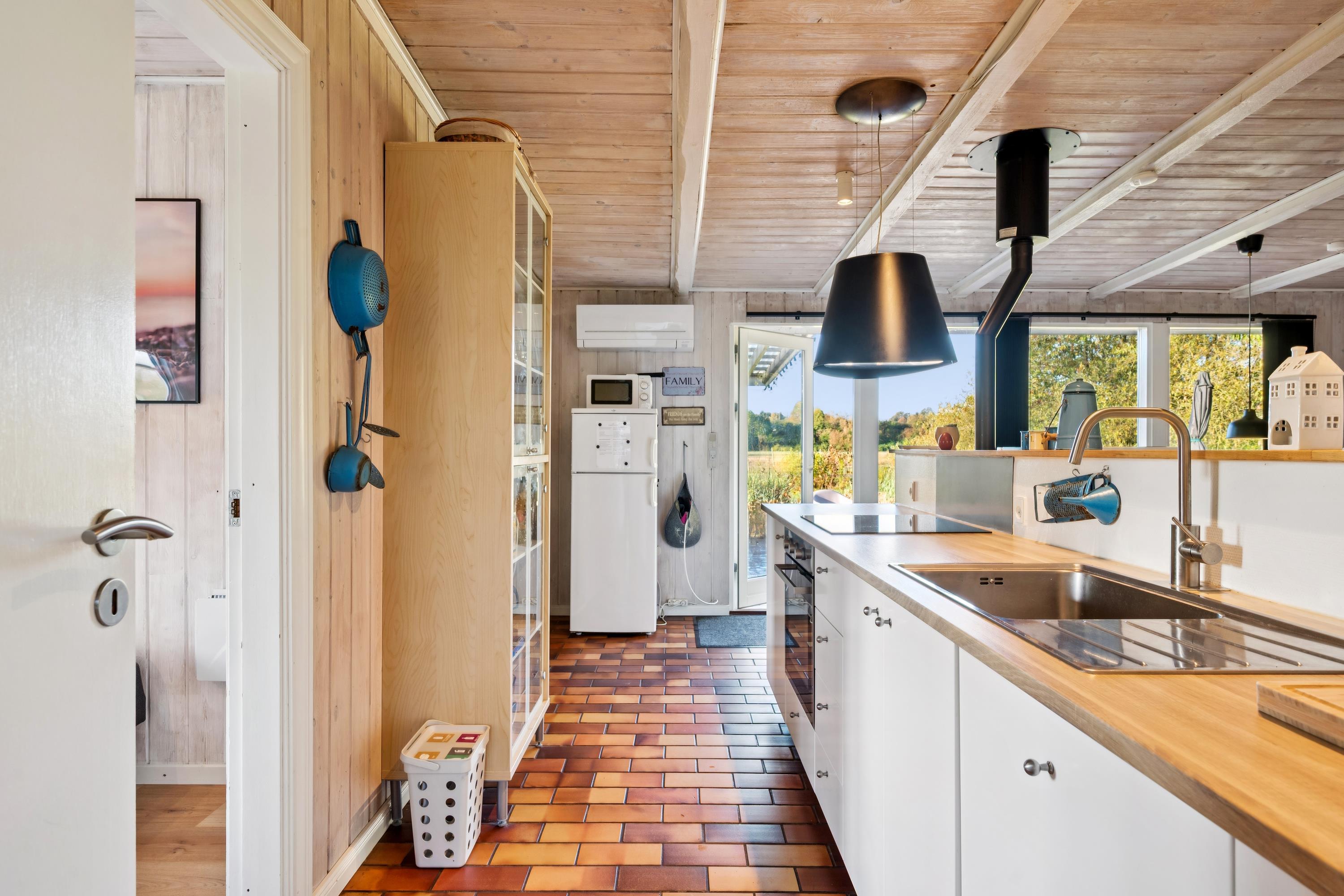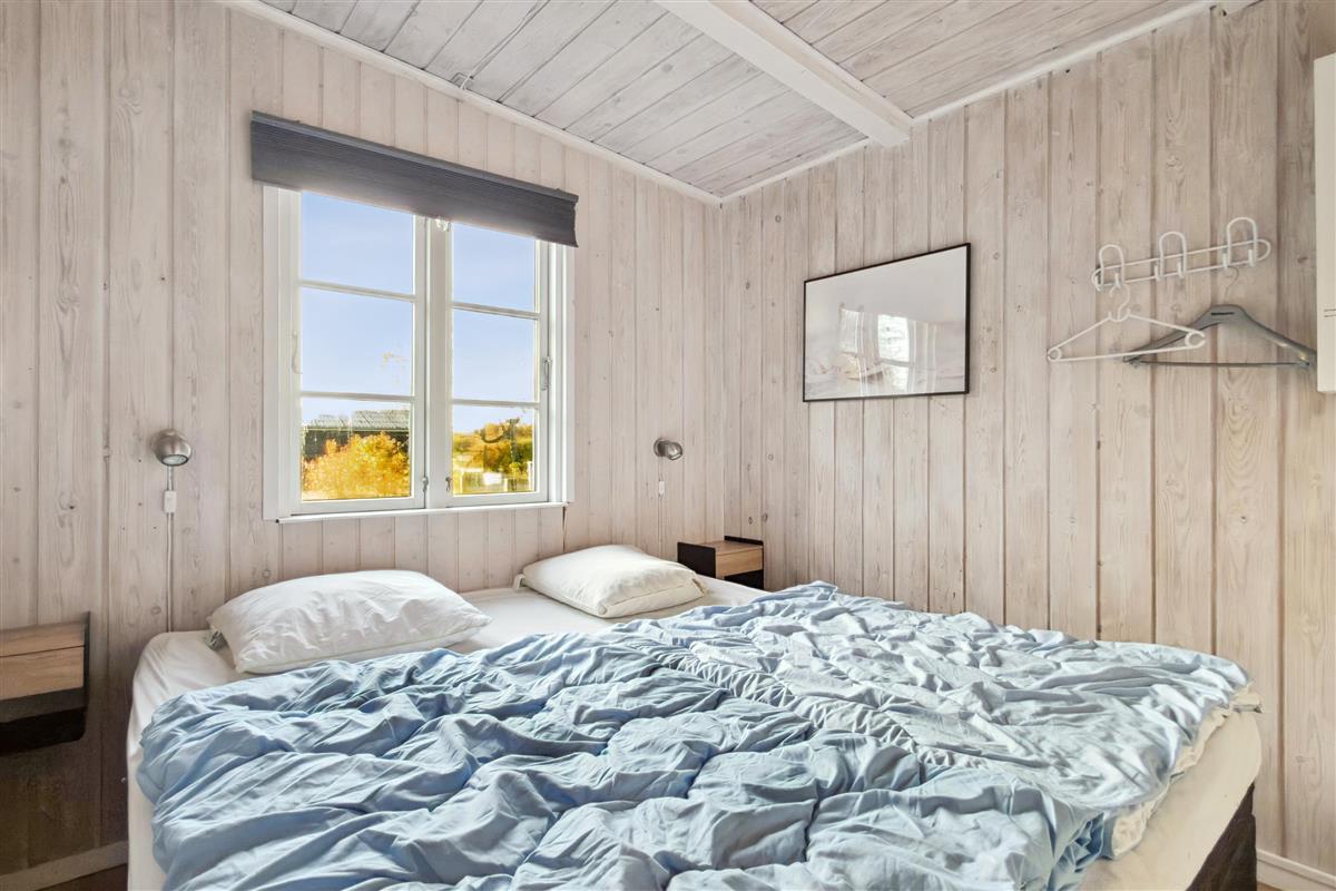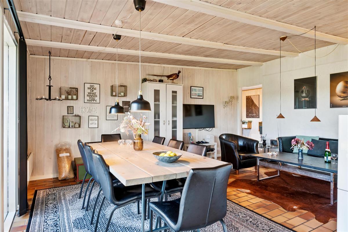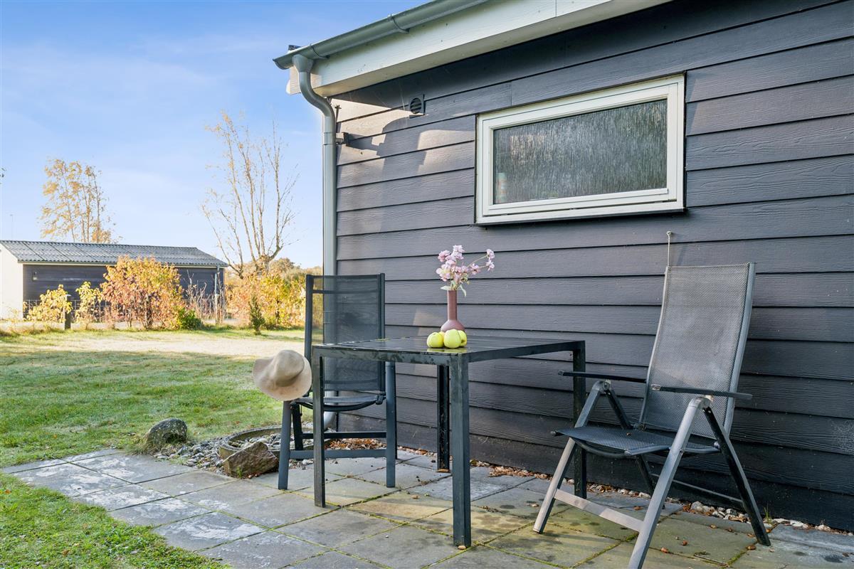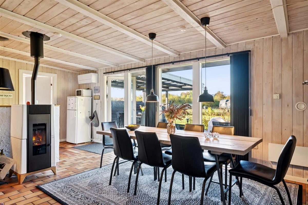 In the beautiful natural surroundings of St. Sjørup, you will find this charming holiday home. The bright and comfortably furnished living room includes a wood-burning stove and a heat pump. Adjacent to the living area is a well-equipped and functional kitchen featuring, among other things, a dishwasher. From the kitchen, there is direct access to a lovely covered terrace with garden furniture and a barbecue.