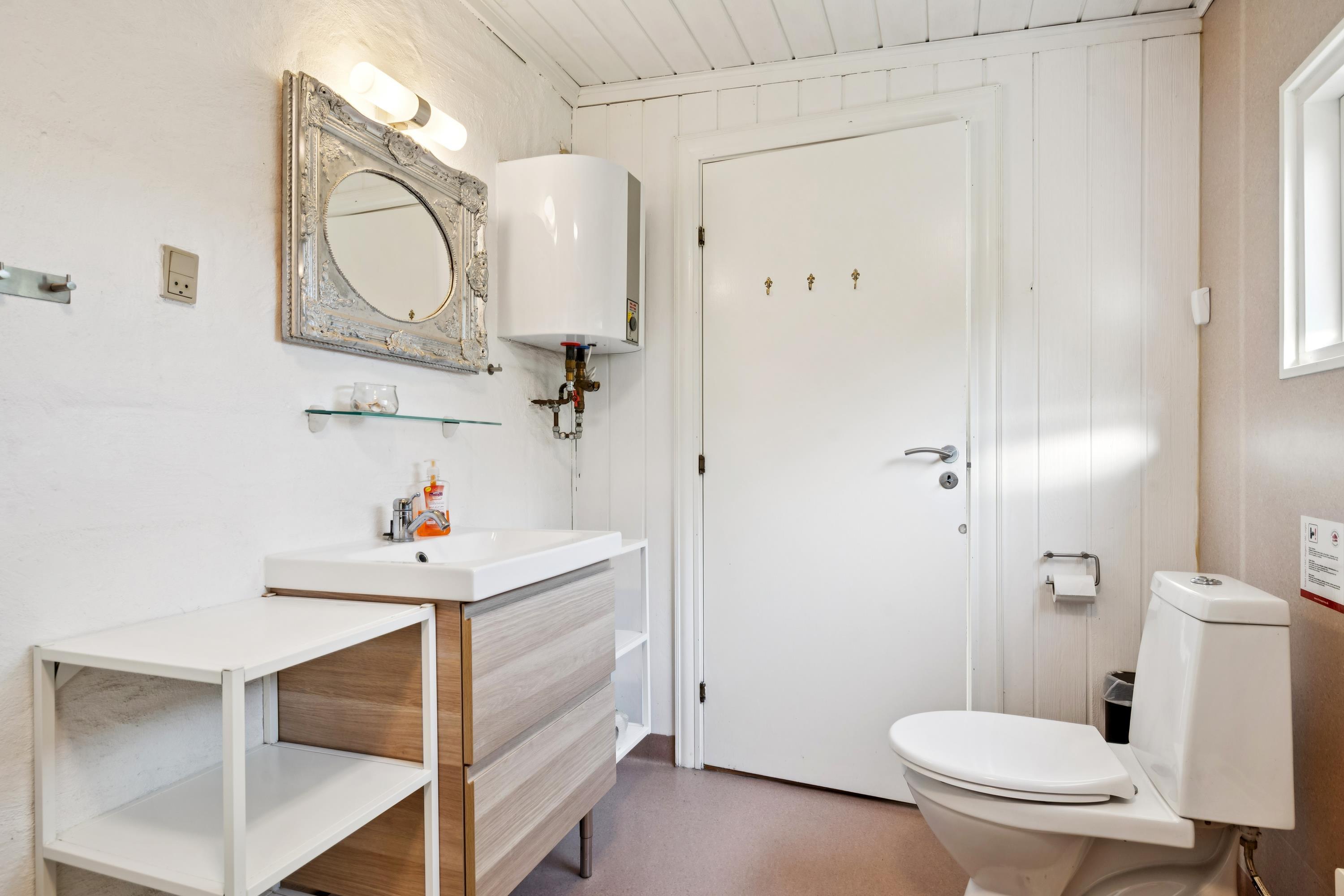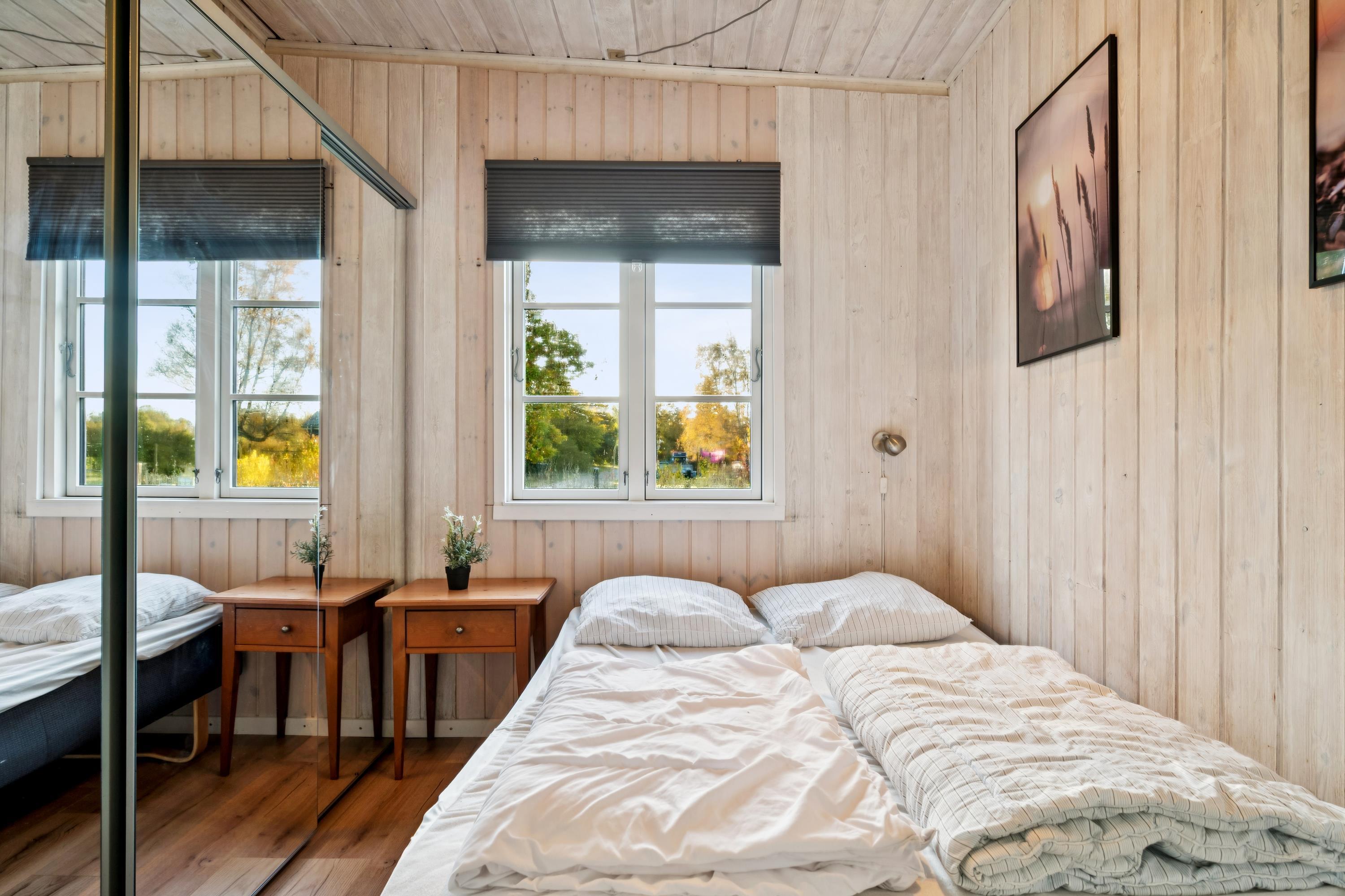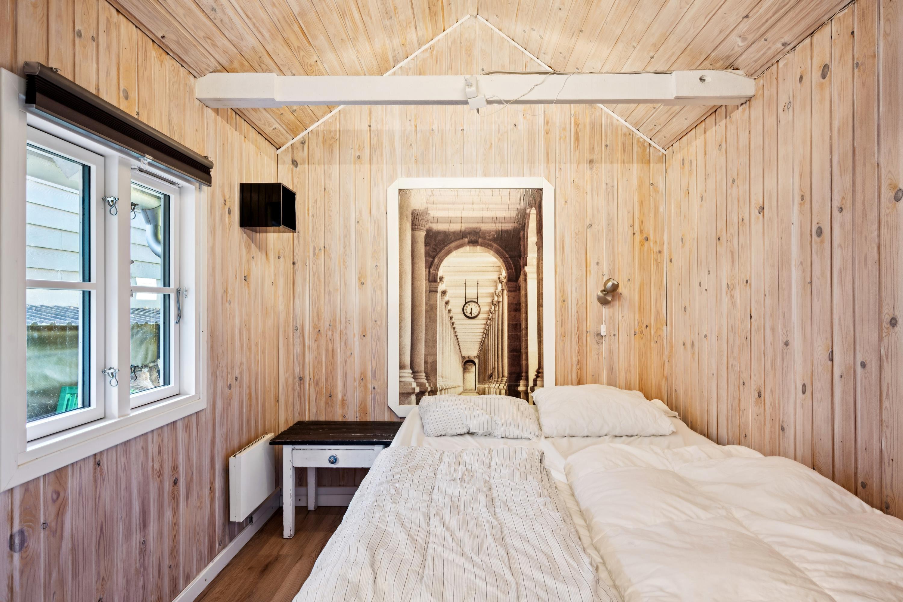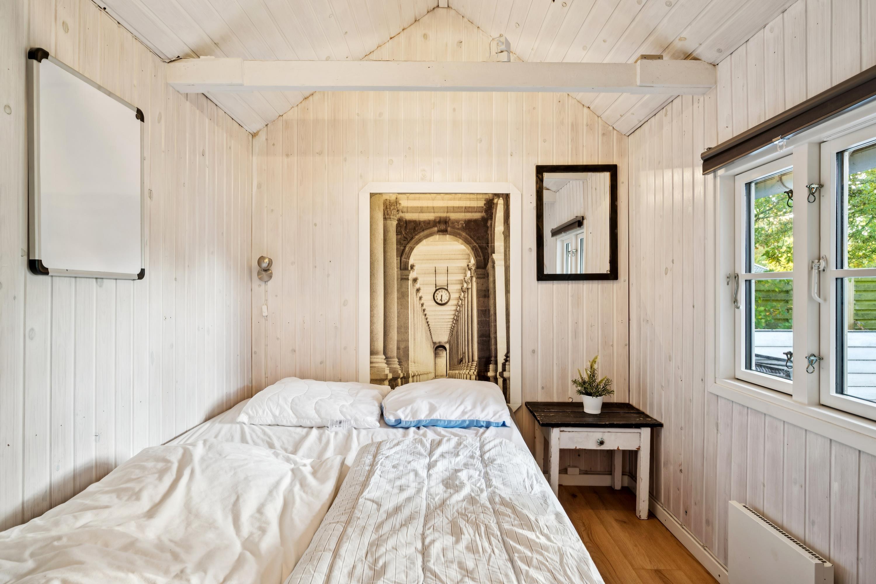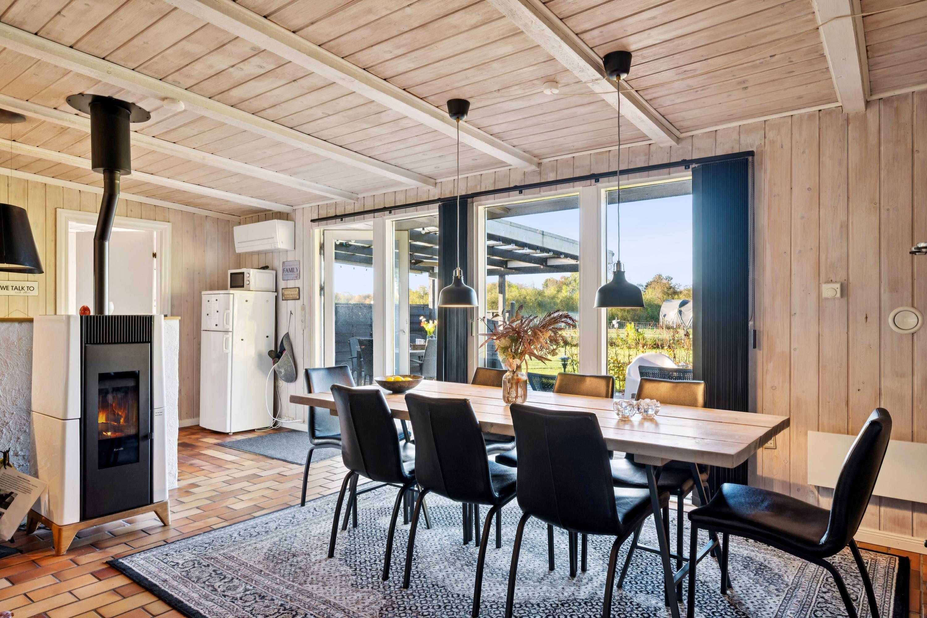 In the beautiful natural surroundings of St. Sjørup, you will find this charming holiday home. The bright and comfortably furnished living room includes a wood-burning stove and a heat pump. Adjacent to the living area is a well-equipped and functional kitchen featuring, among other things, a dishwasher. From the kitchen, there is direct access to a lovely covered terrace with garden furniture and a barbecue.