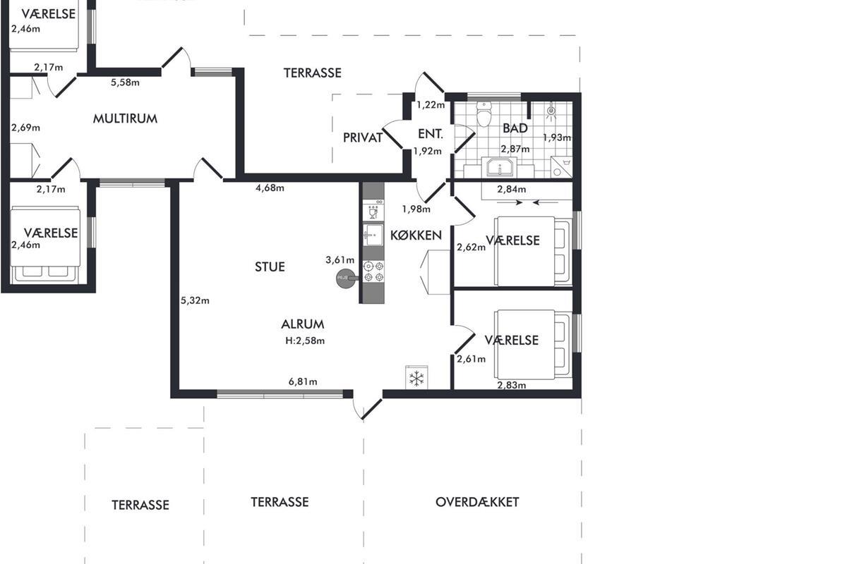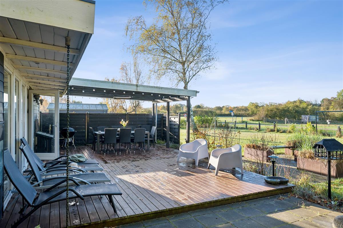 The house is situated on a large, fenced plot with a big lawn, ideal for play and ball games. There is also a football goal and a cosy fire pit where you can enjoy making twist bread or roasting marshmallows on a summer evening. An outdoor cleaning area is available for anglers.