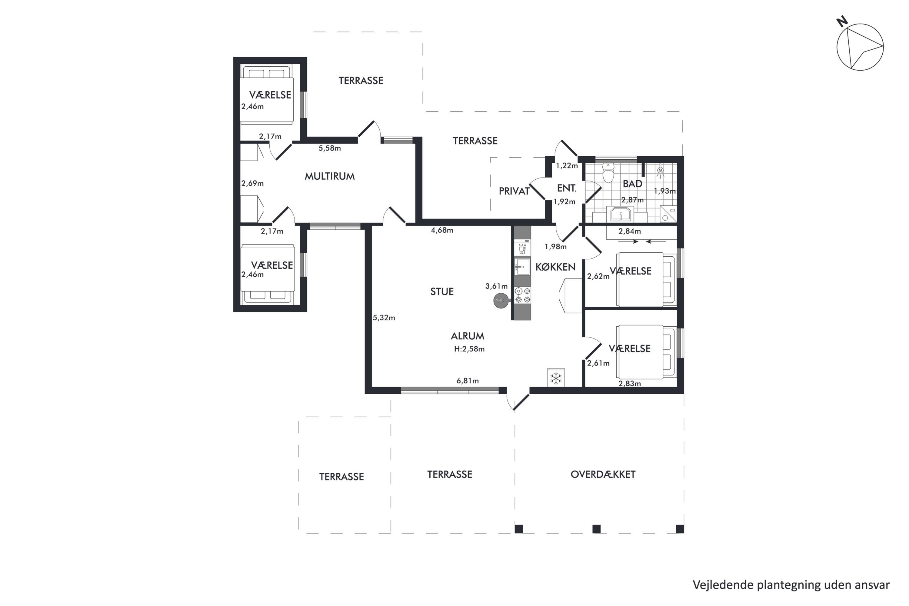 The holiday home is located in a scenic area in northern Djursland. The beach at Store Sjørup is one of Djursland’s unique bathing spots. Here, the coastline first reveals a fjord-like seabed, but as you step into the shallow water, you’ll find sandbanks and the open sea stretching as far as the eye can see.
