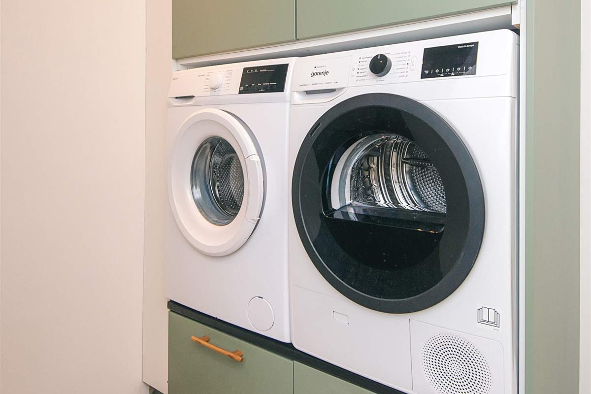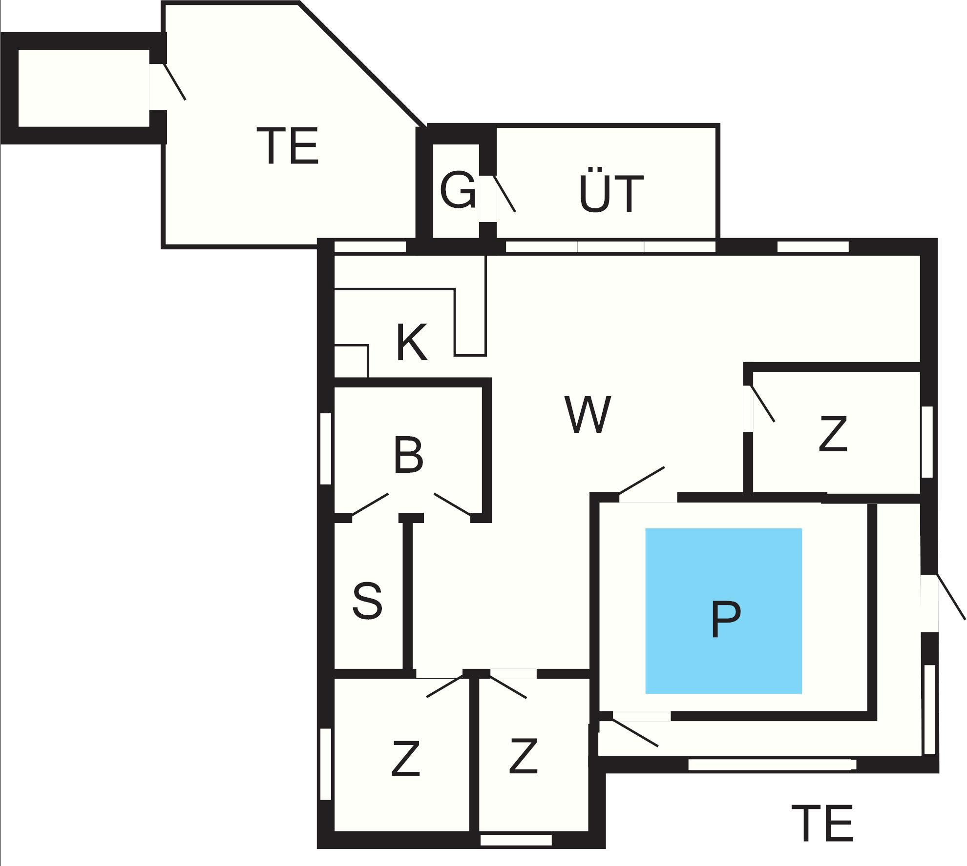 Off. Küche: E-Herd, Kühlschr. m. Gefrierfach, Mikrow., Abzugsh., Kaffeem., Spülm., Waschm, Trockner