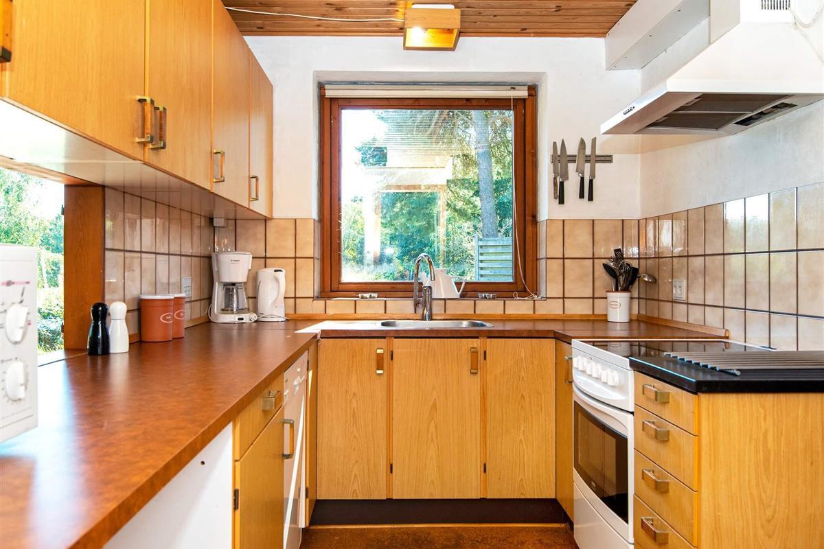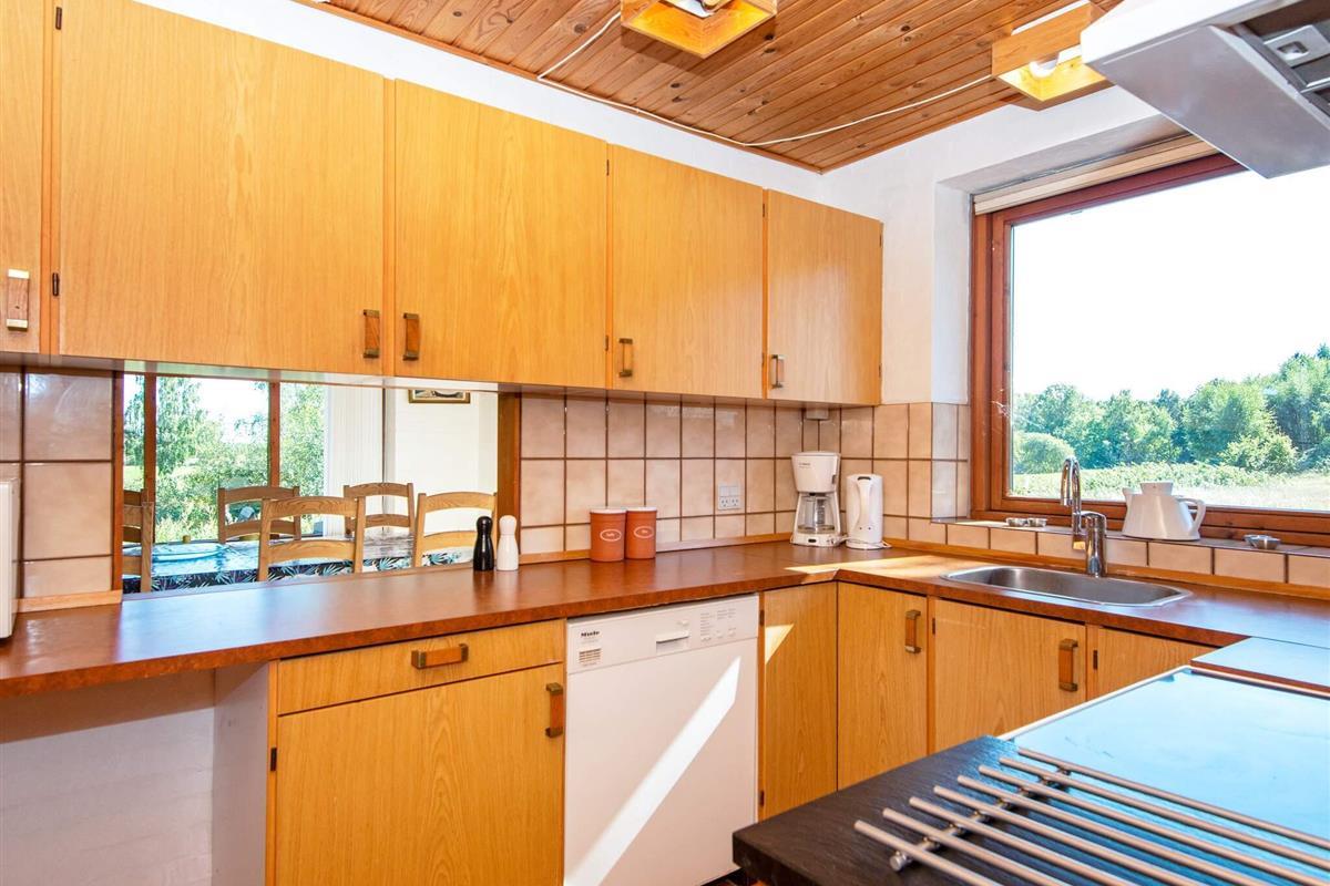 Im Außenbereich gibt es eine große Terrassenfläche mit Ausblick zu einem kleinen See und zur einzigartigen Naturlandschaft um St. Sjørup. Die attraktive Lage des Hauses ermöglicht ganz einfach einen Badeausflug mit der ganzen Familie. Außerdem lädt die Natur ringsum zu Spaziergängen und Radtouren ein.