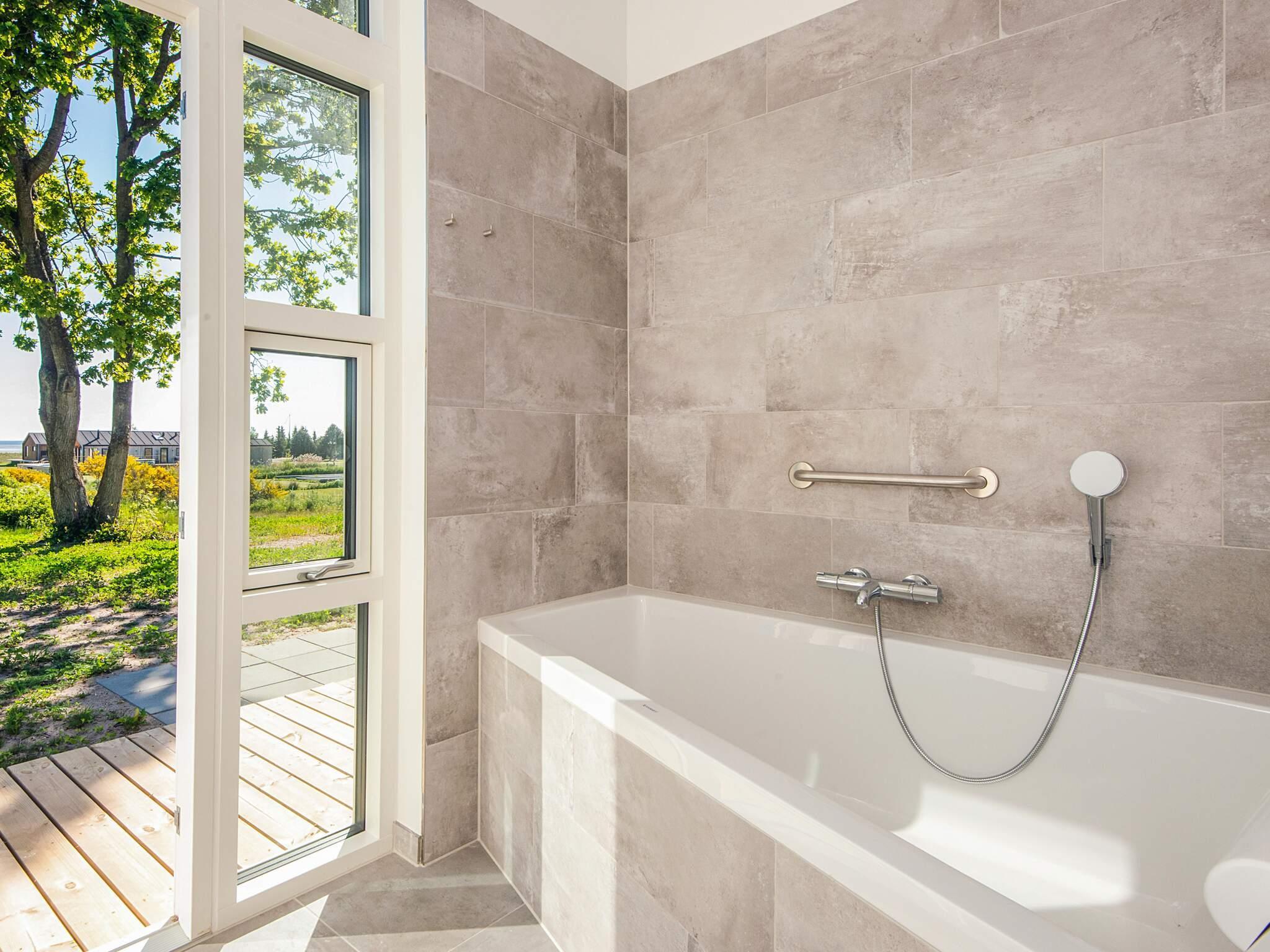 Außendusche, ideal nach einem Tag am Strand oder einem Saunagang (Sauna wird bis Ostern 2025 fertig sein).