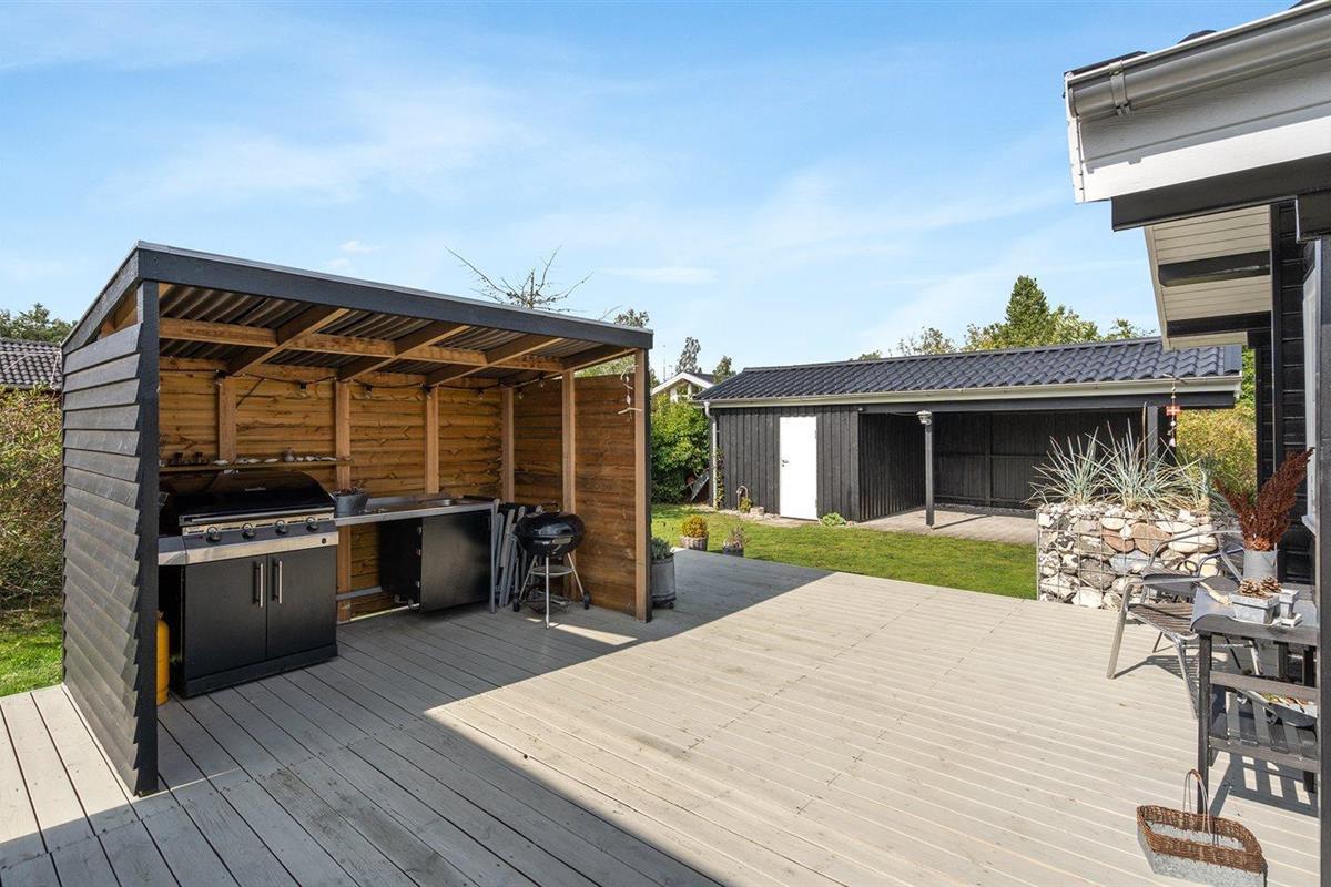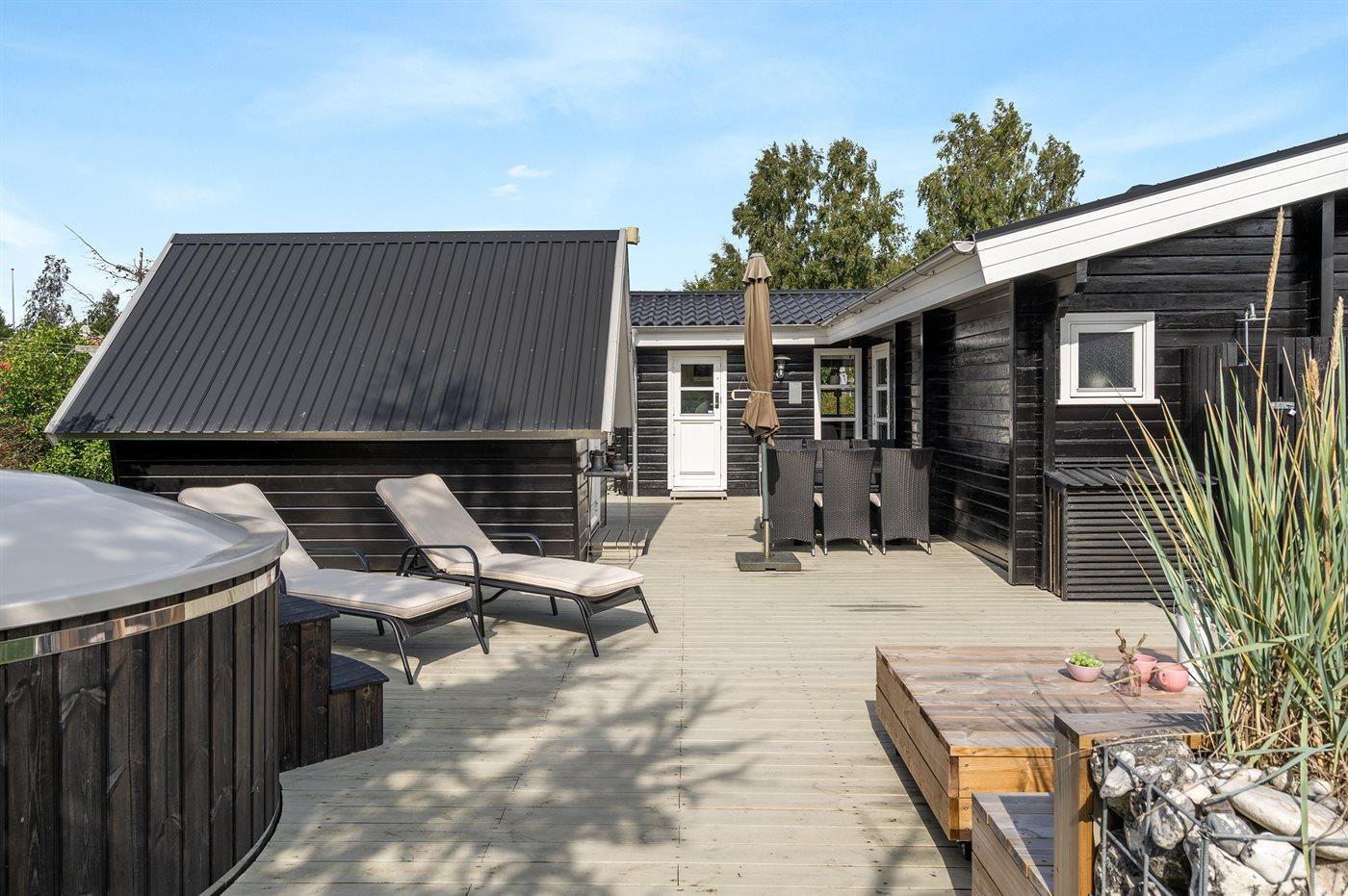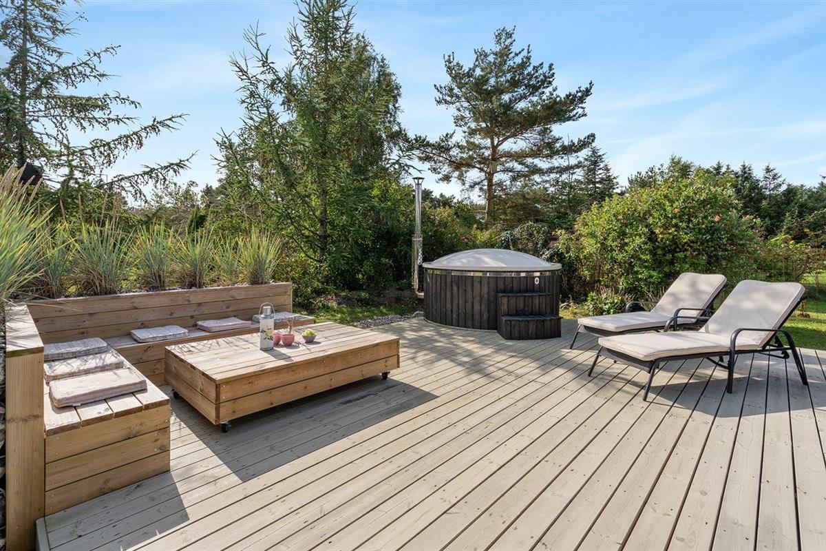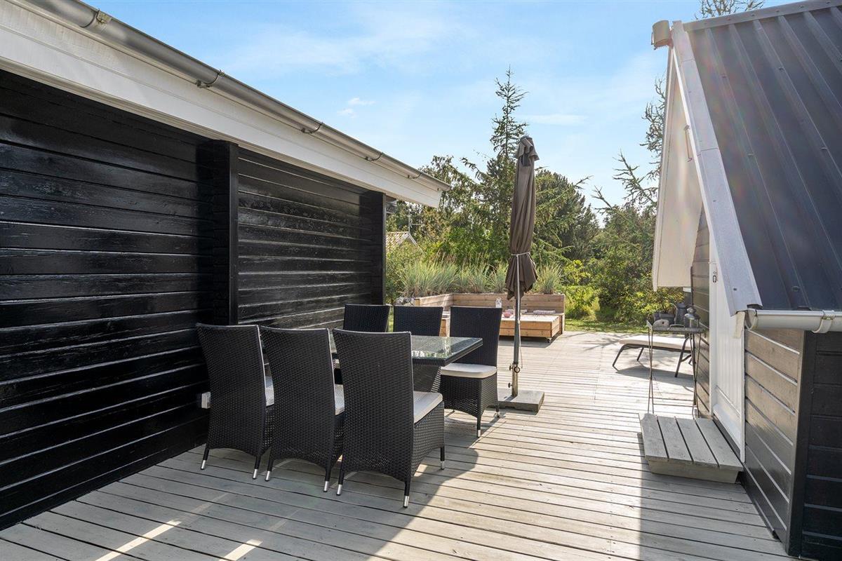 De vakantiewoning is gelegen op een 1200 m² groot aangelegde tuin. Afstand tot de zee 400 m. Dichtstbijzijnde winkel 5700 m. Bij de vakantiewoning hoort terras. Gereedschapsruimte. Shelter. Buitendouche. U kunt buiten een maaltijd bereiden in de buitenkeuken. Barbecue. Carport ter beschikking. Parkeerplaats bij het huis.