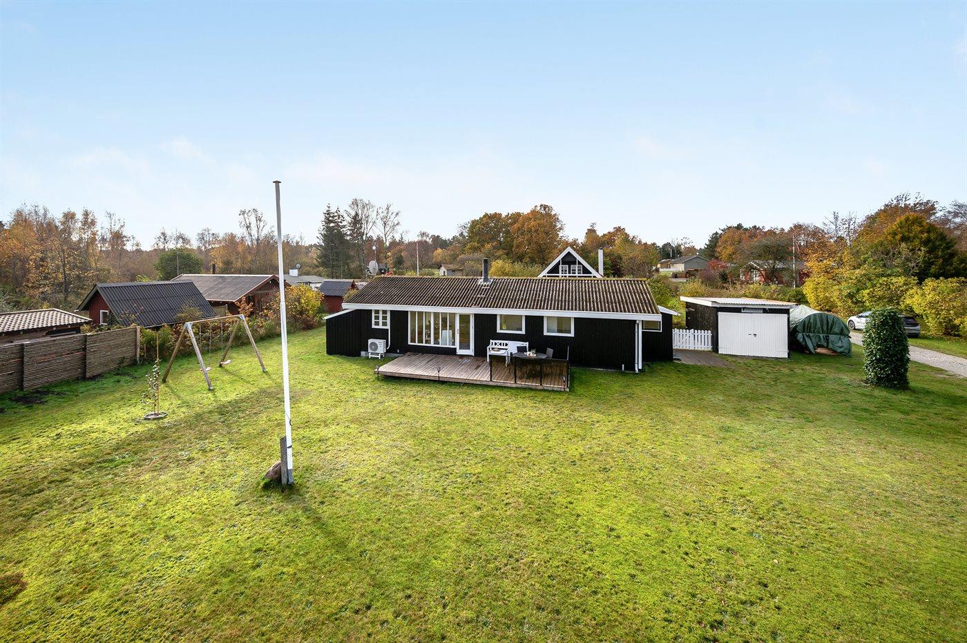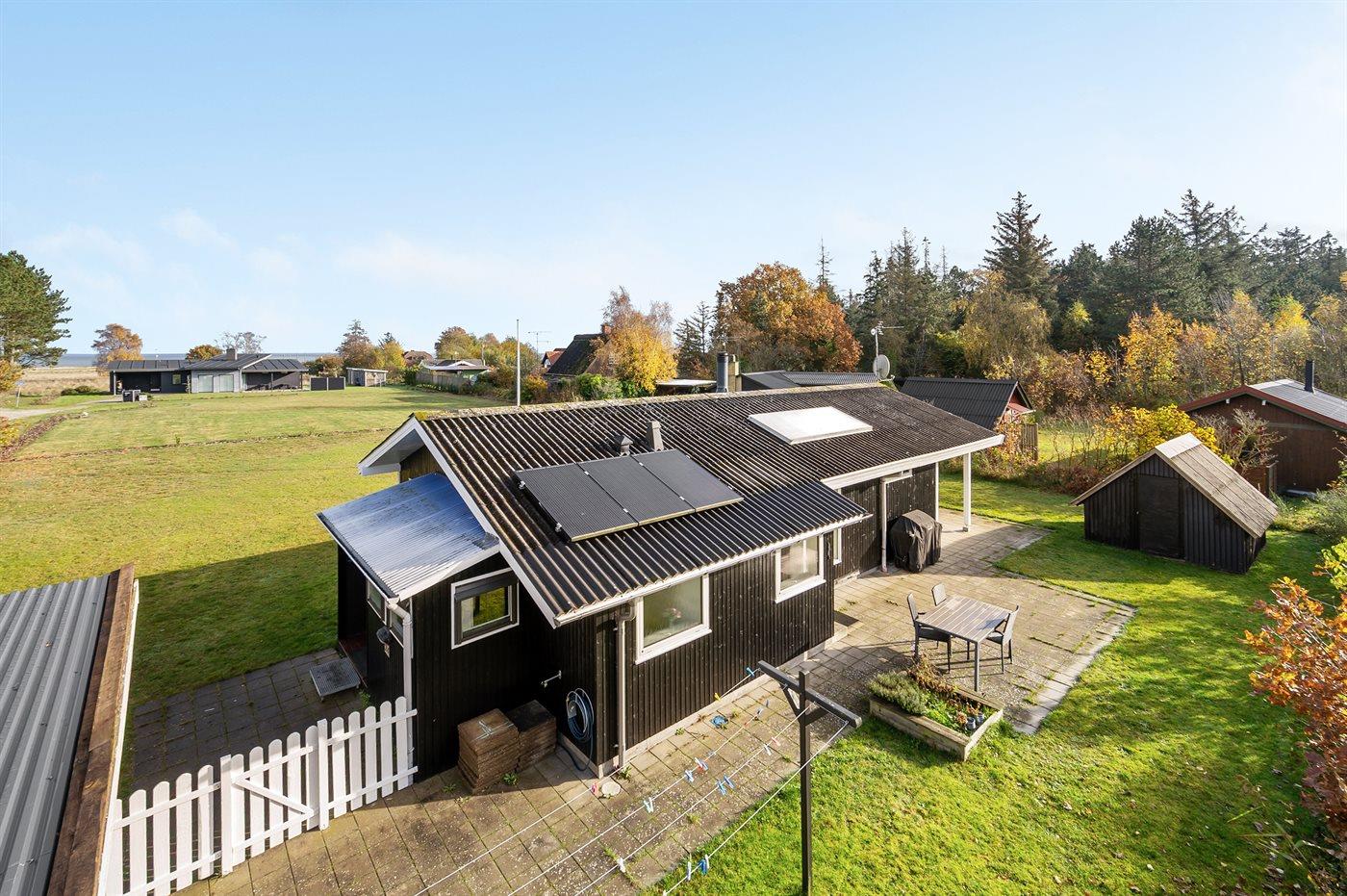 De vakantiewoning is gelegen op een 1228 m² groot natuural grond. Afstand tot de zee 300 m. Dichtstbijzijnde winkel 6000 m. Bij de vakantiewoning hoort terras. Daarnaast is er een overdekt terras. Gereedschapsruimte. Schommel. Trampoline. Buitensauna. Buitendouche. Barbecue. Parkeerplaats bij het huis.