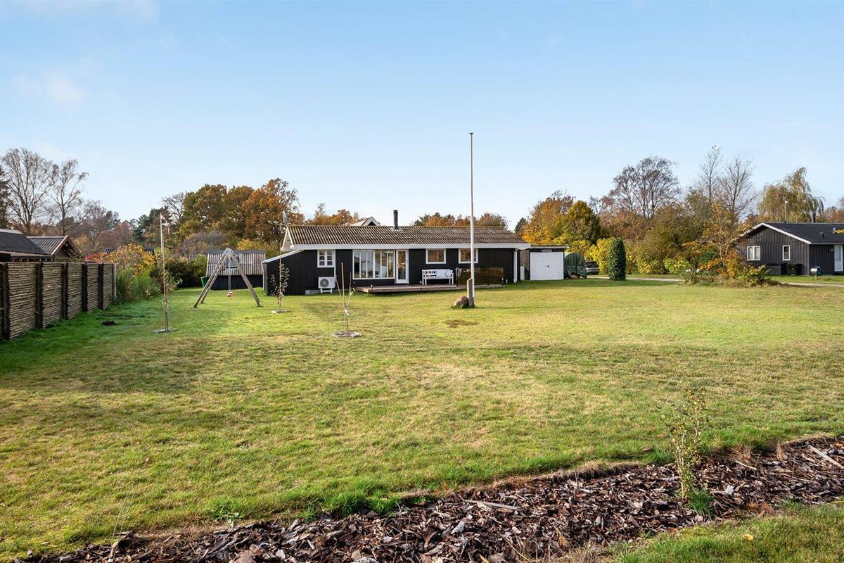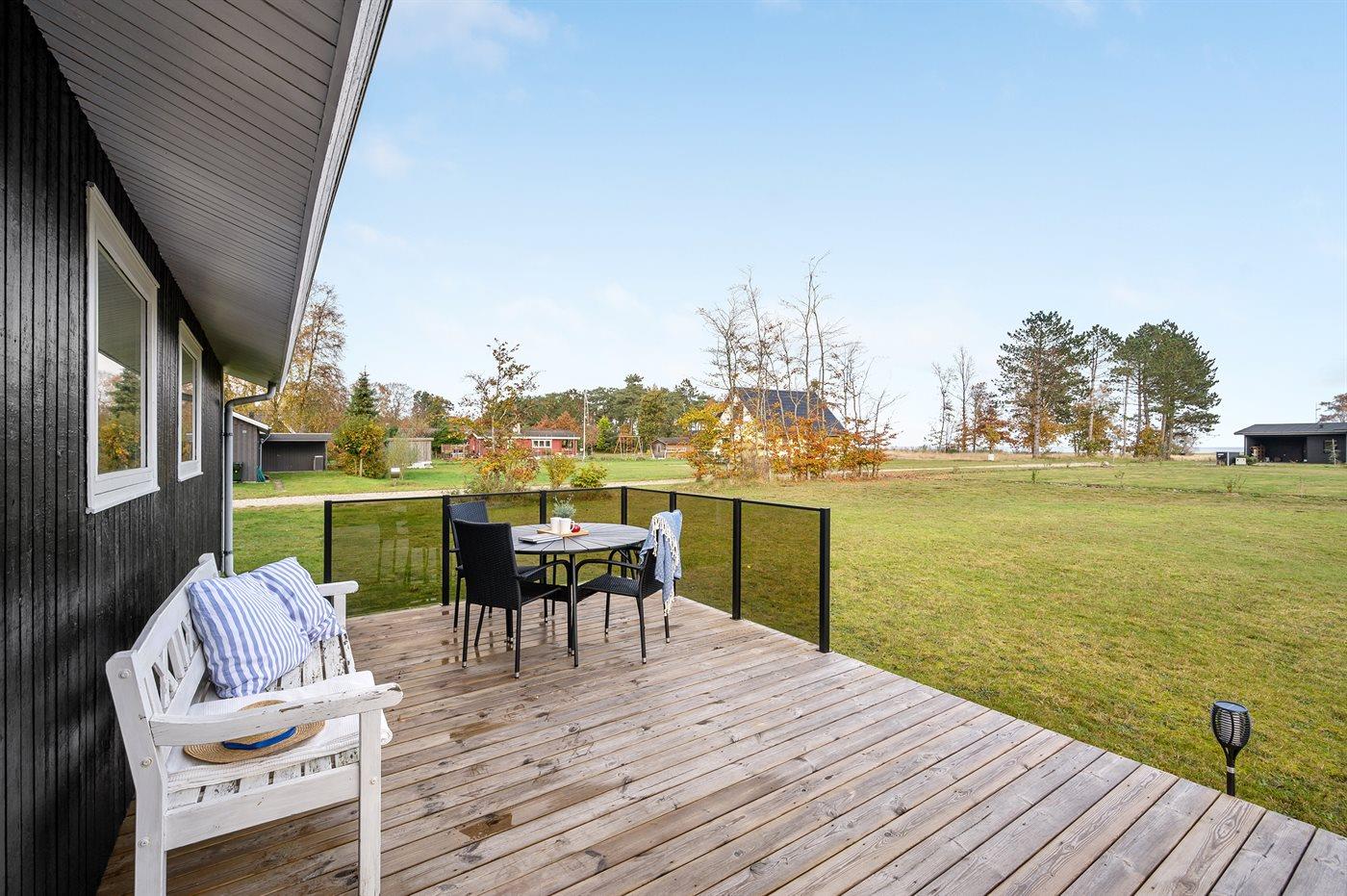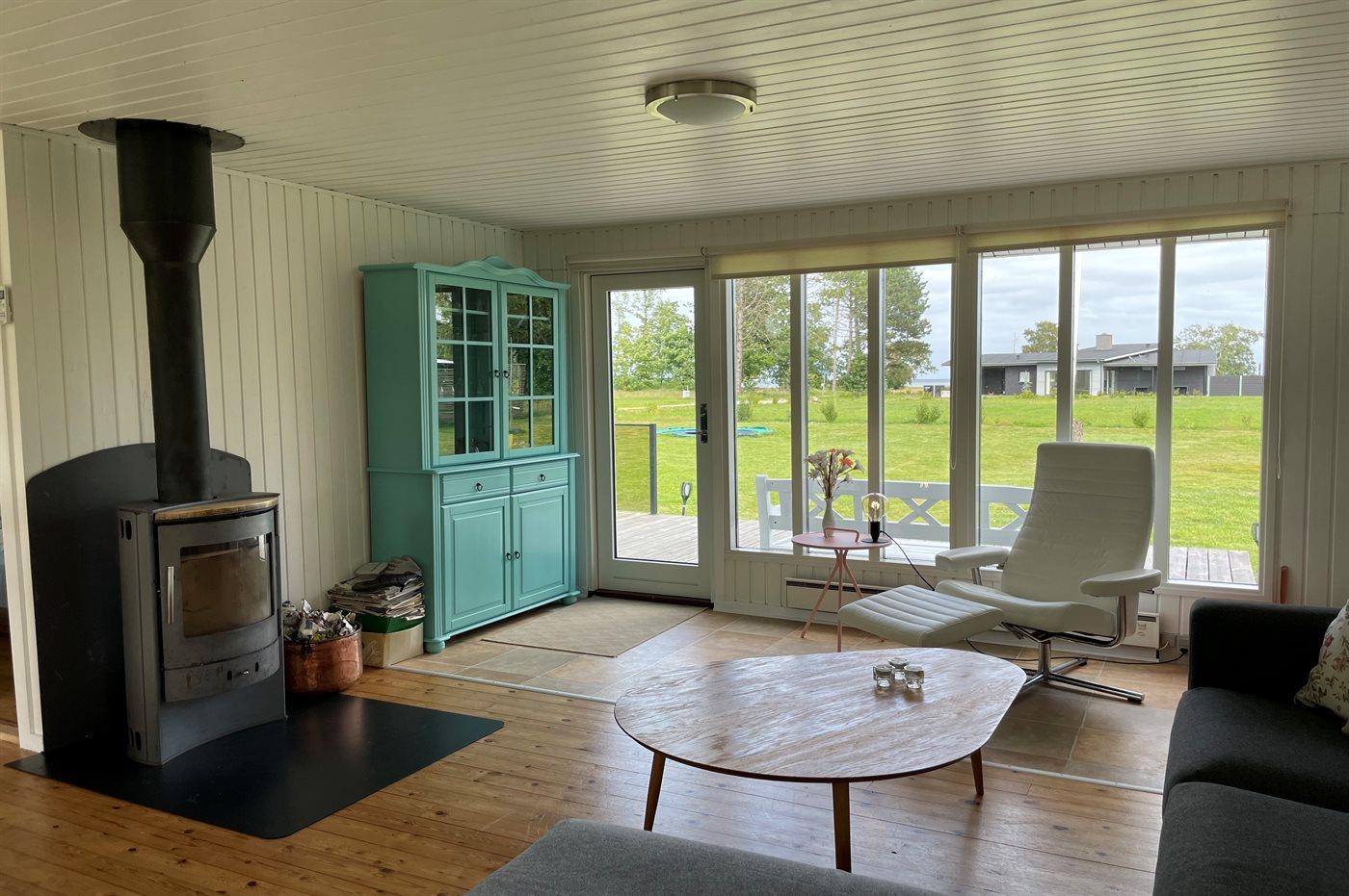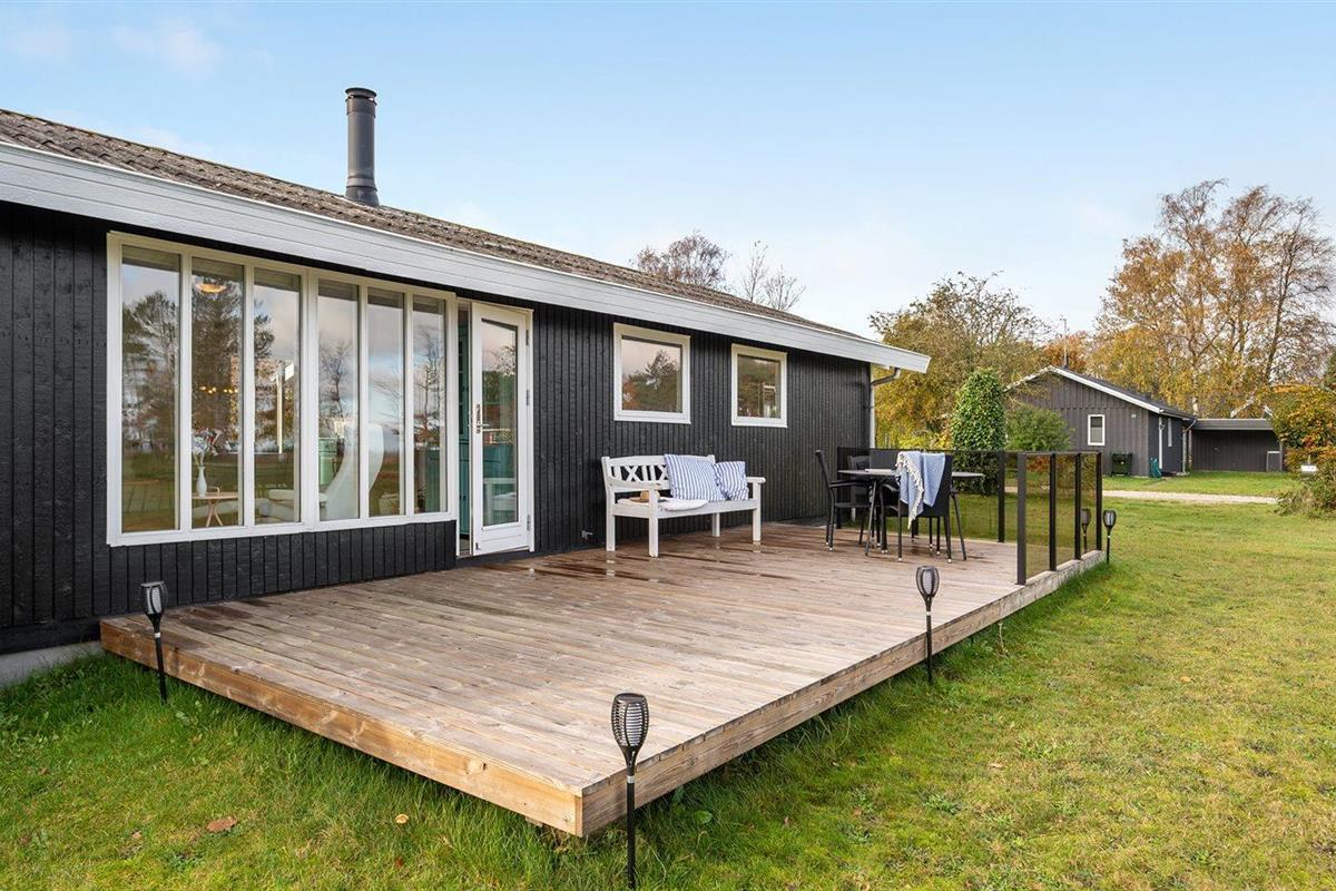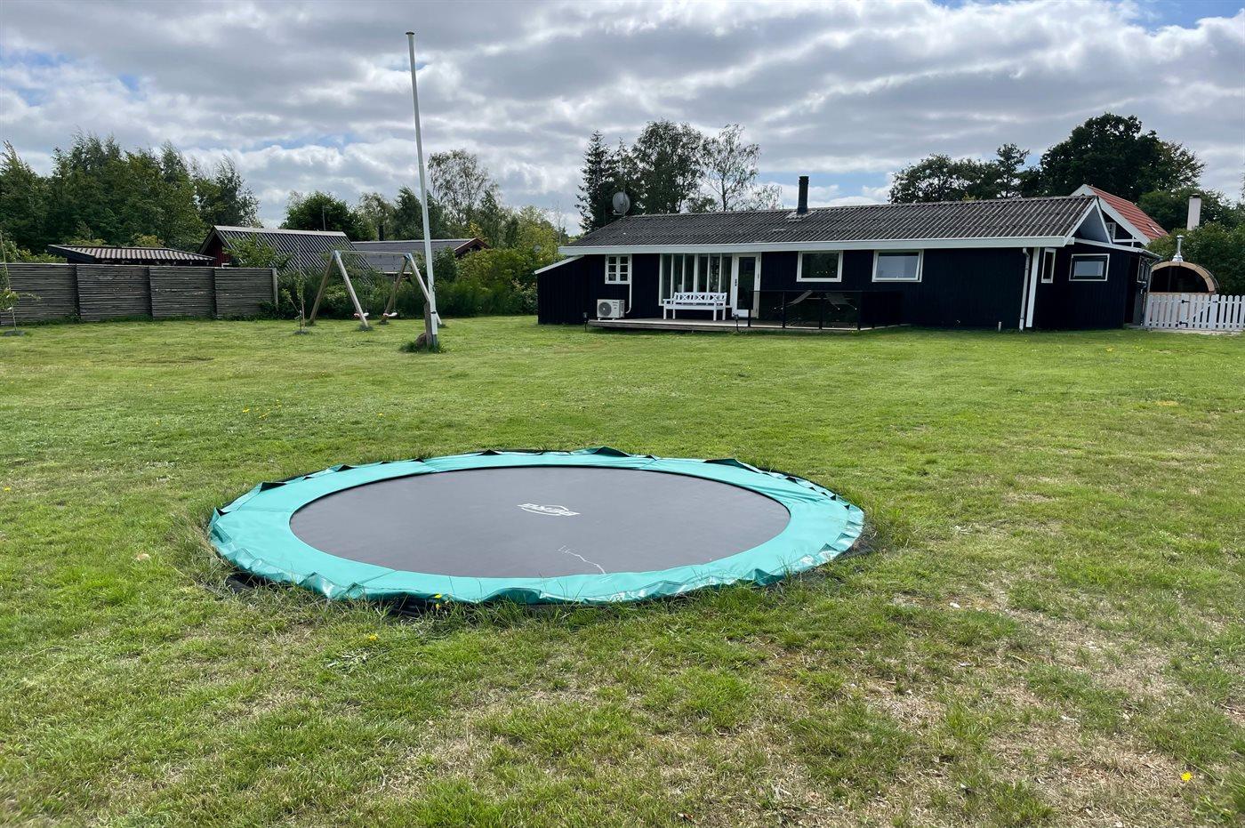 Charmant vakantiehuis in Ørsted met sauna, trampoline en zeezicht, ideaal voor gezinnen en rustzoekers.
