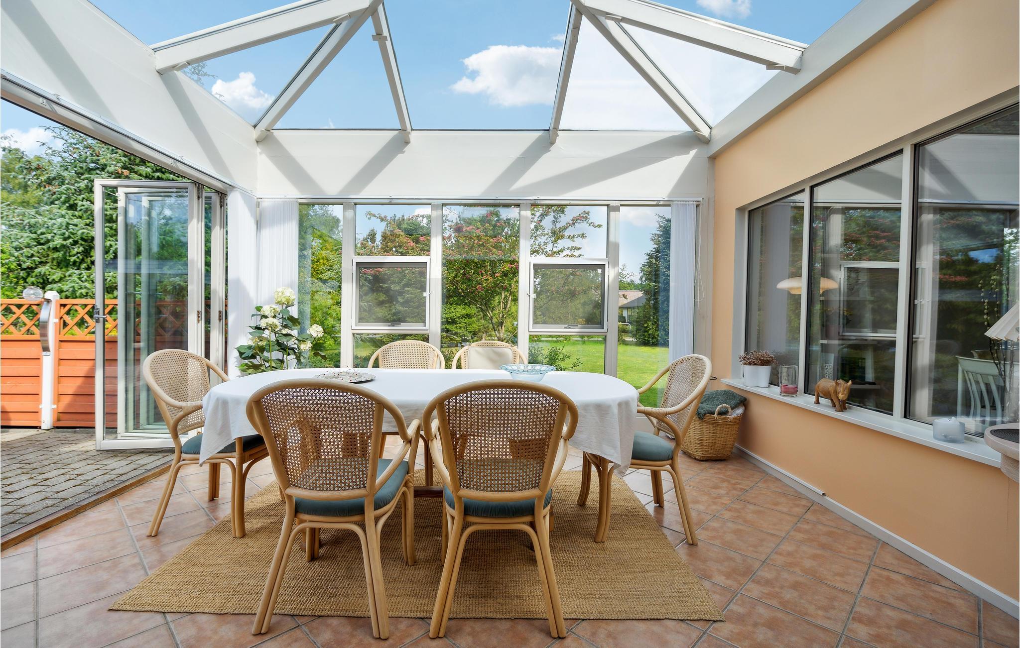 Ruim vakantiehuis vlak bij zee met serre, open haard en terras, omgeven door natuur, ideaal voor een ontspannen gezinsvakantie.
