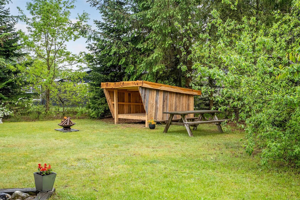 Store Sjørup ligt aan de noordkust van Djursland, en dit goed onderhouden vakantiehuis wacht op de gasten op een groot perceel met een gazon. In het huis zijn er drie slaapkamers, een badkamer, woonkamer, eetkamer en keuken, de laatste drie in open verbinding met elkaar. Er is een groot terras en de carport kan 's avonds ook als overdekt terras worden gebruikt, zelfs als het zou regenen. De grote bossen in de omgeving bevatten wandelpaden. Niet ver weg is een natuurlijk strand met grote zandbanken. Hier kunt u genieten van de golven van het Kattegat, en hier kunt u vissen, want er is altijd een goed aanbod van schol en zeeforel. In een half uur rijden bereikt u Nimtofte, hier vindt u ook het bekende en zeer grote pretpark Djurs Sommerland.