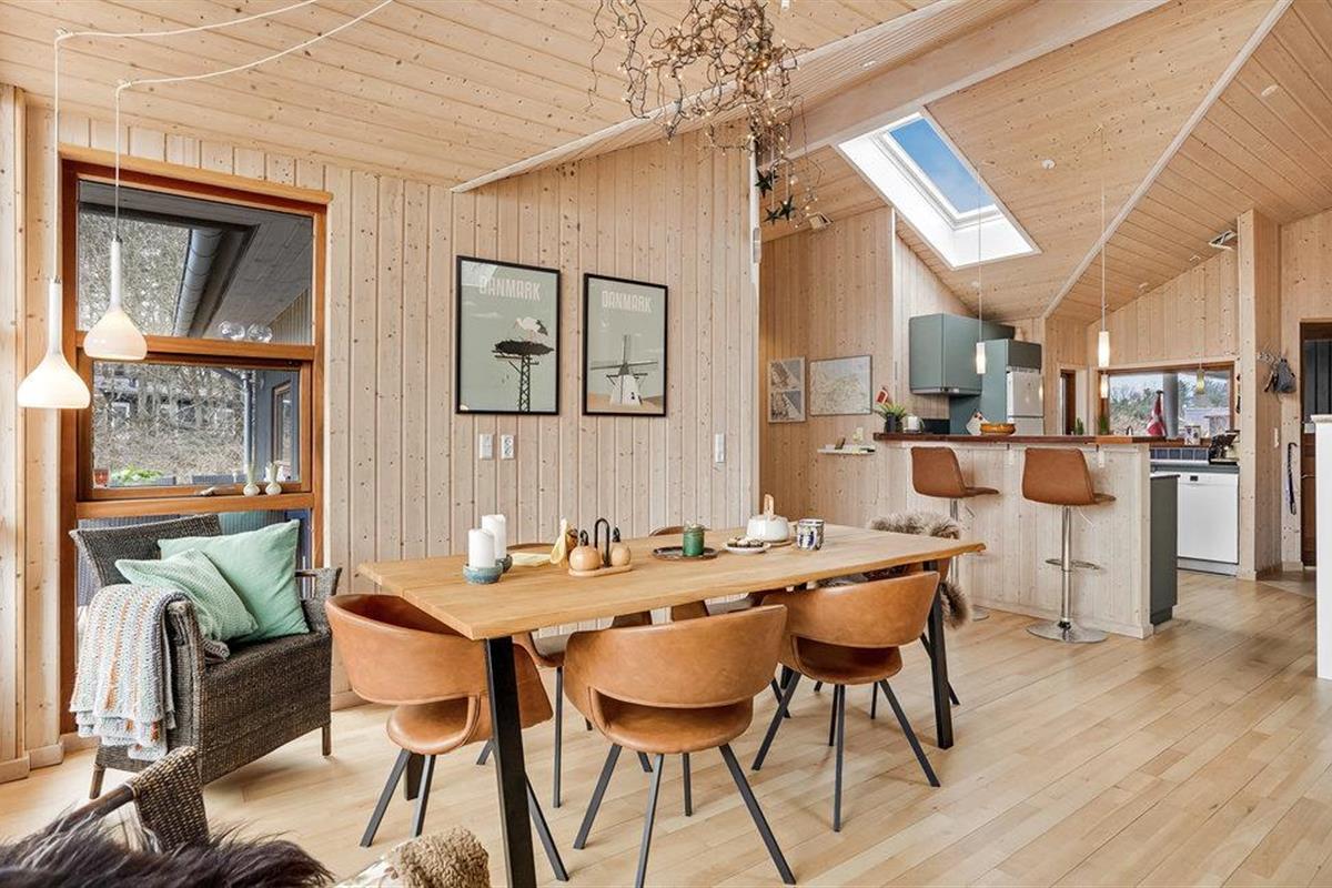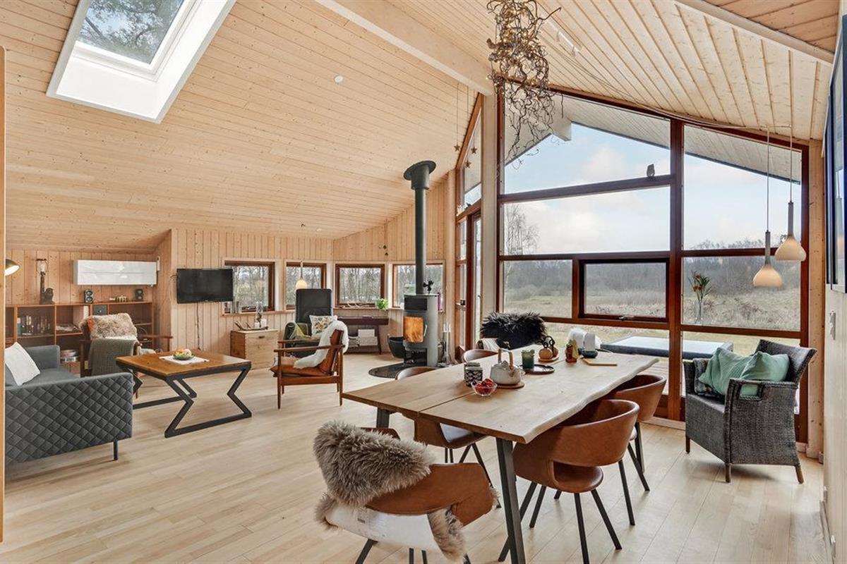 Dit eersteklas vakantiehuis is prachtig gelegen dichtbij een weids, beschermd natuurgebied. Het huis is een van de mooiste in deze regio, waardoor u er met volle teugen zult genieten. De inrichting is licht en vriendelijk. Naast de zeven slaapkamer beschikt de slaapzolder over 2 eenpersoonsmatrassen. Rondom bijna het hele huis ligt een gedeeltelijk overdekt houten terras van 120m². Het gebied is geliefd om de rust, de natuur en de dierrijke omgeving. Het huis ligt gunstig voor uitstapjes naar tal van leuke bestemmingen op rijdafstand: een kindvriendelijk zwemstrand o.a. het fjord bij Randers en het gezinspark Djurs Sommerland. Vissers kunnen in het Kattegat zelf hun avondeten vangen.