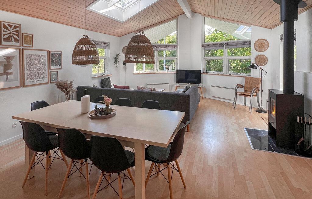 Dit goed onderhouden vakantiehuis in St. Sjørup ligt op een groot gazon. Het interieur is gezellig en de hoge plafonds zorgen voor veel licht in de keuken-woonkamer. Verder zijn er drie slaapkamers, een vide, een badkamer met whirlpool en een extra toilet. De kinderen kunnen spelen in de tuin en de volwassenen zullen genieten van het terras. In de omgeving zijn grote bossen en landhuizen te vinden. Het zandstrand ligt op loopafstand om te zwemmen. Ook het attractiepark Djurs Sommerland is een bezoek waard. In Randers vindt u goede winkels in het voetgangersgebied, en er is ook een winkelcentrum. U kunt ook een bezoek brengen aan het Elvis Museum Memphis Mansion.