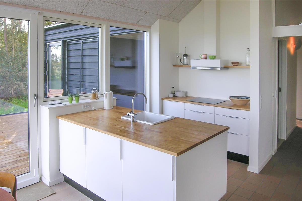 Gezellig energiezuinig huis met een prachtig panoramisch uitzicht over het Kattegat. Hier kun je op het terras zitten en kijken naar het kleurenspel op het water, vergezeld van tjilpende vogels en een overvloed aan wilde dieren. Na een duik in het Kattegat lonkt de sauna. Buiten zijn er verschillende gezellige en windstille hoekjes waar je kunt ontspannen, en het bijgebouw kan via twee schuifdeuren in het huis worden geïntegreerd.