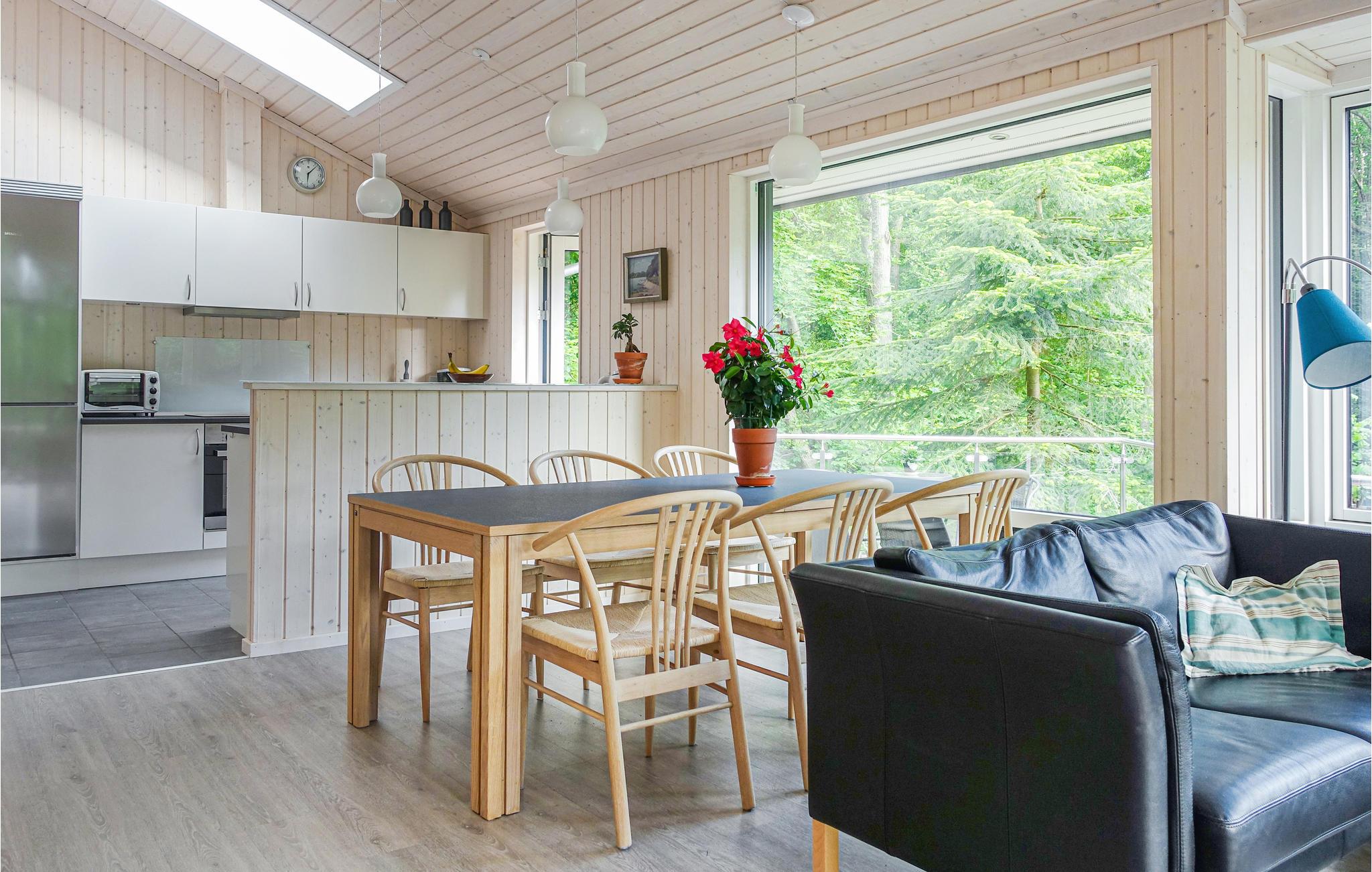 Het zomerhuis bestaat uit twee gezellige slaapkamers, een open, goed uitgeruste keuken, een badkamer met wasmachine en vloerverwarming, en last but not least, een gezellige woonkamer met TV, radio en Bluetooth speaker. Vanuit de woonkamer heeft u toegang tot een groot, gedeeltelijk overdekt houten terras met comfortabel loungemeubilair, een gasbarbecue en een buitendouche, perfect om het zand af te spoelen na een uitstapje naar het strand. Het huis heeft een warmtepomp en gratis, snel en onbeperkt WiFi. Er zijn goede winkel- en eetgelegenheden in het gezellige Rønne.