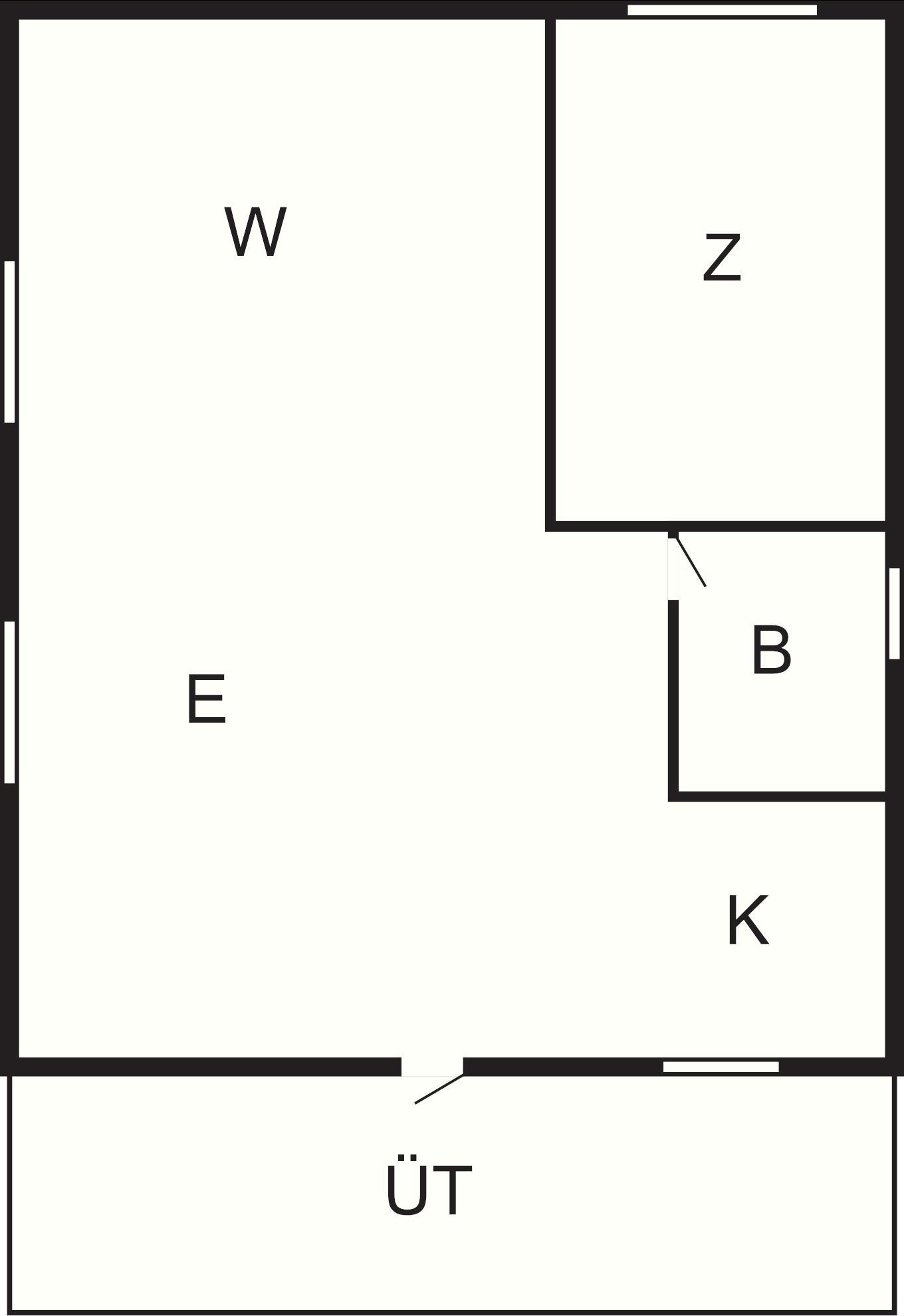 Off. Küche: E-Herd, Kühlschr. m. Gefrierfach, Mikrow., Kaffeem.