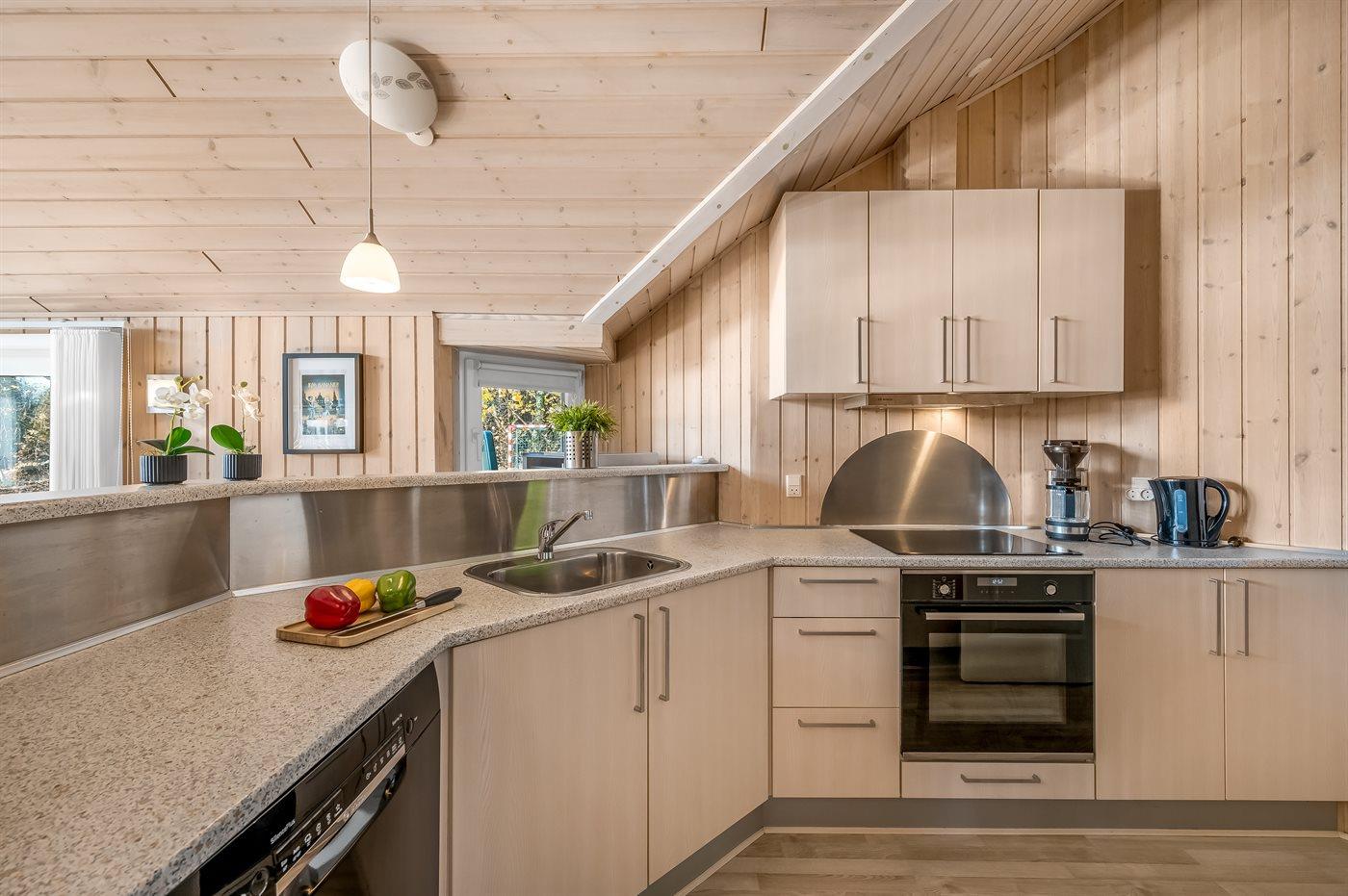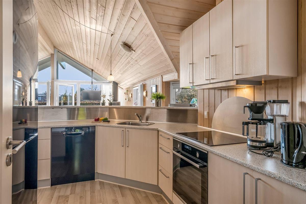 De keuken is uitgerust met koelkast Er is 4 inductiekookplaten, heteluchtoven, magnetron en vaatwasser.