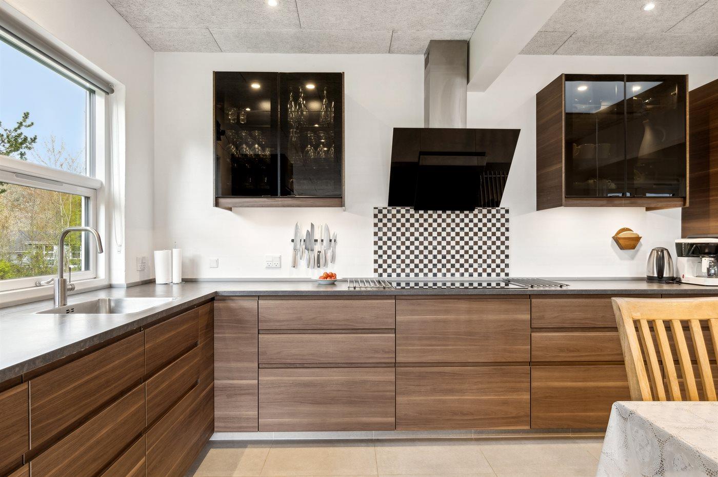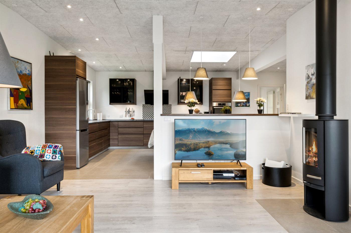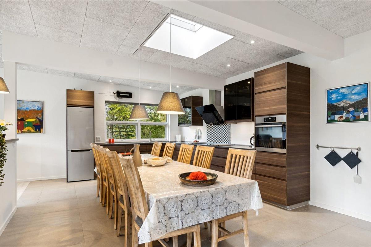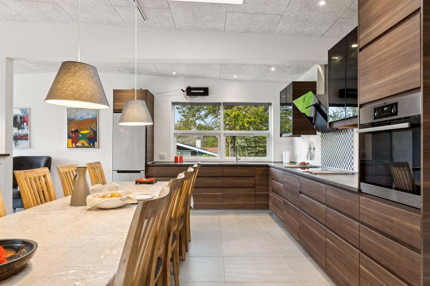 De keuken is uitgerust met koelkast Er is 4 inductiekookplaten, heteluchtoven, magnetron en vaatwasser.