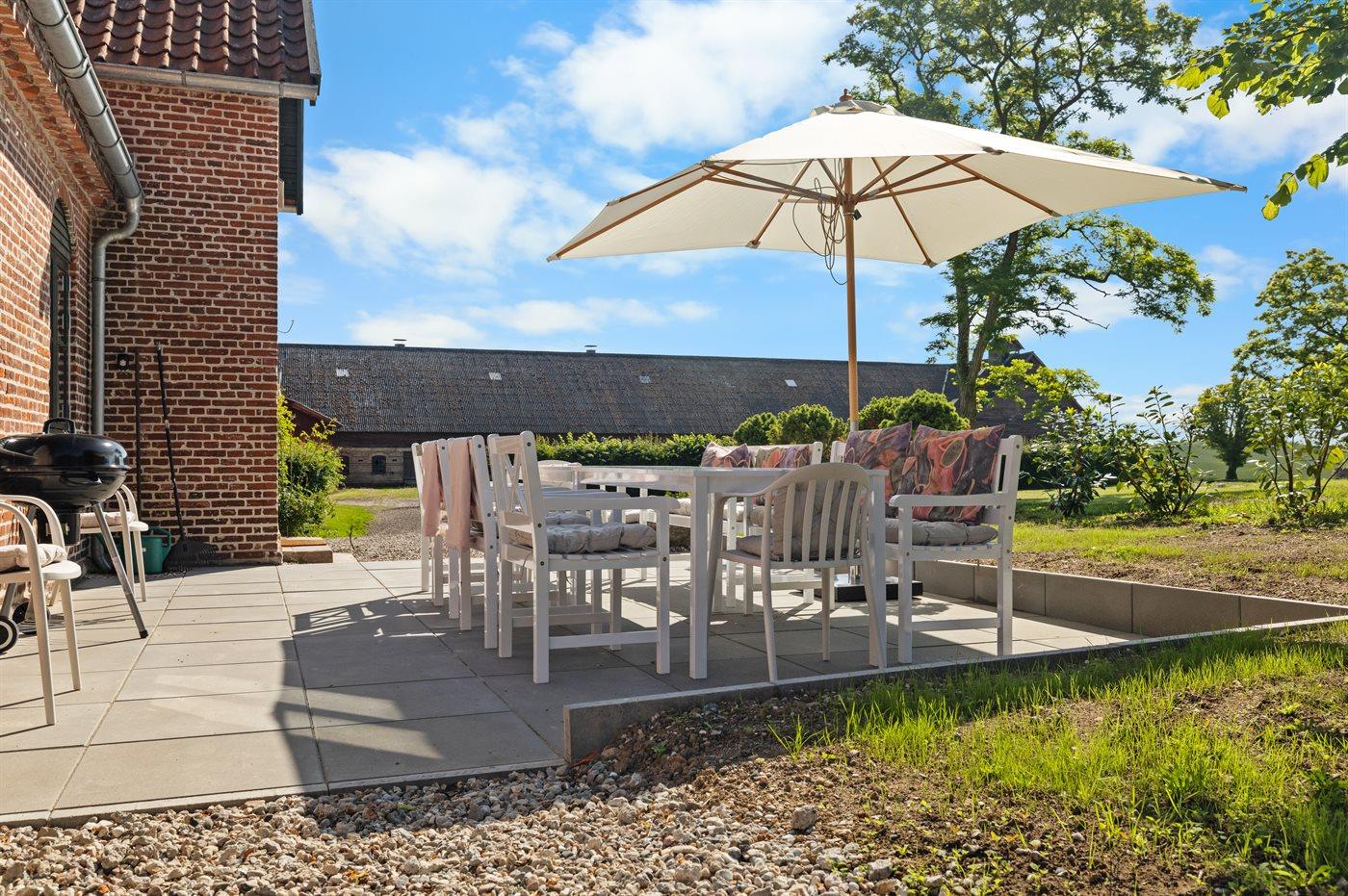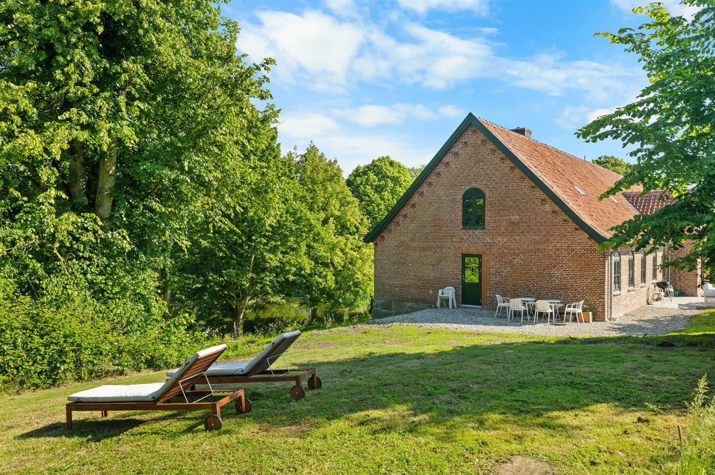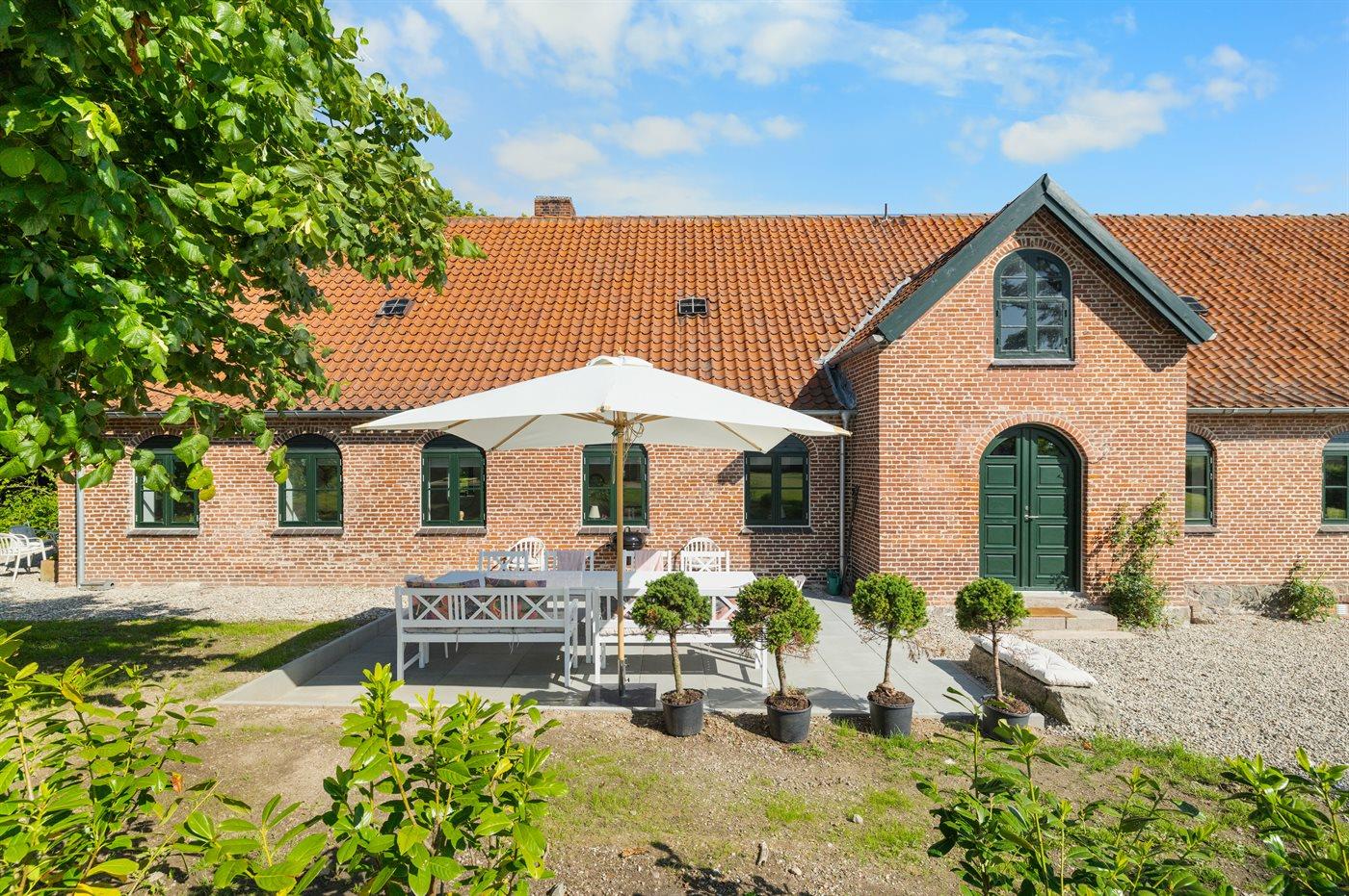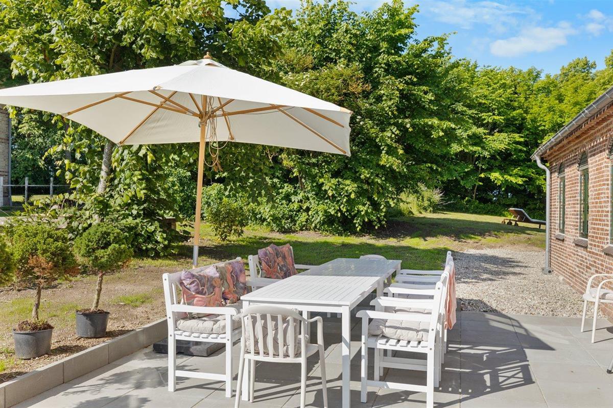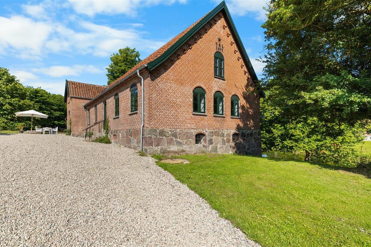 Voormalige boerderij in Tranekær, recent gerenoveerd voor grote groepen, met moderne voorzieningen en rustiek uitzicht.