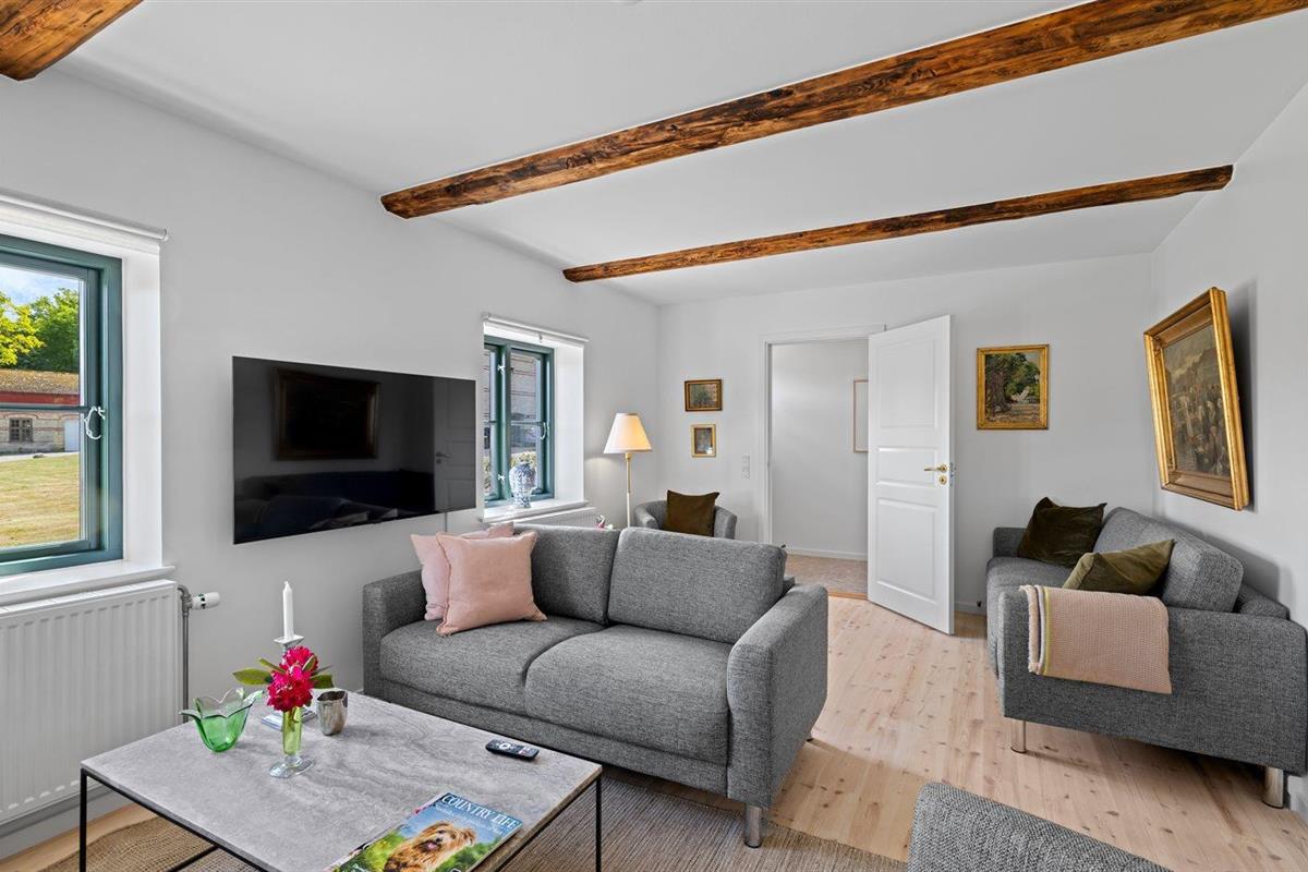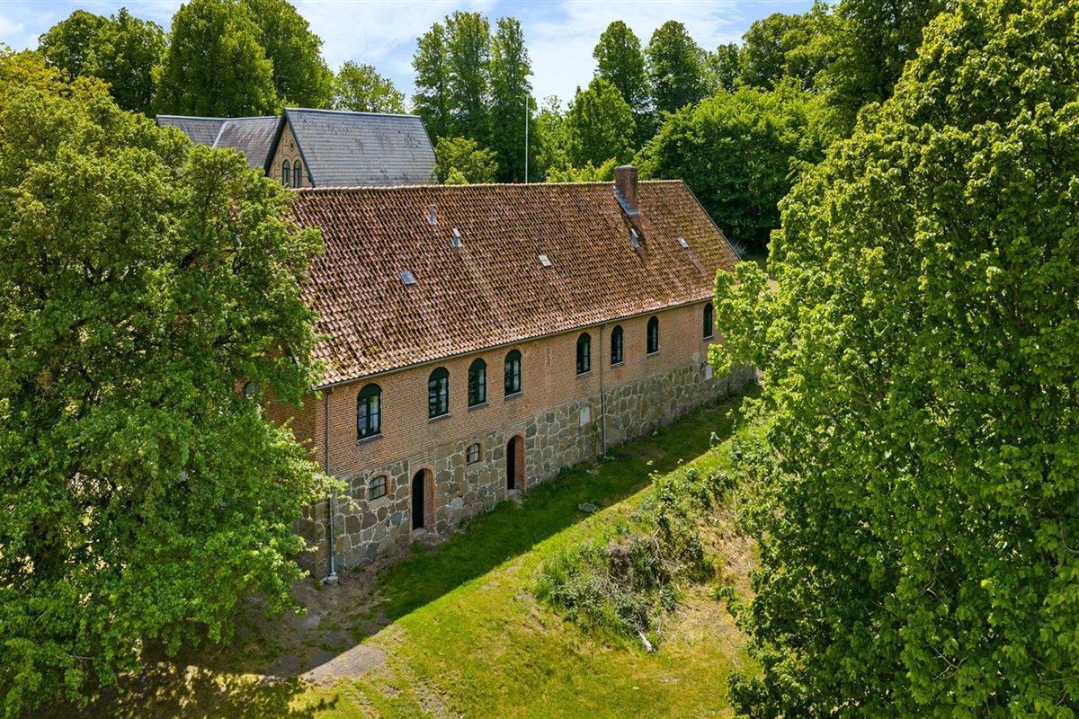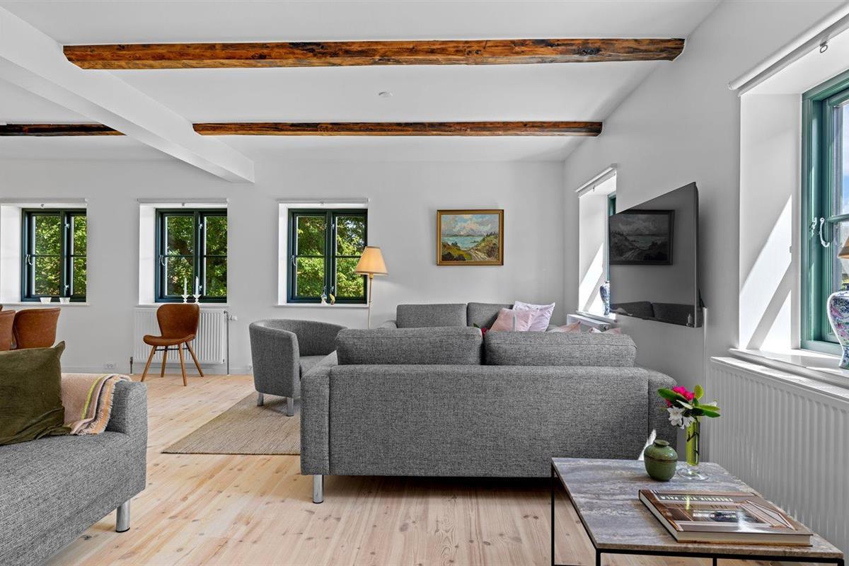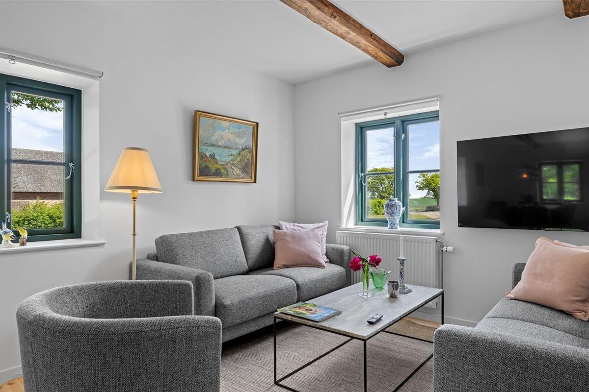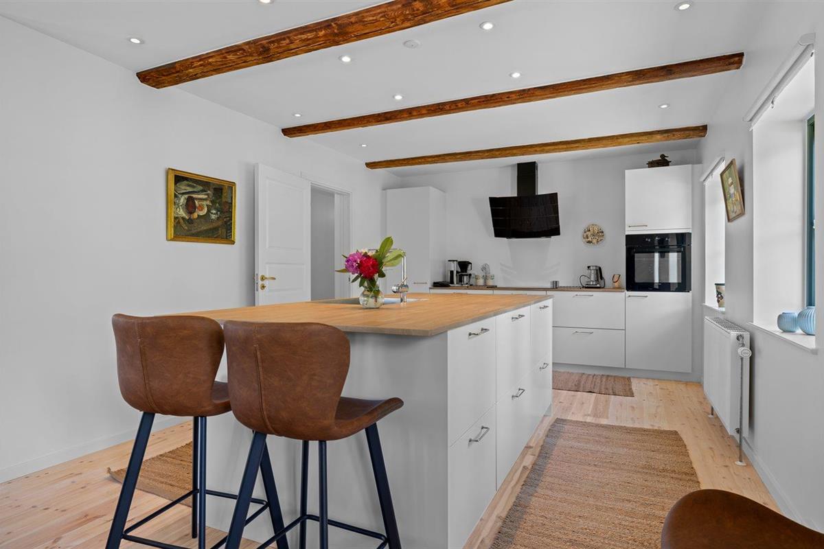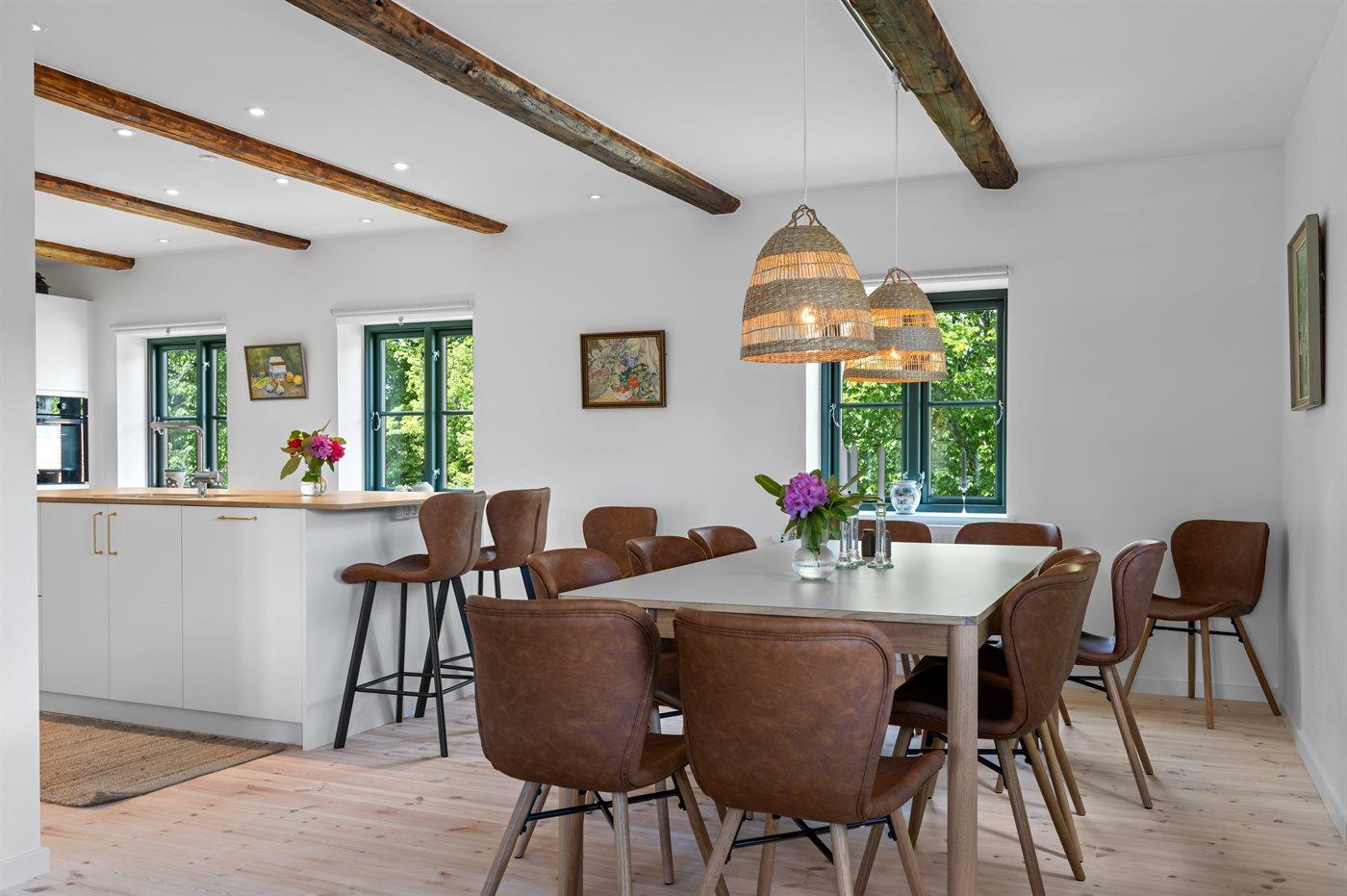 Voormalige boerderij in Tranekær, recent gerenoveerd voor grote groepen, met moderne voorzieningen en rustiek uitzicht.