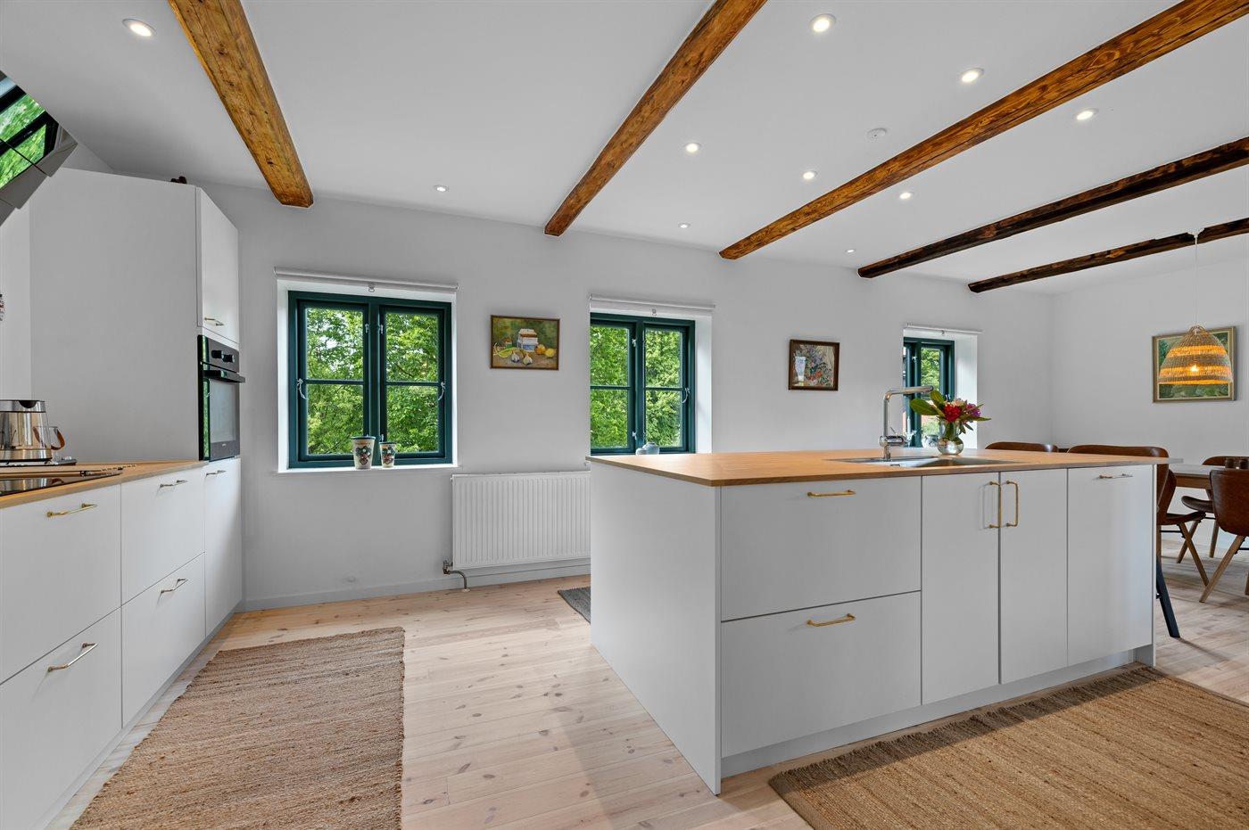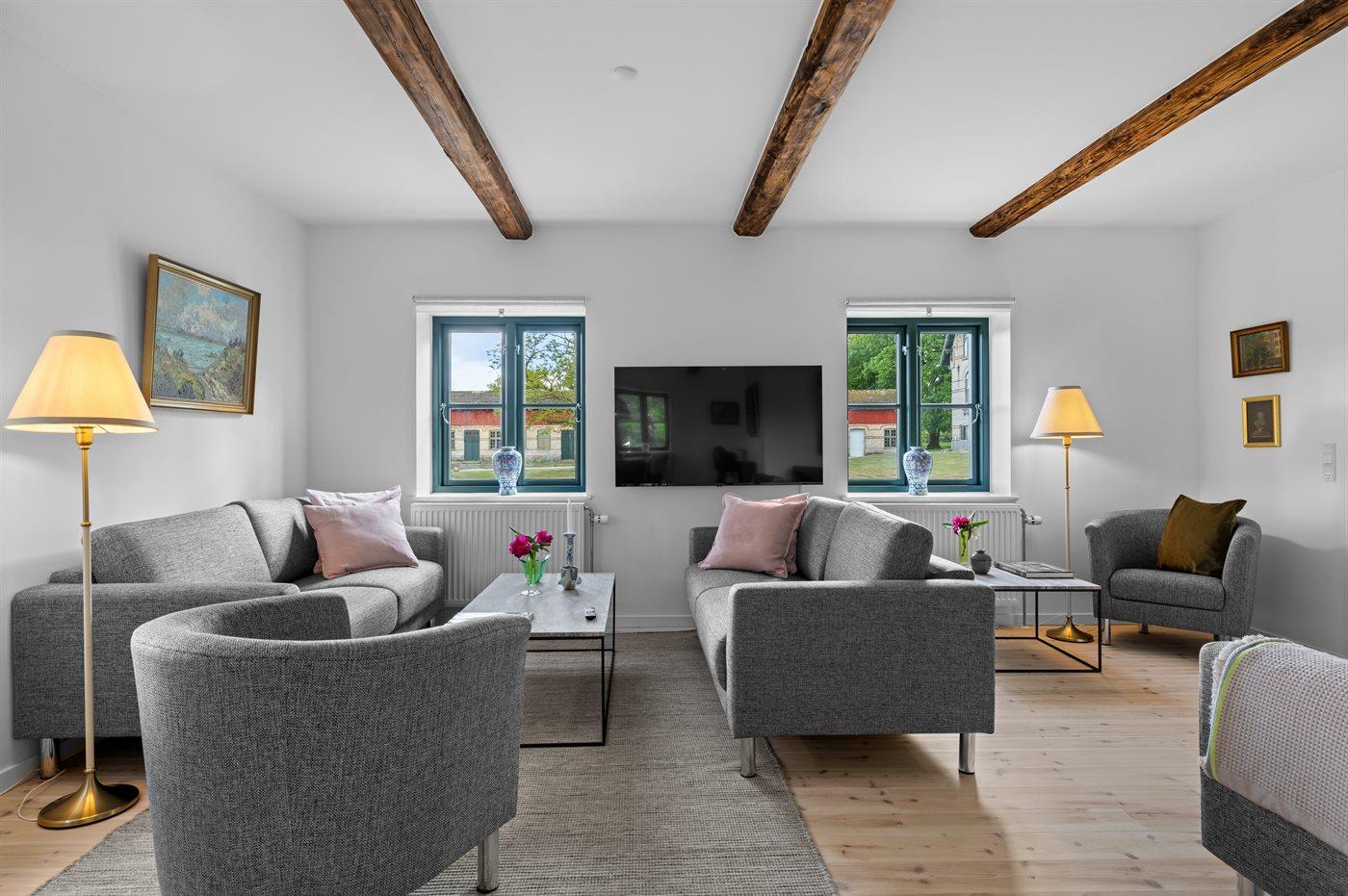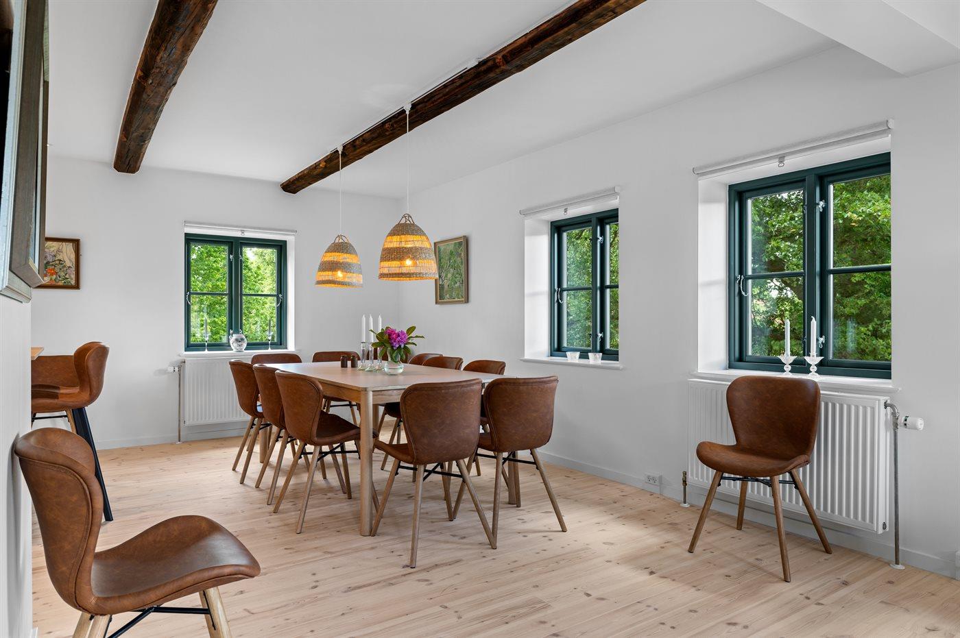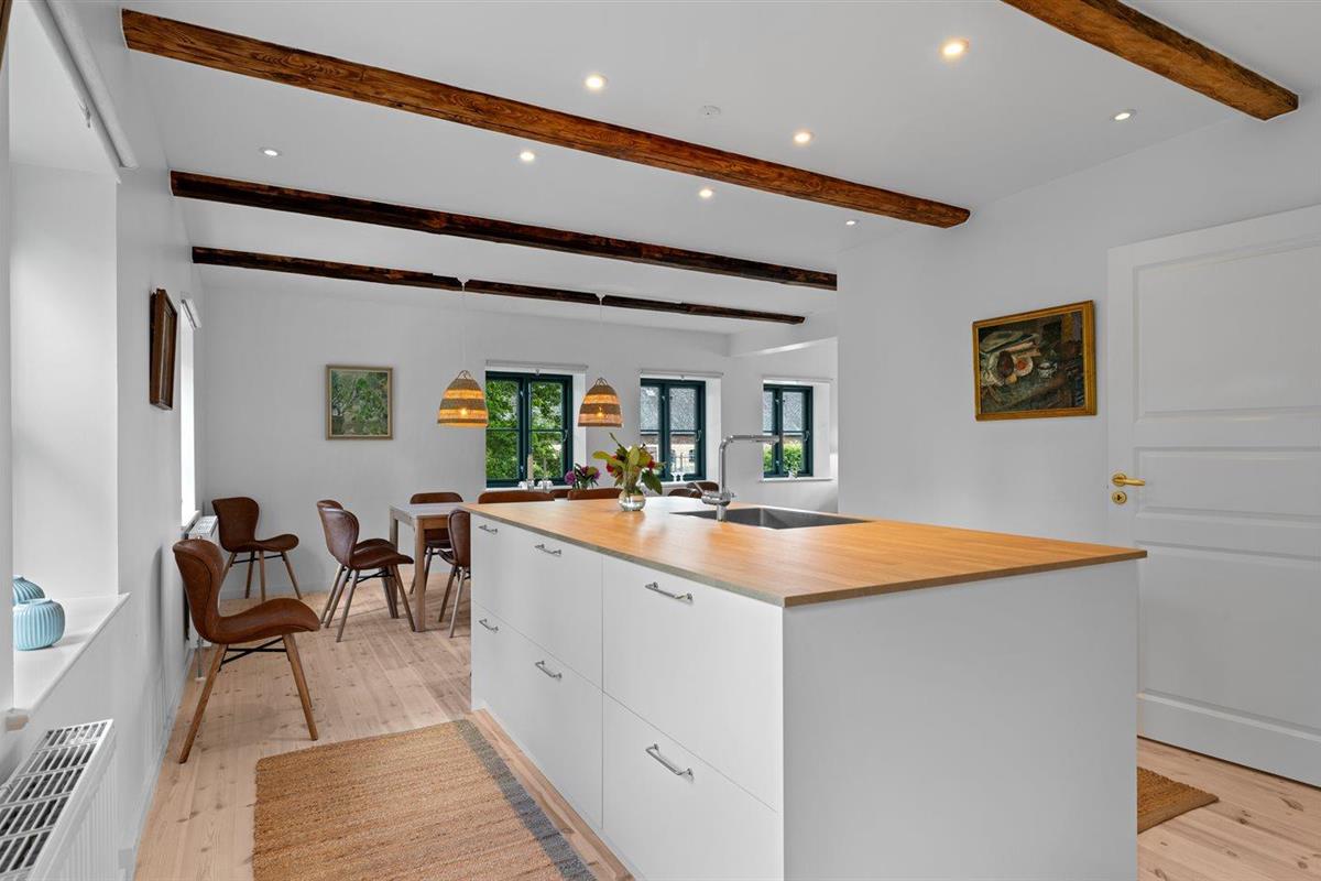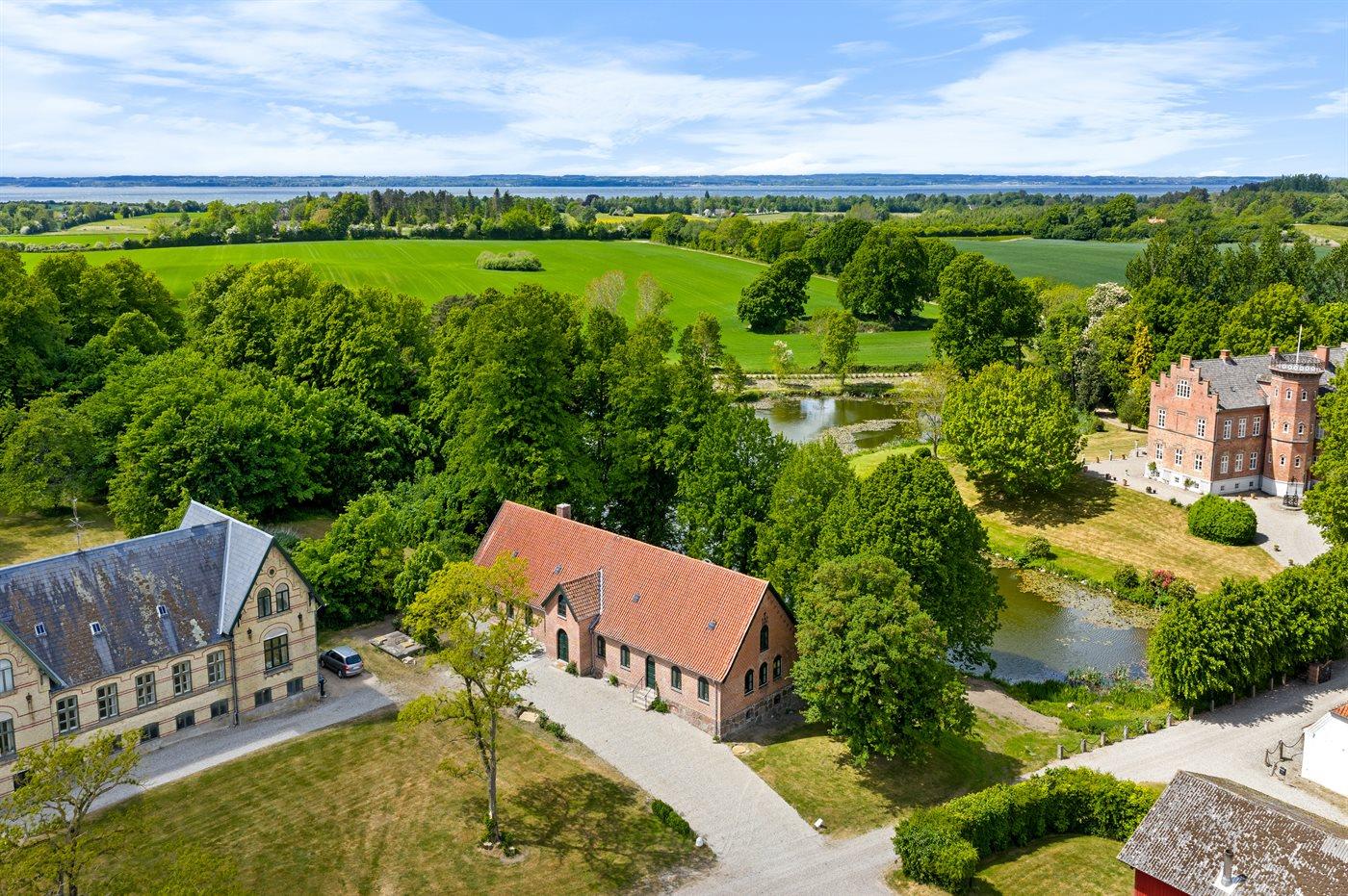 Voormalige boerderij in Tranekær, recent gerenoveerd voor grote groepen, met moderne voorzieningen en rustiek uitzicht.
