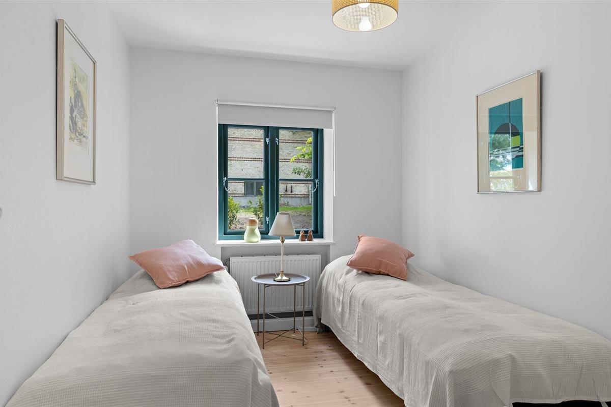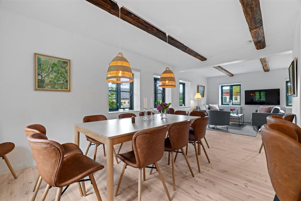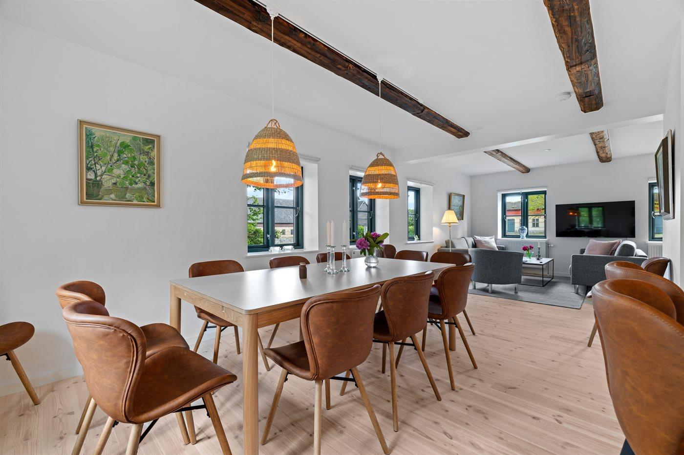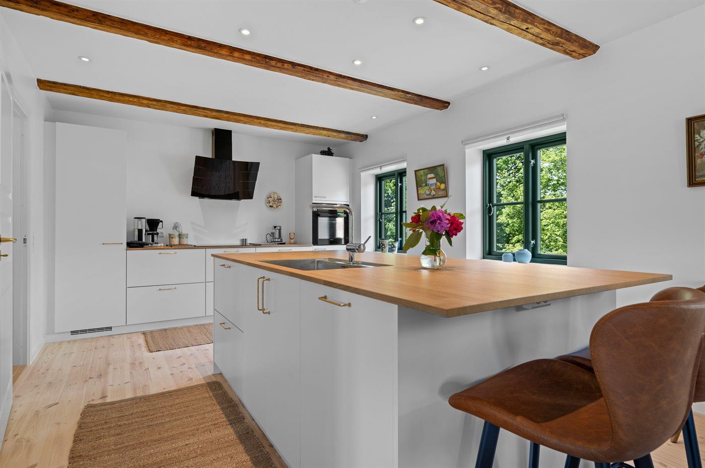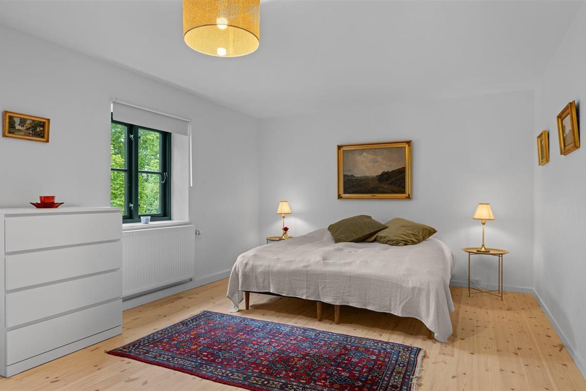 Voormalige boerderij in Tranekær, recent gerenoveerd voor grote groepen, met moderne voorzieningen en rustiek uitzicht.