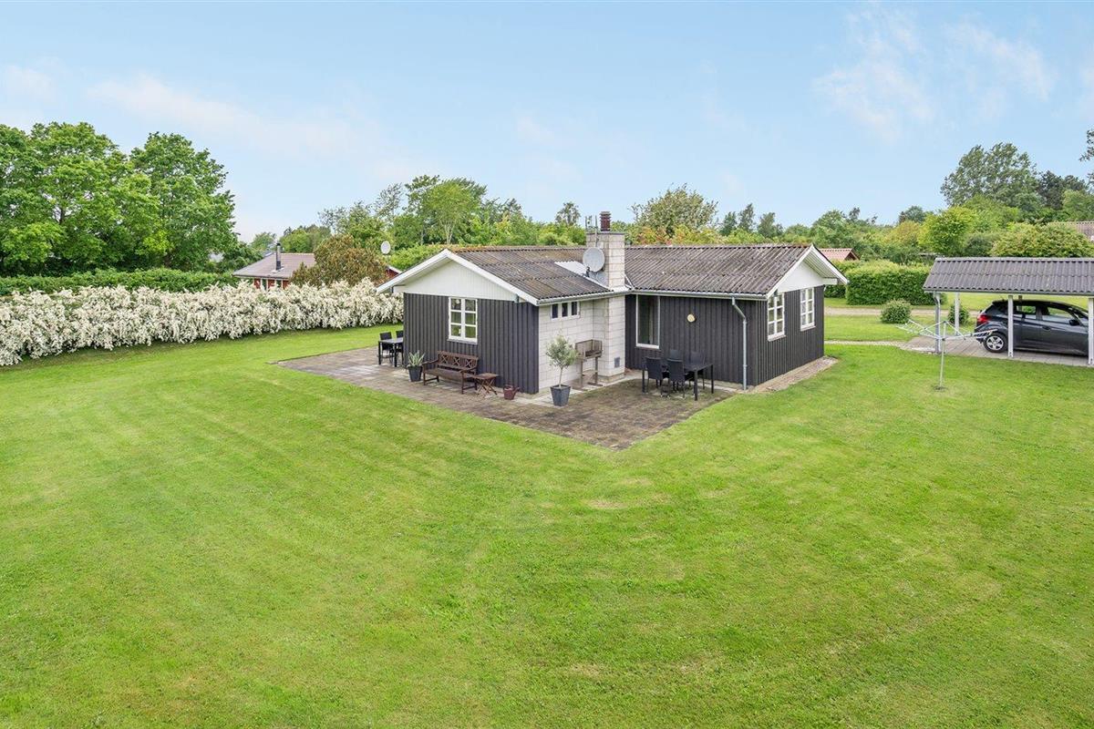 De vakantiewoning is gelegen op een 1550 m² groot natuural grond. Afstand tot de zee 350 m. Er is een zwemsteiger in de buurt. Dichtstbijzijnde winkel 2500 m. Bij de vakantiewoning hoort 40 m² terras. Gereedschapsruimte. Carport ter beschikking. Parkeerplaats bij het huis.
