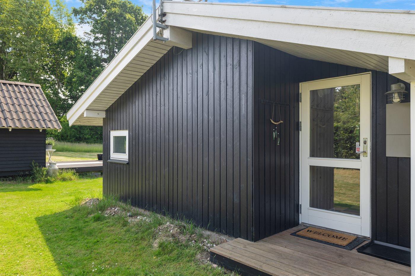 De vakantiewoning is gelegen op een 1407 m² groot aangelegde tuin. Afstand tot de zee 225 m. Er is een zwemsteiger in de buurt. Dichtstbijzijnde winkel 3100 m. Bij de vakantiewoning hoort terras. Daarnaast is er een overdekt terras. Trampoline. Barbecue. Buitentafel. Parkeerplaats bij het huis.