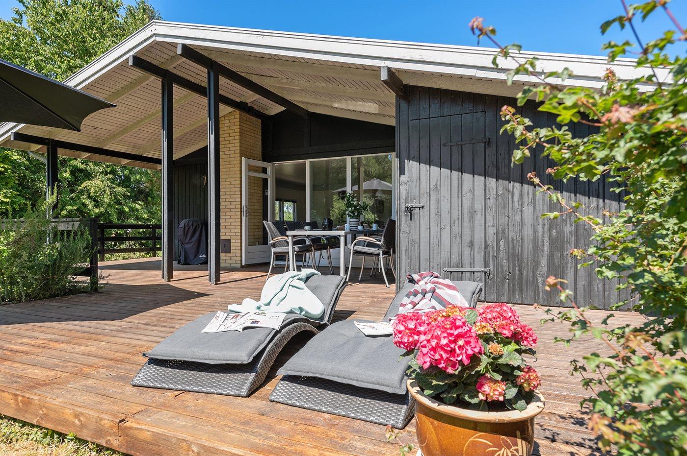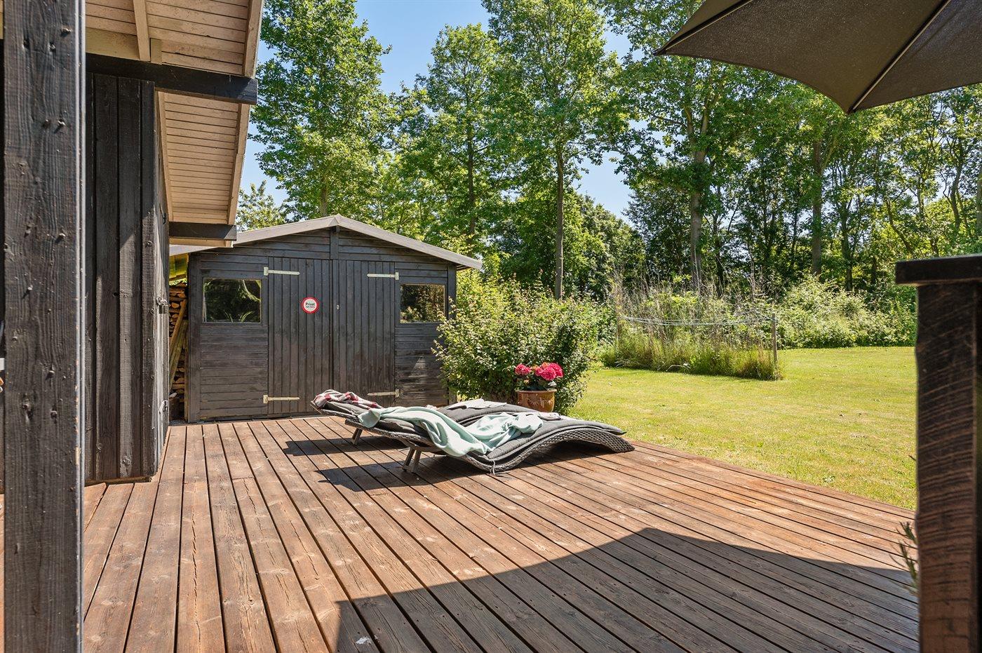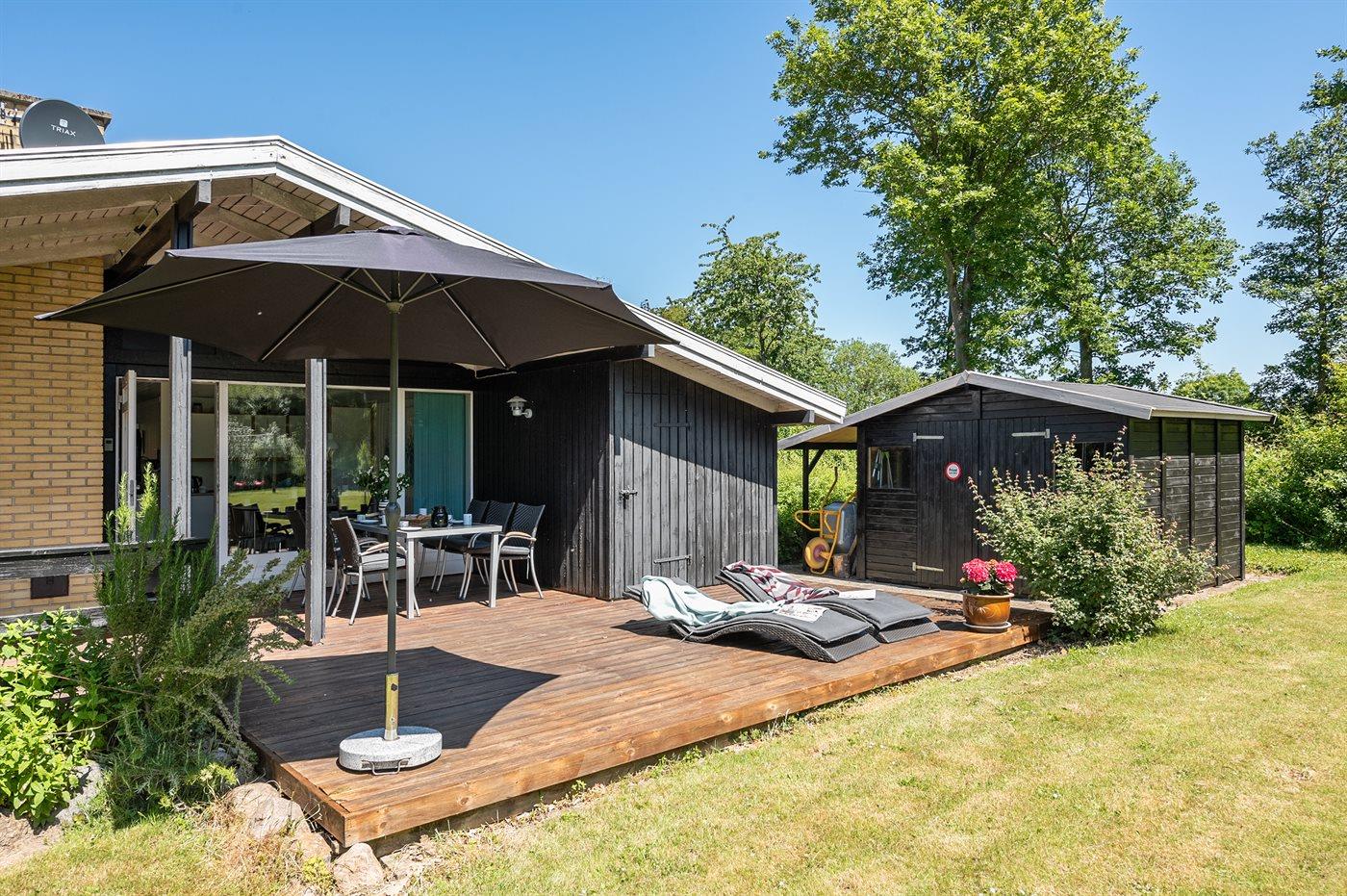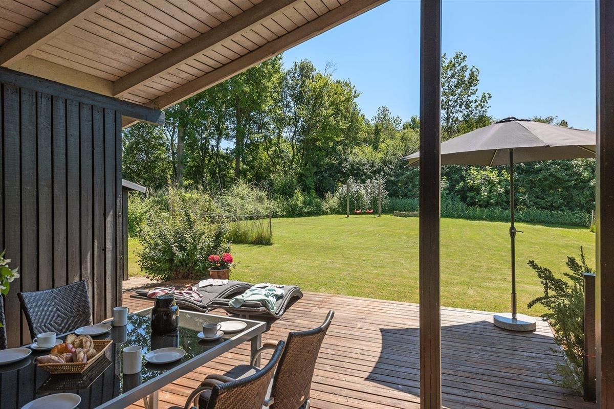 De vakantiewoning is gelegen op een 1537 m² groot aangelegde tuin. Afstand tot de zee 700 m. Er is een zwemsteiger in de buurt. Dichtstbijzijnde winkel 2800 m. Bij de vakantiewoning hoort terras. Daarnaast is er een overdekt terras. Gereedschapsruimte. Schommel. Speelhuisje. Speeltoren. Glijbaan. Barbecue. Het huis heeft een stopcontact voor het opladen van een elektrische auto. Oplaadstekker type 2. Met 11 kW-laadvermogen. Parkeerplaats bij het huis.