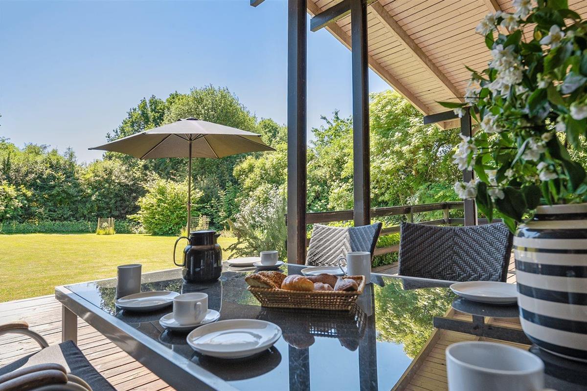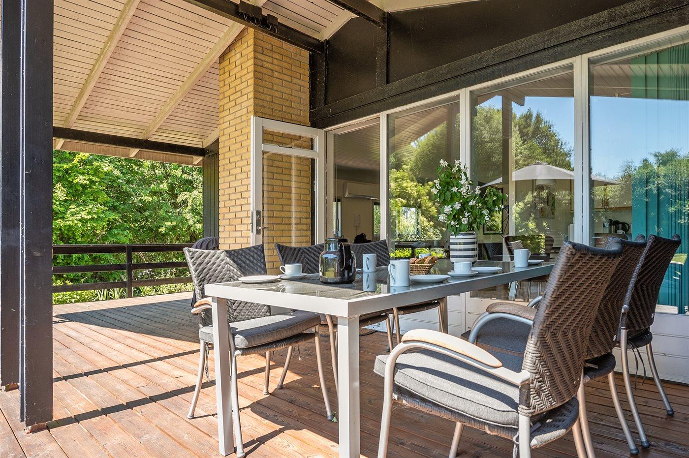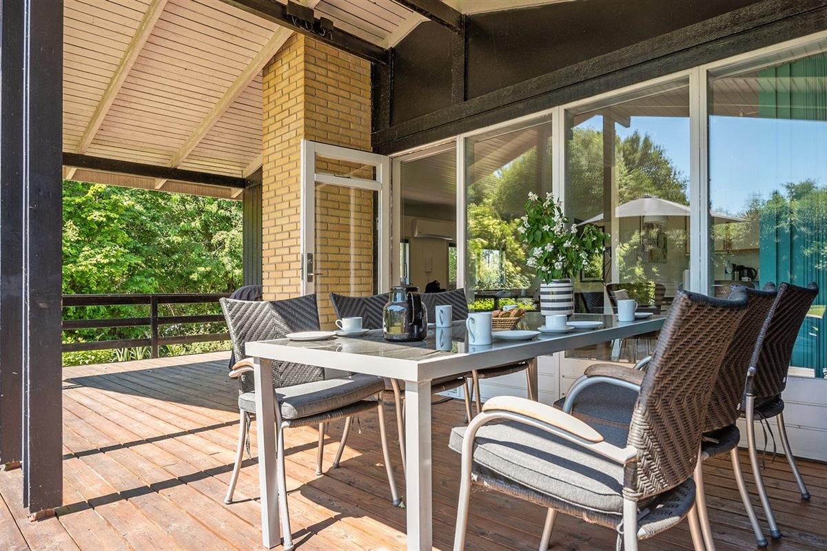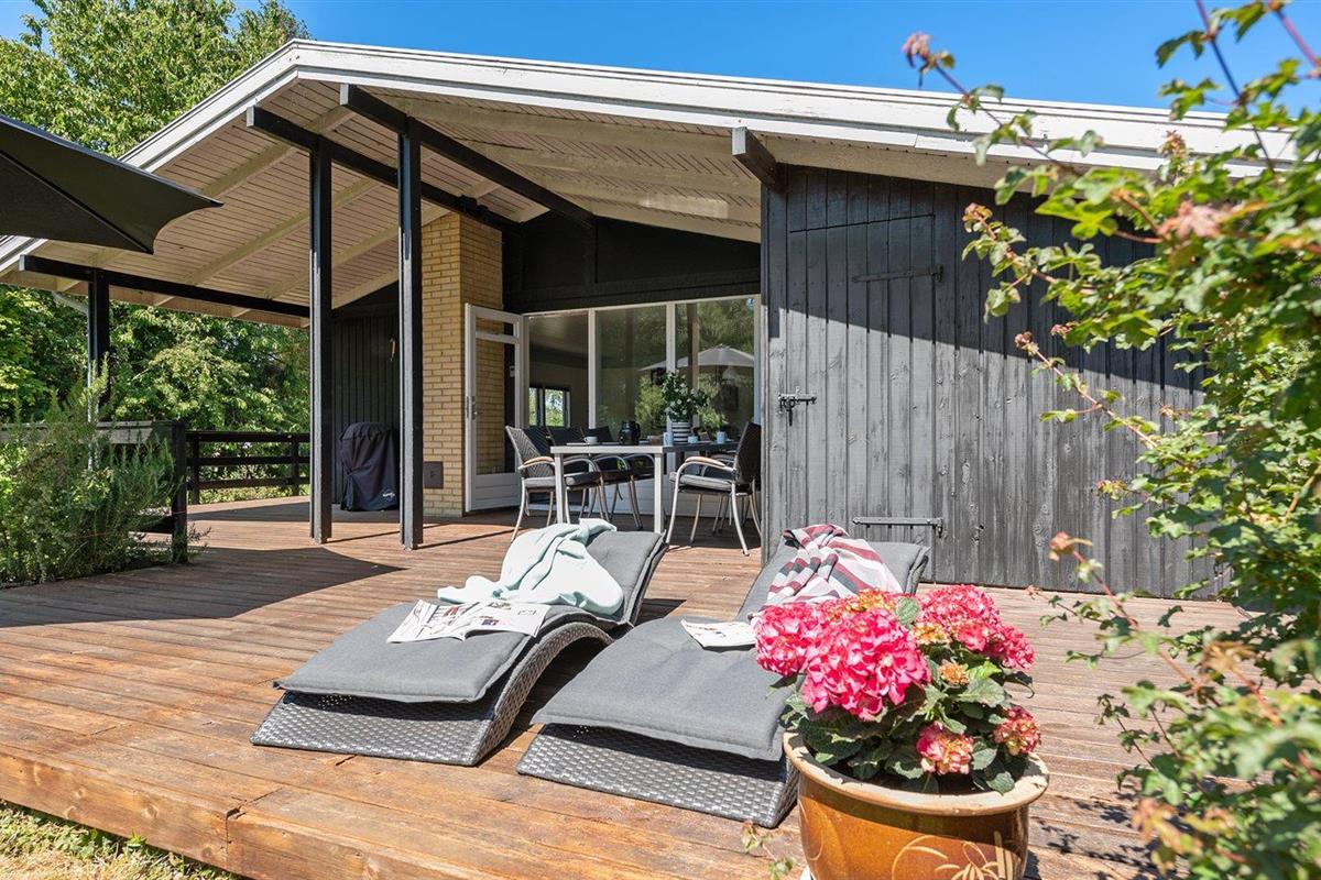 De vakantiewoning is gelegen op een 1537 m² groot aangelegde tuin. Afstand tot de zee 700 m. Er is een zwemsteiger in de buurt. Dichtstbijzijnde winkel 2800 m. Bij de vakantiewoning hoort terras. Daarnaast is er een overdekt terras. Gereedschapsruimte. Schommel. Speelhuisje. Speeltoren. Glijbaan. Barbecue. Het huis heeft een stopcontact voor het opladen van een elektrische auto. Oplaadstekker type 2. Met 11 kW-laadvermogen. Parkeerplaats bij het huis.