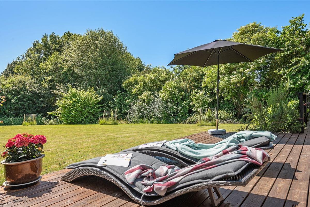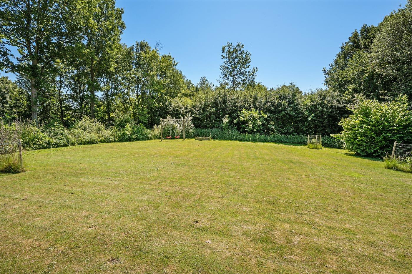 Ruim en gerenoveerd vakantiehuis in Denemarken met tuin, speeltoestellen en oplaadpunt voor elektrische auto.