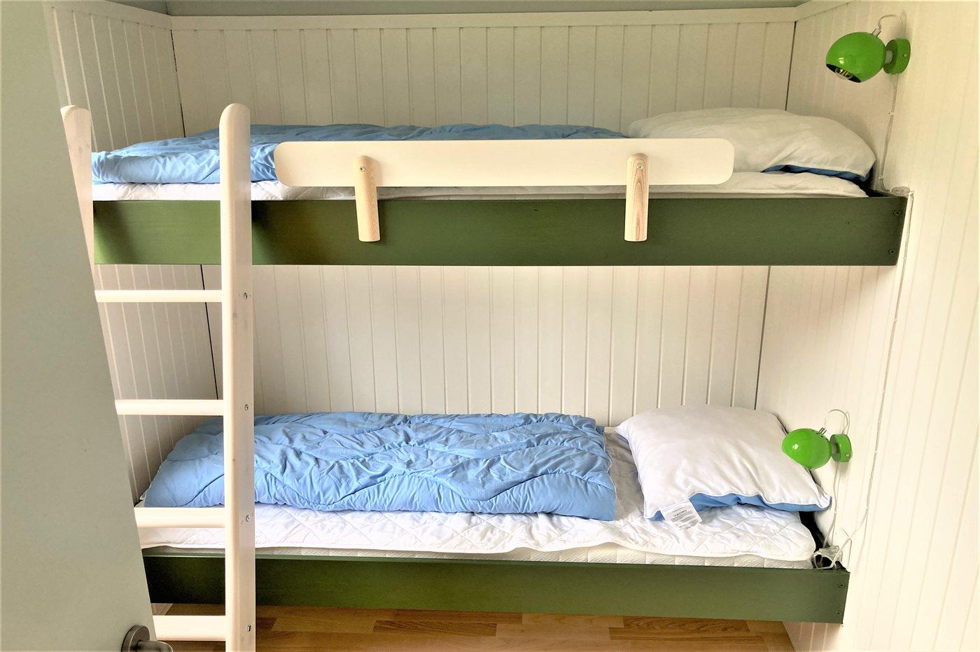 Er zijn in totaal 3 slaapkamers. De slaapplaatsen zijn als volgt verdeeld: 2 slaapplaatsen in tweepersoonsbed. 2 slaapplaatsen in eenpersoonsbedden. 2 slaapplaatsen in stapelbed. Verder is kinderbed ter beschikking.