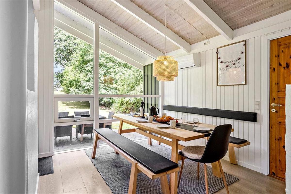 Het lichte en functionele huis biedt je alles wat je nodig hebt voor een ontspannen vakantie. De open woon- en eetkamer nodigt uit om samen tijd door te brengen, terwijl de grote ramen een prachtig uitzicht bieden op de natuurlijke omgeving. Het gedeeltelijk overdekte terras is de perfecte plek om te genieten van de frisse lucht en de dag af te sluiten met een glas wijn. Vanaf de top van het huis heb je een panoramisch uitzicht op Tåsinge en Funen, evenals op het water. Visliefhebbers zullen vooral de nabijgelegen visgronden op slechts 80 meter van het huis waarderen.