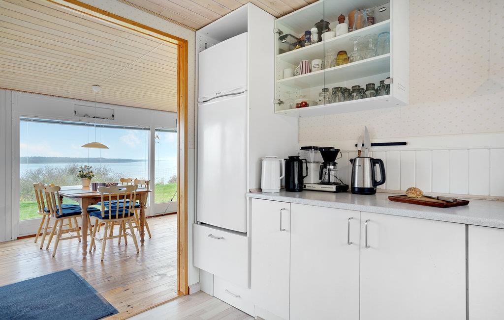Je vakantiehuis biedt je een ontspannen vakantie in een rustige omgeving op Store Havelse Strand. Het huis ligt op de eerste rij aan het water en biedt een prachtig uitzicht op het Roskilde Fjord, waarvan je kunt genieten vanuit de woonkamer of het ruime terras. De gezellig ingerichte woonkamer biedt een lichte en vriendelijke sfeer dankzij de grote ramen. Leun achterover op de bank of neem plaats aan de stijlvolle eettafel en laat je blik over het water dwalen. De houtkachel zorgt voor een gezellige sfeer. De open keuken is functioneel uitgerust en ideaal om samen maaltijden te bereiden.