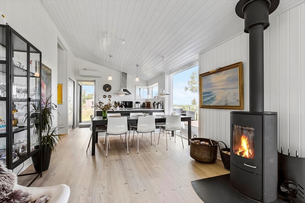 Dieses schöne Ferienhaus liegt in einer malerischen Gegend im nördlichen Djursland. Der nahegelegene Strand bei Store Sjørup ist eines der einzigartigsten Badegebiete Djurslands. An der Küste triffst du zunächst auf einen fjordartigen Untergrund, aber wenn du weiter ins flache Wasser hinaus watest, öffnen sich die Sandbänke, und das offene Meer erstreckt sich so weit das Auge reicht. Der Strand ähnelt fast einem Wattenmeer, mit deutlichen Wechseln zwischen den Gezeiten, wo du Priele und kleine Salzwasserläufe entdecken kannst. Etwa 10 km vom Ferienhaus entfernt liegt der gemütliche Fähranleger Udbyhøj mit einem charmanten Jachthafen und hervorragenden Angelmöglichkeiten. Von hier aus kannst du eine Seilfähre zur Randers-Seite nehmen. Wenn du dort ankommst, wirst du von einem schönen weißen Strand mit Blauer Flagge und einigen der saubersten Badegewässer Dänemarks begrüßt. Wir empfehlen auch einen Ausflug entlang der Nordküste. Es ist eine schöne Route, die sich sowohl zum Radfahren als auch zum Wandern eignet. Möchtest du weitere Naturerlebnisse, solltest du das Küsten- und Fjordzentrum besuchen, das Schloss Gammel Estrup erkunden, die Steindolmen bei Tustrup entdecken sowie den größten Vergnügungspark des Nordens erleben, das Djurs Sommerland. Das gesamte Djursland ist eine Schatzkammer voller Erlebnisse und Entdeckungen. Und wenn dich nach so viel Natur in die Stadt zieht, sind sowohl Randers als auch Aarhus ganz in der Nähe.