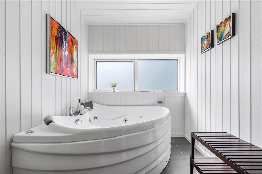 Im Norddjursland liegt dieses schöne Ferienhaus mit einer fantastischen Aussicht auf das Kattegat. Stell dir vor, jeden Morgen mit einem herrlichen Blick auf die wunderschöne Landschaft und das glitzernde Meer durch die großen Fenster im geräumigen Küchen- und Wohnbereich begrüßt zu werden. Genieße Sport und gute Filme im Wohnzimmer des Hauses, wann immer du möchtest, oder schnappe dir ein gutes Buch oder eine belebende Tasse Kaffee und setze dich auf die überdachte Terrasse, wo du nur von der tollen Aussicht abgelenkt wirst. Nach einem Tag voller Abenteuer kannst du im Whirlpool des Badezimmers entspannen, deine müden Muskeln lockern, einfach ein warmes, beruhigendes Bad oder die Wärme der Sauna genießen. Das Haus verfügt über vier Schlafzimmer – alle sind mit schönen Doppelbetten ausgestattet. Komm und schaffe neue Erinnerungen in dieser idyllischen Ecke von Norddjursland.
