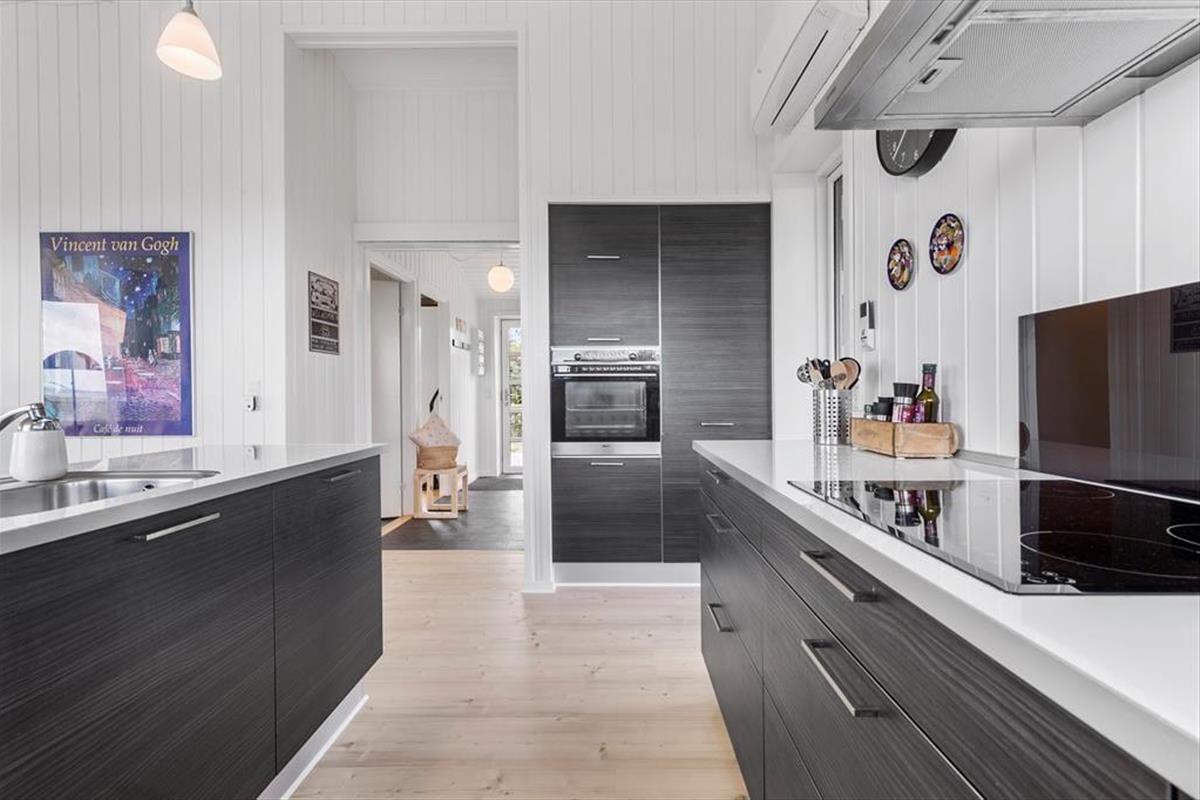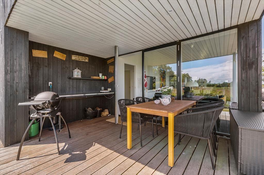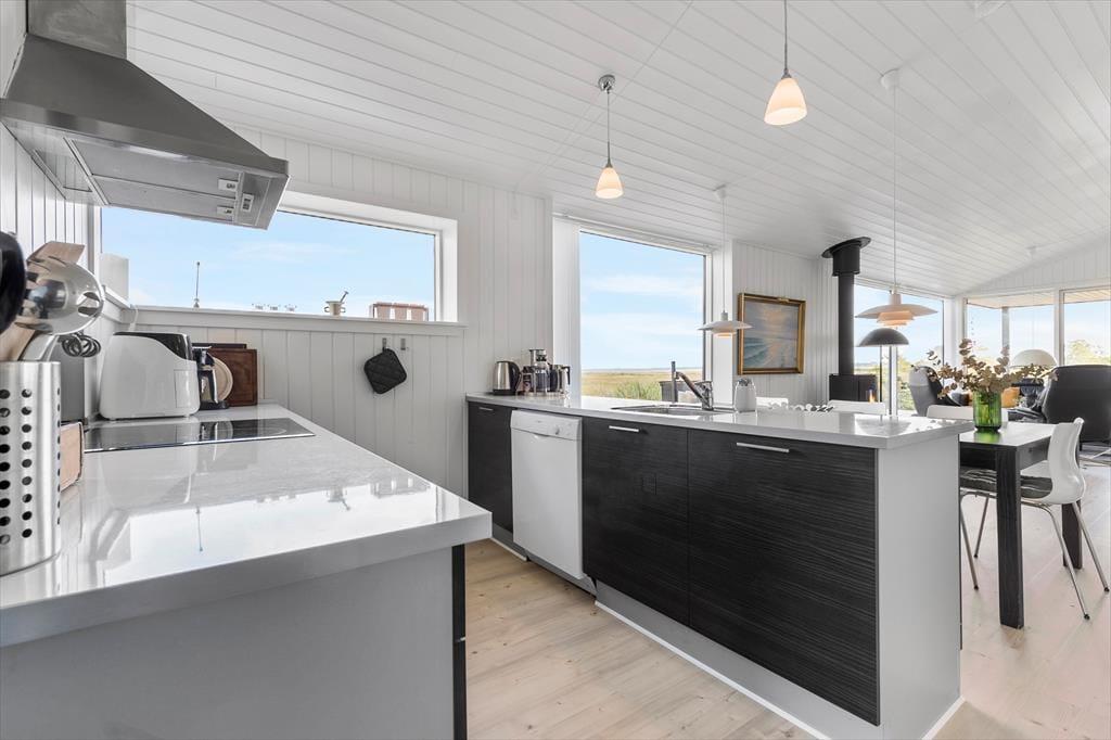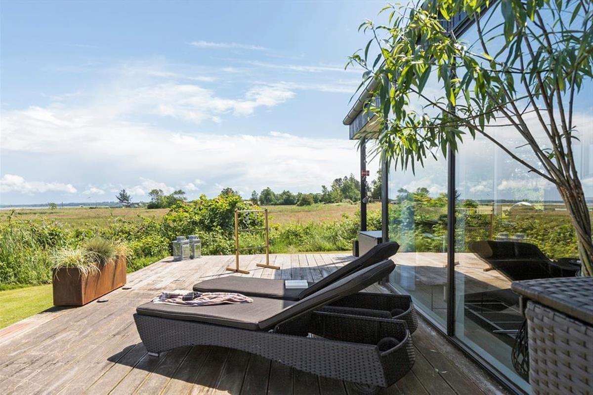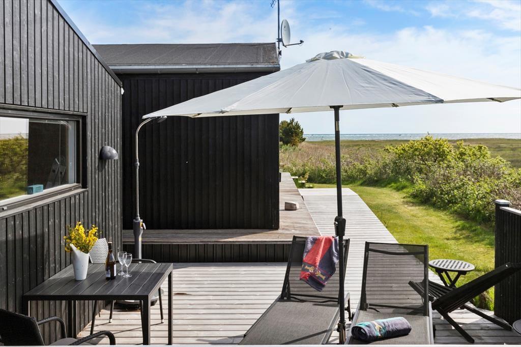 Packe einen leckeren Picknickkorb und eine Decke und genieße den Tag am Strand, der nur 350 Meter vom Haus entfernt ist. Rund um das Haus erstrecken sich große Terrassen. Nach Süden findest du eine überdachte Terrasse mit einer Außenküche – perfekt, um Mahlzeiten an der frischen Luft zuzubereiten und lange, gemütliche Abende unter freiem Himmel zu genießen.