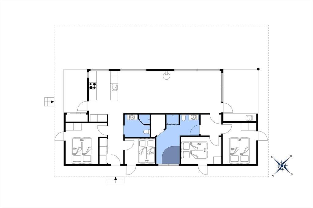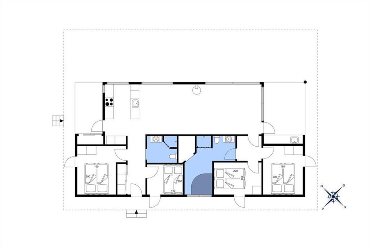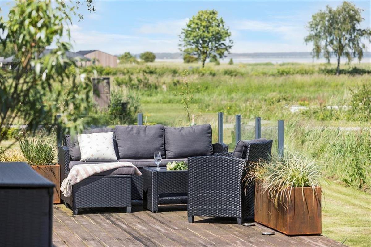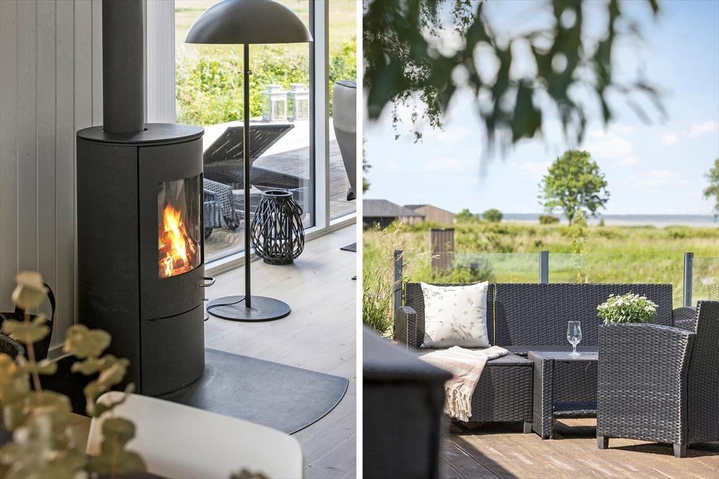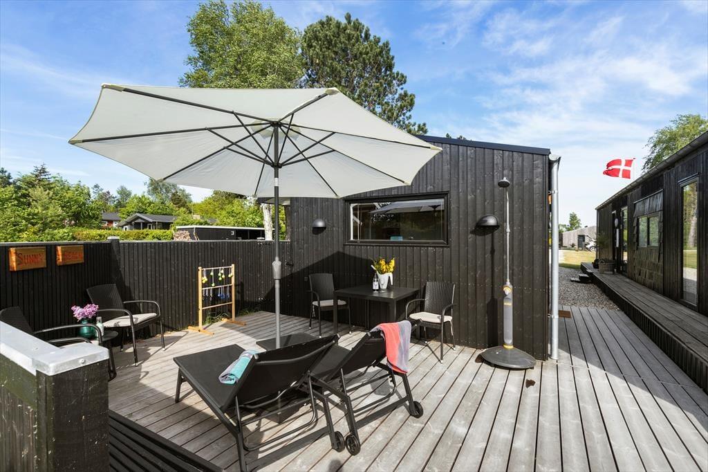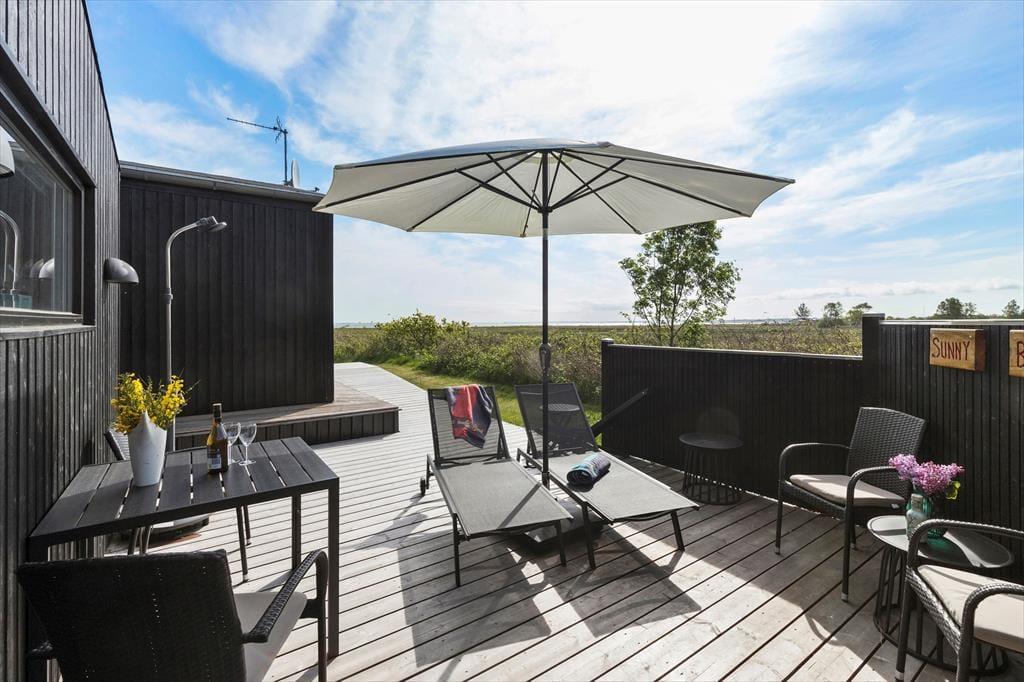Packe einen leckeren Picknickkorb und eine Decke und genieße den Tag am Strand, der nur 350 Meter vom Haus entfernt ist. Rund um das Haus erstrecken sich große Terrassen. Nach Süden findest du eine überdachte Terrasse mit einer Außenküche – perfekt, um Mahlzeiten an der frischen Luft zuzubereiten und lange, gemütliche Abende unter freiem Himmel zu genießen.