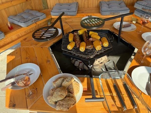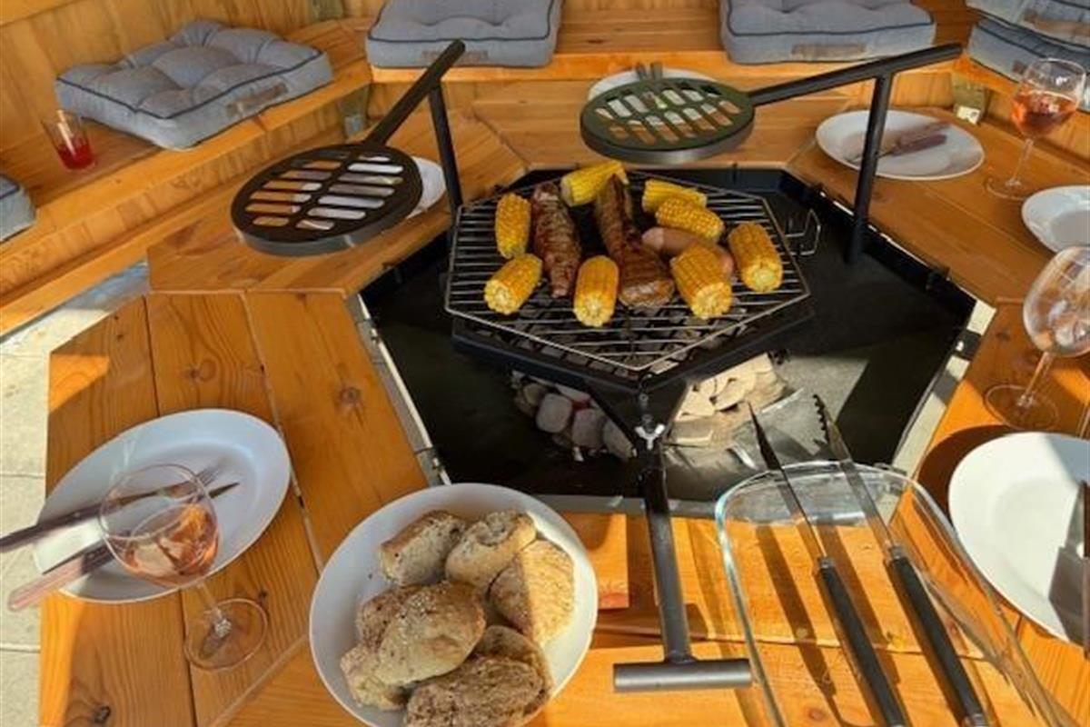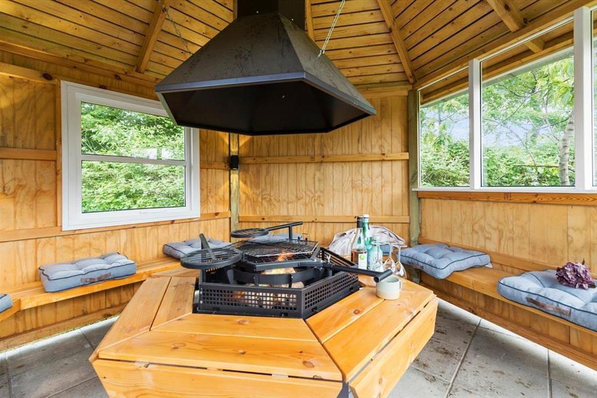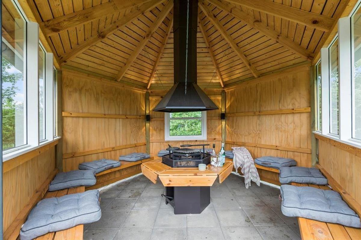 Draußen warten viele Abenteuer auf dich. Die große und solide Grillhütte, in der bis zu 10 Personen Platz finden, bietet ein einzigartiges Gefühl der Zusammengehörigkeit und Gemütlichkeit. Mit einer großen Feuerstelle in der Mitte könnt ihr euch um die Flammen versammeln, Geschichten über die alten Zeiten erzählen, Stockbrot backen und grillen. Und wenn es regnet, ist es nicht weniger gemütlich, denn unter bunten Lichtern seid ihr geschützt und trocken. Die große Rasenfläche lädt zum Spielen und Ballspielen ein, während die Terrasse, die eine Hälfte des Hauses umgibt, viel Platz zum Entspannen bietet. Ein Teil der Terrasse ist überdacht, sodass du bei jedem Wetter den Aufenthalt im Freien genießen kannst, wenn der Tau fällt. Kinder werden den Spielplatz mit Schaukel, Rutsche und Sandkasten lieben, wo sie stundenlang Spaß haben können. Fast das gesamte Grundstück ist von einer wunderschönen Vegetation umgeben.
