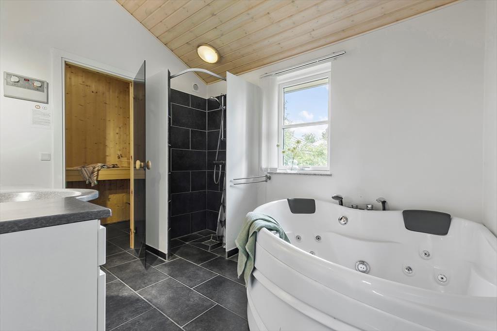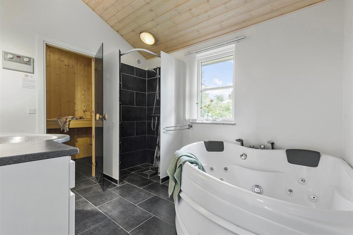 Wenn du dieses Ferienhaus betrittst, wirst du von Geräumigkeit und viel Tageslicht begrüßt. Das Haus zeichnet sich durch eine fantastische Raumaufteilung aus, die dafür sorgt, dass jeder Winkel optimal genutzt werden kann. Die hohen Decken schaffen eine luftige Atmosphäre und die großen Fenster lassen die Sonne durch die Räume tanzen. In der Mitte des Hauses befinden sich die Küche, das Esszimmer und das Wohnzimmer, die zu einem gemütlichen Treffpunkt für Familie und Freunde zusammenschmelzen. Hier kannst du die Abende vor dem Kaminofen genießen, während die Flammen knistern und Wärme verbreiten, oder du kannst dich bei einem Film oder Sport vor dem großen Fernseher entspannen. Die vier geräumigen Schlafzimmer sorgen dafür, dass jeder seinen eigenen Rückzugsort hat, und der Dachboden ist perfekt für die Kinder. Zwei schöne Bäder machen die morgendliche Routine einfach und mühelos - ein Bad ist sogar mit einem Whirlpool und einer Sauna ausgestattet, damit du dir nach einem langen Urlaubstag ein bisschen Luxus gönnen kannst. Praktischerweise gibt es auch einen Hauswirtschaftsraum, der kleine Herausforderungen wie Wäsche waschen und Kinderwagen, Mäntel und Schuhe aufbewahren leicht macht.