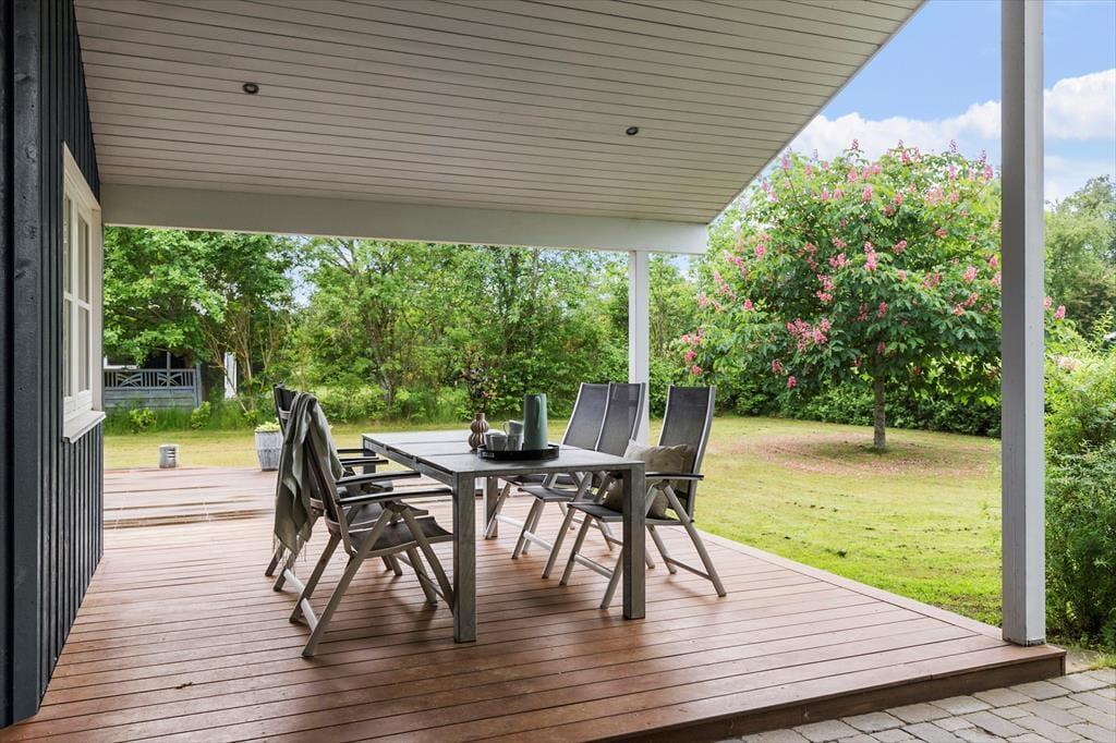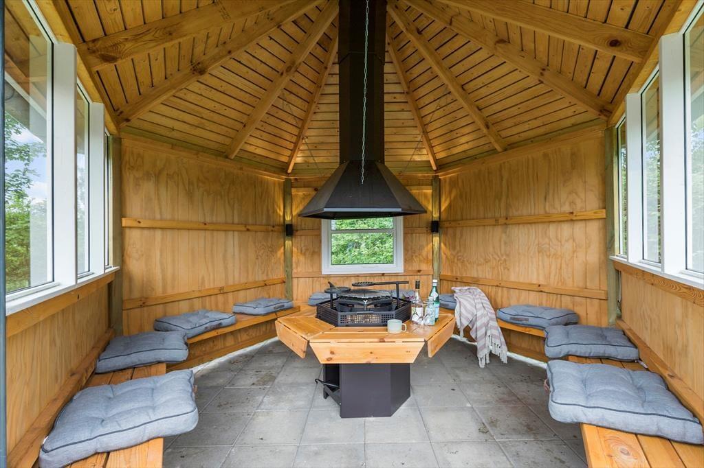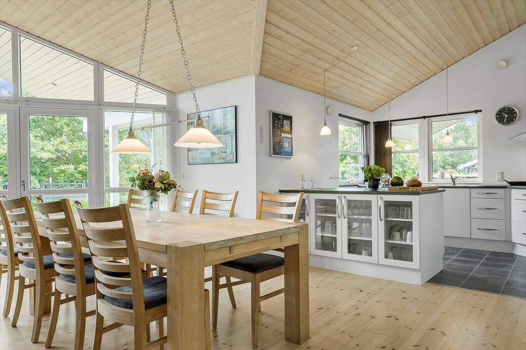 Das Ferienhaus liegt in einer landschaftlich reizvollen Gegend im Norden von Djursland. Der nahegelegene Strand von Store Sjørup ist einer von Djurslands einzigartigen Badeplätzen. Hier triffst du zunächst auf einen fjordähnlichen Boden an der Küste, aber wenn du in das flache Wasser eintauchst, findest du Sandbänke und das offene Meer, so weit das Auge reicht. Der Strand erinnert fast an ein Wattenmeer mit deutlichen Unterschieden zwischen Ebbe und Flut, Gezeitenkanälen und kleinen Salzwasserseen. Etwa 10 km vom Haus entfernt findest du den gemütlichen Fährhafen von Udbyhøj mit einem kleinen Yachthafen und guten Angelmöglichkeiten. Von hier aus kannst du mit der Autofähre auf die Randers-Seite übersetzen, wo dich ein wunderschöner weißer Strand mit der blauen Flagge und einem der saubersten Badegewässer Dänemarks erwartet. Wenn Fährfahrten nicht dein Ding sind, empfehlen wir eine Fahrt entlang der Nordküste. Es ist eine wunderschöne Strecke, die sowohl zum Radfahren als auch zum Wandern geeignet ist. Wenn du mehr Natur erleben willst, ist ein Besuch im Küsten- und Fjordzentrum sehr zu empfehlen. Auch das Schloss Gl. Estrup, die Steindolmen in Tustrup und der größte Vergnügungspark in Skandinavien, Djurs Sommerland, sind einen Ausflug wert. Alles in allem ist Djursland wunderschön, und wenn du noch mehr brauchst, sind Randers und Aarhus ganz in der Nähe.