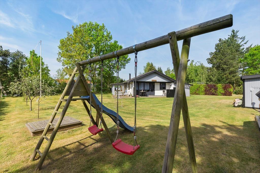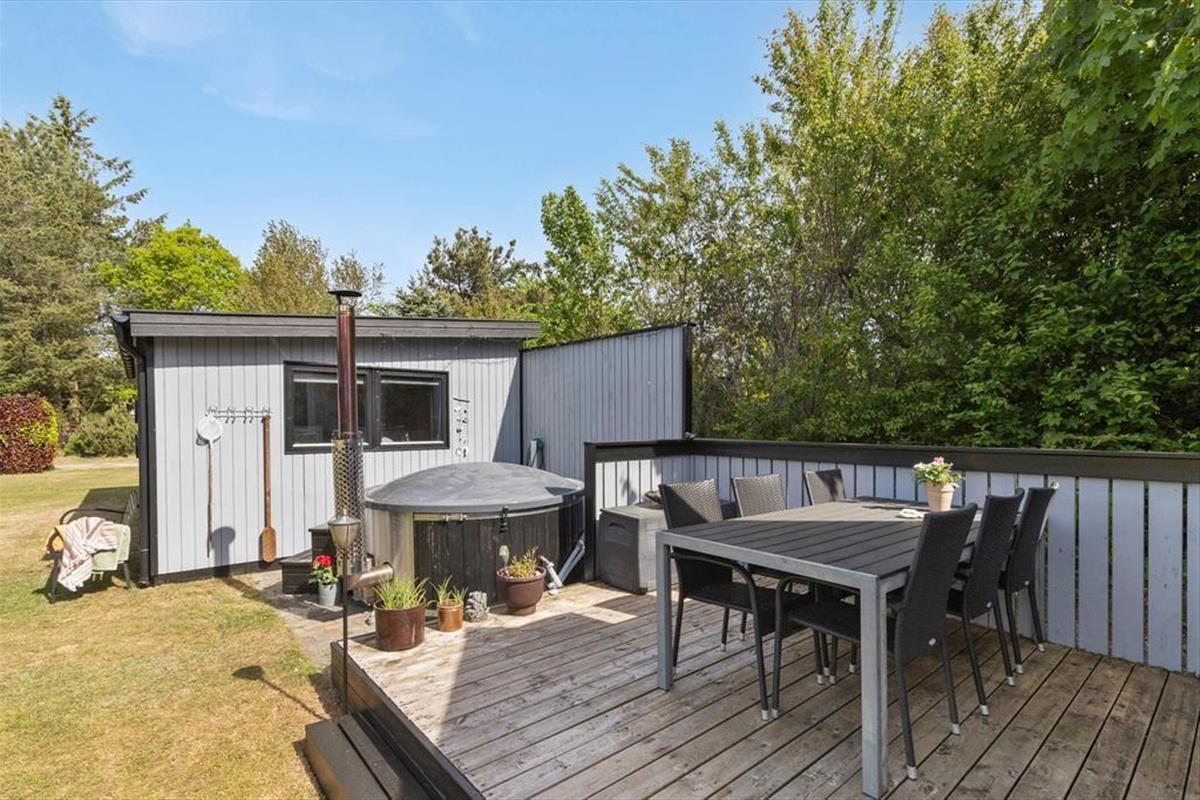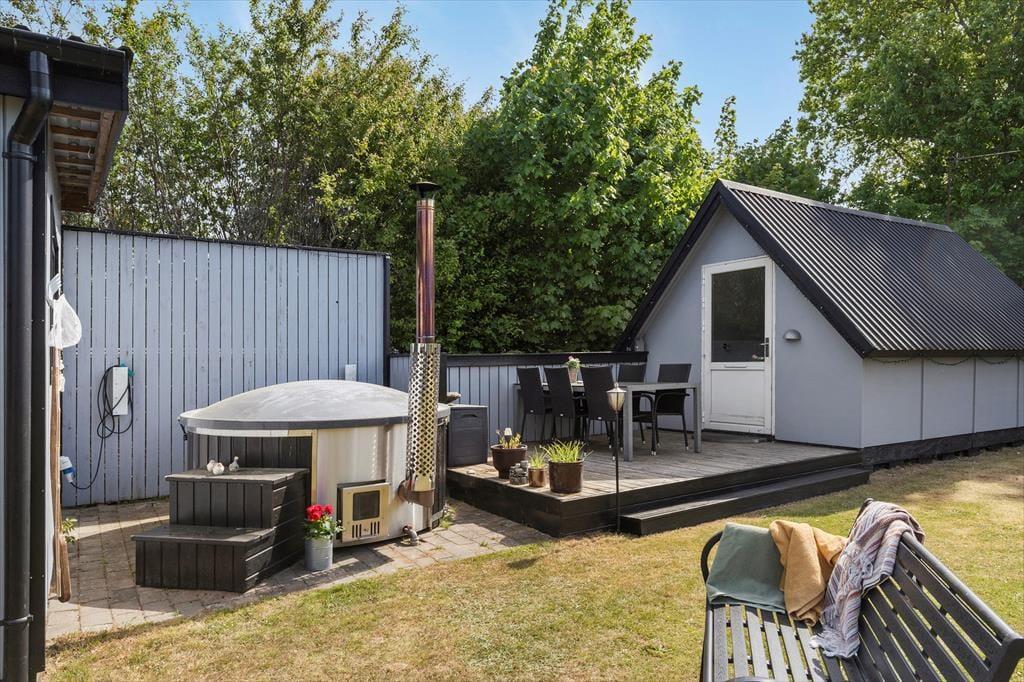 Unter freiem Himmel erwarten dich schöne Erlebnisse. Das Grundstück eignet sich bestens für erholsame Stunden, Outdoor-Spiele und sonstige Aktivitäten in der Sonne. Die sonnenverwöhnte Terrasse lädt mit ihrem Grill zu geselligen Grillabenden ein. Der Fischreinigungsplatz macht es dir leicht, deinen täglichen Fang zu reinigen. Deine Kinder werden derweil ausgelassen schaukeln, im Gras spielen oder sich in der Sandkiste vergnügen. Mit purer Erholung und Entspannung verwöhnt dich allabendlich die neben dem Nebengebäude platzierte schwedische Badetonne. Stelle dir nur vor, wie du dich im Abendlicht im wohlig warmen Wasser niederlässt und nach Einbruch der Dunkelheit auf den funkelnden Sternenhimmel blickst - schöner und friedvoller geht es kaum! Am Nebengebäude gibt es eine weitere Terrasse, auf der du dir in einem schönen Eckchen ein paar ruhige Momente mit einem spannenden Buch gönnen kannst. Das Ferienhausgrundstück ermöglicht dir wunderbare Auszeiten vom hektischen Alltag daheim und besticht mit einer gemütlichen Atmosphäre - freue dich darauf!