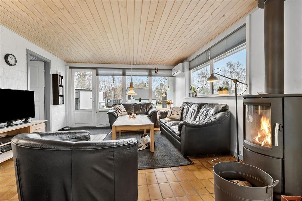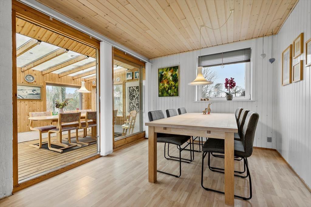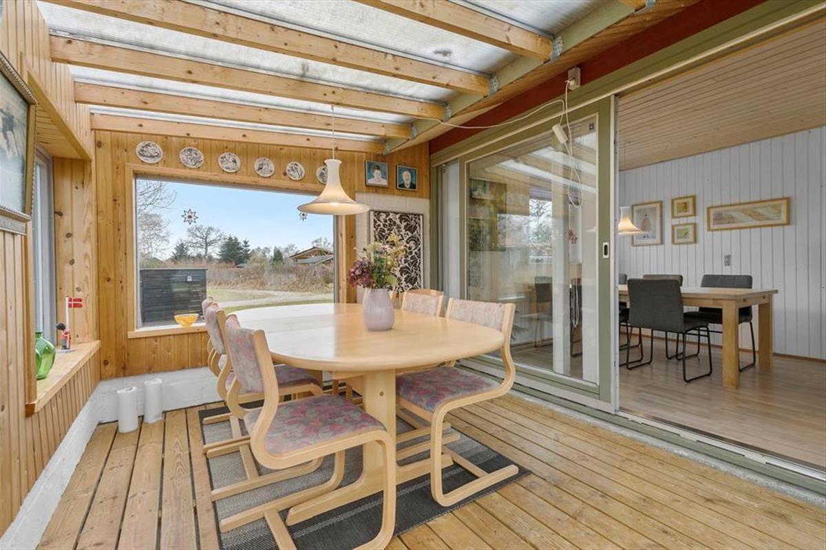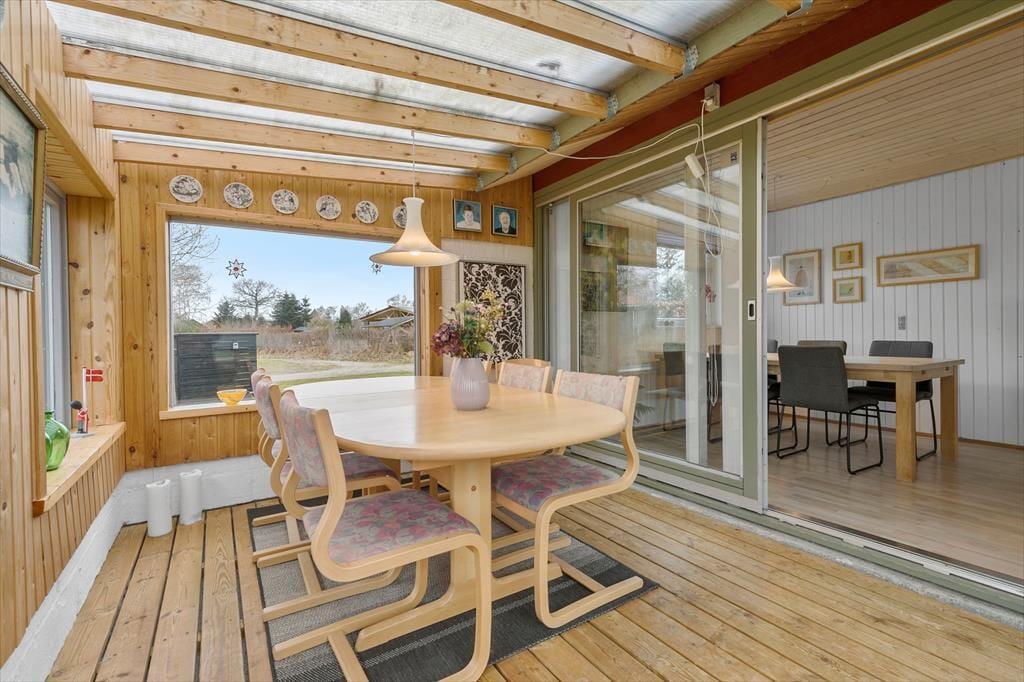 Dieses ältere, aber dennoch sehr ansprechende Ferienhaus lädt zu gemütlichen Urlaubstagen im Familienkreis ein, die von viel Ruhe und besten Erholungs- und Entspannungsmöglichkeiten geprägt sind. In der funktionellen weißen Küche bereitest du die Mahlzeiten zu, die du anschließend am schönen Esstisch servierst. Dank der offenen Wohnlösung genießt du selbst während des Kochens die Nähe und Gesellschaft deiner Lieben, die sich in der bequemen Polstersitzgruppe im Wohnraum niedergelassen haben und zusammen spielen oder Bücher lesen. Behagliche Wärme und schönste Ferienhausatmosphäre verströmt der ebenfalls im Wohnraum platzierte Kaminofen. In Verlängerung des Raumes erwartet dich ein Wintergarten, der zusätzlichen Platz für gesellige Runden und gemütliche Stunden bietet. Im Wintergarten könnt ihr beispielsweise an Tagen mit nicht ganz so schönem Wetter sehr gut beisammensitzen, die Mahlzeiten genießen und vieles mehr. Dein Ferienhaus bietet darüber hinaus über zwei gemütliche Schlafräume, ein Badezimmer und einen Eingangsbereich. Im Nebengebäude steht ein weiterer Schlafraum zur Verfügung. Dieser umfasst drei Schlafplätze und einen Fernseher mitsamt einer PlayStation 3 - perfekt für größere Kinder oder die mitreisenden Großeltern, die Wert auf ein wenig mehr Privatsphäre legen.