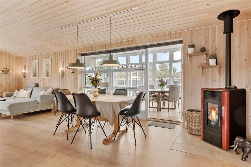 Vakantiehuis in Store Sjørup, Oost-Jutland, met plaats voor 8 volwassenen. De woning heeft een gezellig interieur met o.a. een houtkachel, en beschikt daarnaast over een wasmachine, een vaatwasser en een wasdroger.
