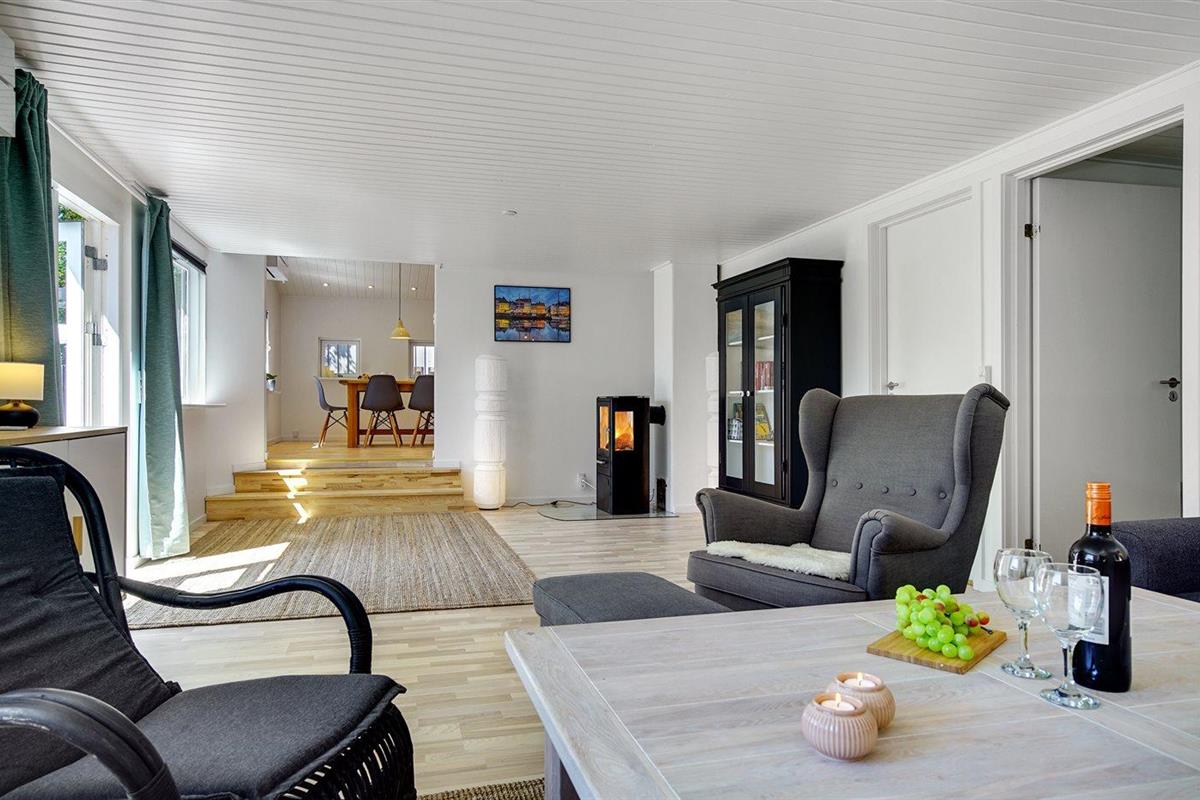 Modern gerenoveerd vakantiehuis in Denemarken met houtkachel, overdekt terras en dichtbij zee.