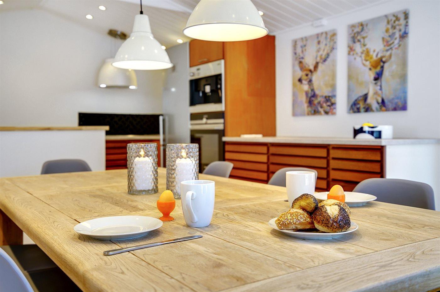 De keuken is uitgerust met koelkast Er zijn 4 keramische kookplaten, heteluchtoven, magnetron en vaatwasser.