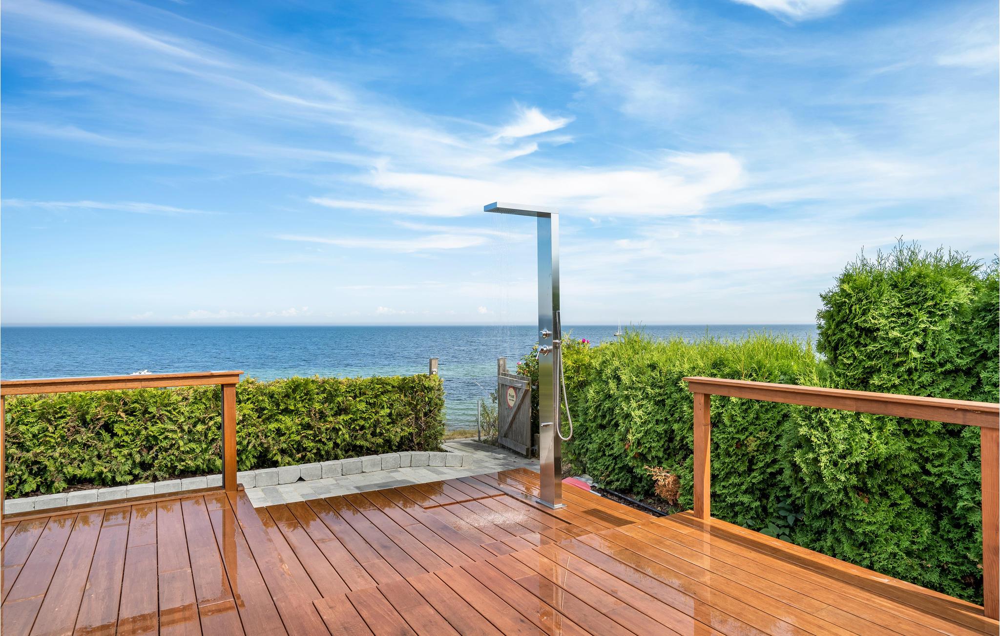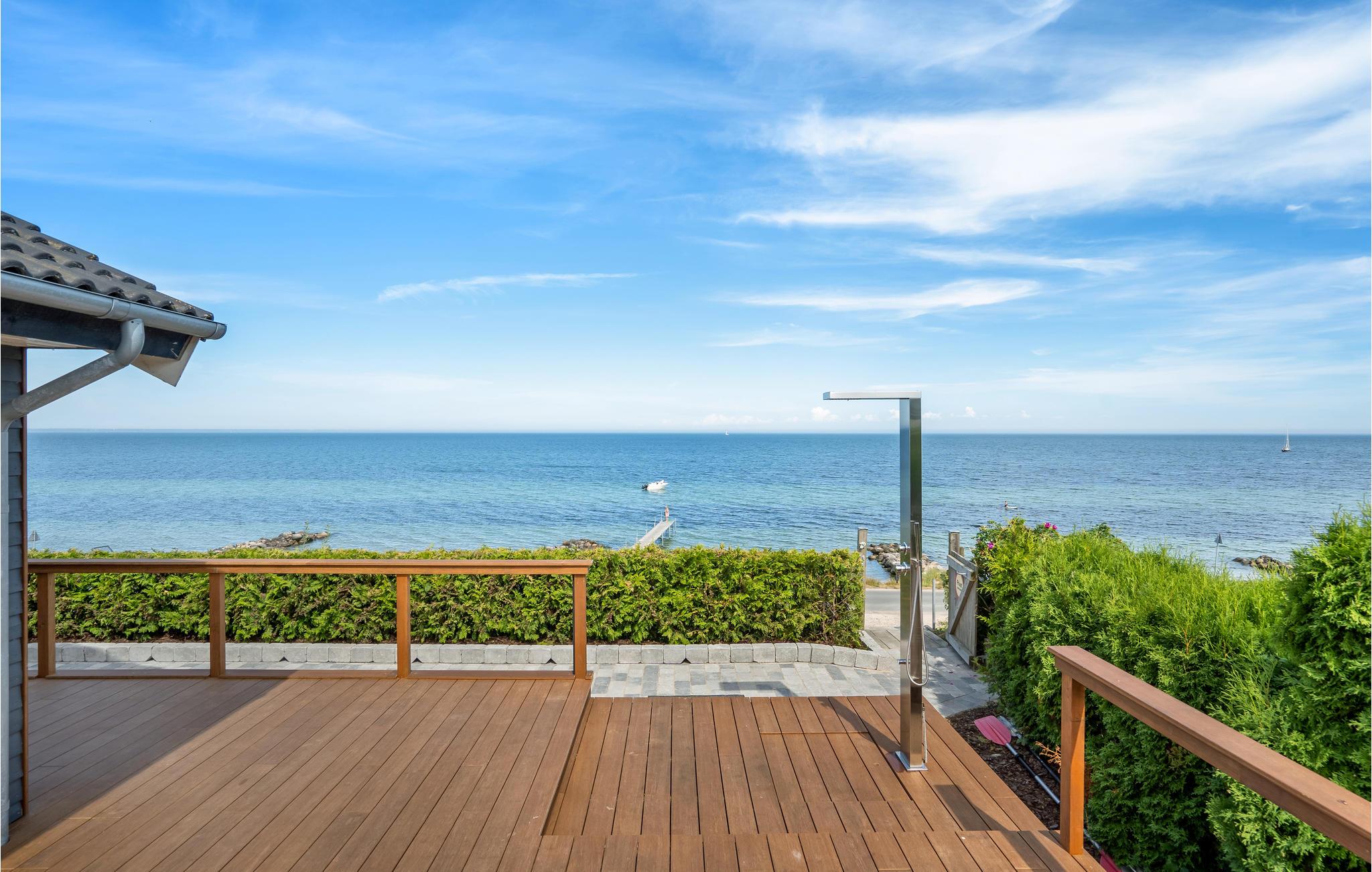 Prachtig vakantiehuis aan Strøby Ladeplads met panoramisch uitzicht op de baai van Køge, luxe voorzieningen en directe toegang tot water.