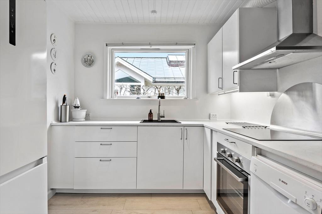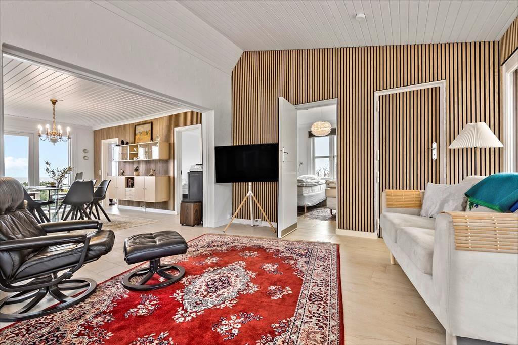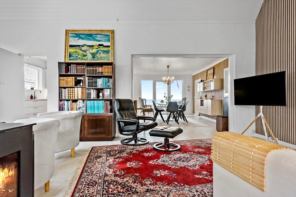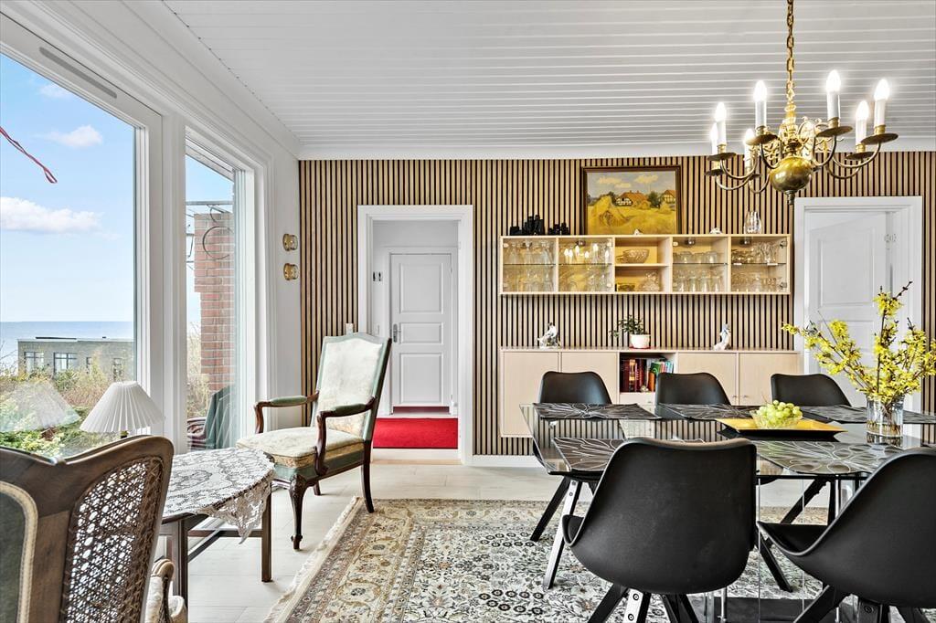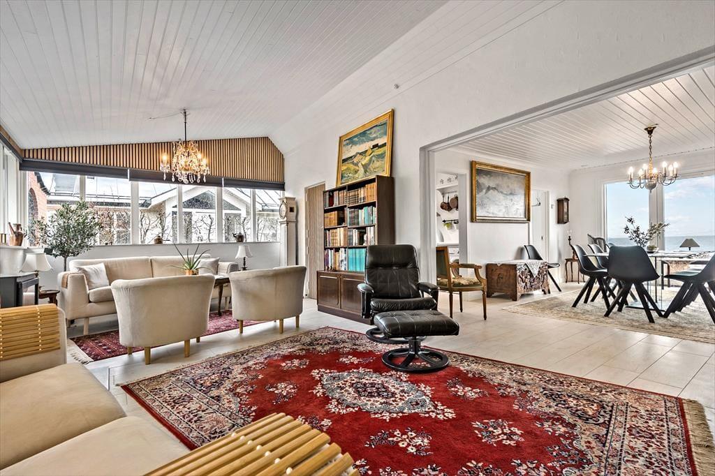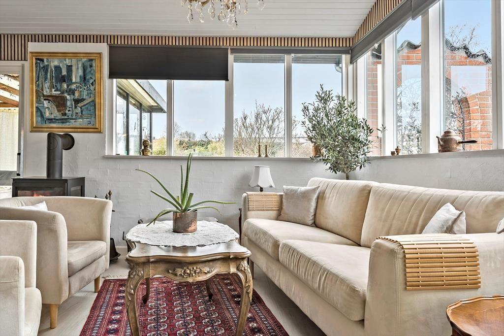 Das schöne Ferienhaus begrüßt dich mit einem hellen Eingangsbereich, von dem du in die beiden ansprechend hellen Wohnräume gelangst. Die Wohnräume bieten viele gute Sitzgelegenheiten und gemütliche Eckchen und begeistern mit einem herrlichen Ausblick auf den Øresund. Vor der hellen, gut ausgestatteten Küche ist ein Esstisch platziert, an dem du mit deiner Familie die Mahlzeiten und gesellige Spieleabende genießt und beim Frühstück mit tollen Sonnenaufgängen über dem Meer verwöhnt wirst. An kühlen Tagen sorgt ein Kaminofen in einem der Wohnräume für behagliche Wärme und ein Maximum an Gemütlichkeit. Der Rest der Wohnfläche ist drei attraktiven Schlafräumen und einem zeitgemäßen Badezimmer überlassen.
