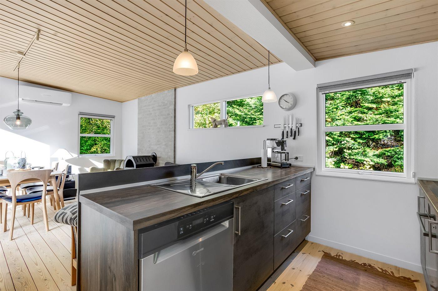 De keuken is uitgerust met koelkast Er is 4 inductiekookplaten, heteluchtoven en vaatwasser.