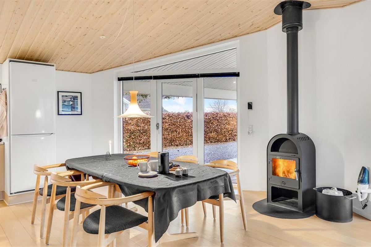 In het uitnodigende huis is alles gedaan om ervoor te zorgen dat u hier een fijne tijd kunt doorbrengen. De eenvoudige en moderne inrichting maakt het een gezellige plek waar u rust kunt vinden en de drukte van alledag achter u kunt laten. Geniet van gezamenlijke maaltijden en ontspannende avonden in de woonruimte, waar u zich op de bank kunt nestelen, samen naar uw favoriete serie kunt kijken of gewoon gezellig kunt kletsen terwijl de vlammen in de open haard knetteren. De grote ramen bieden een prachtig uitzicht op de omgeving.